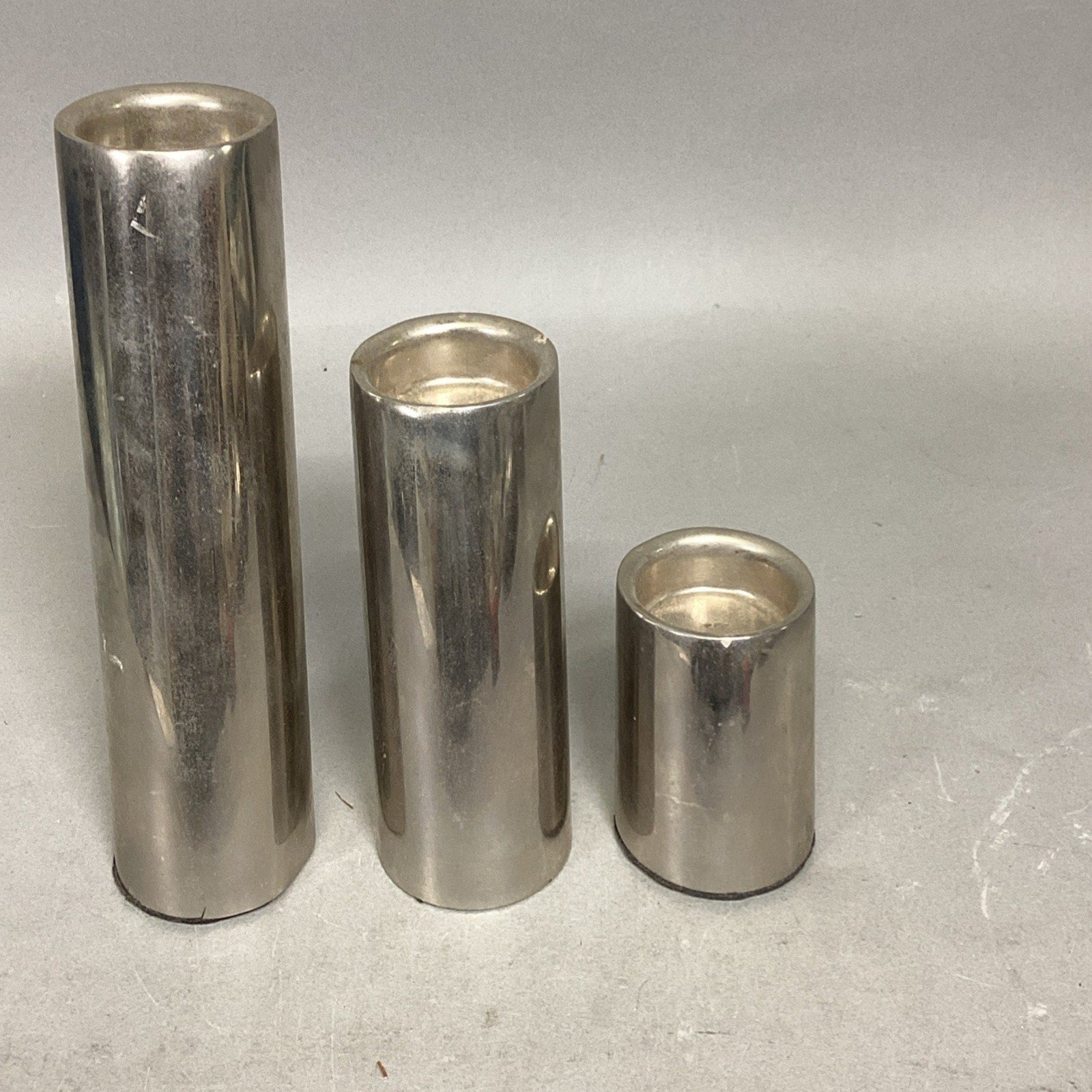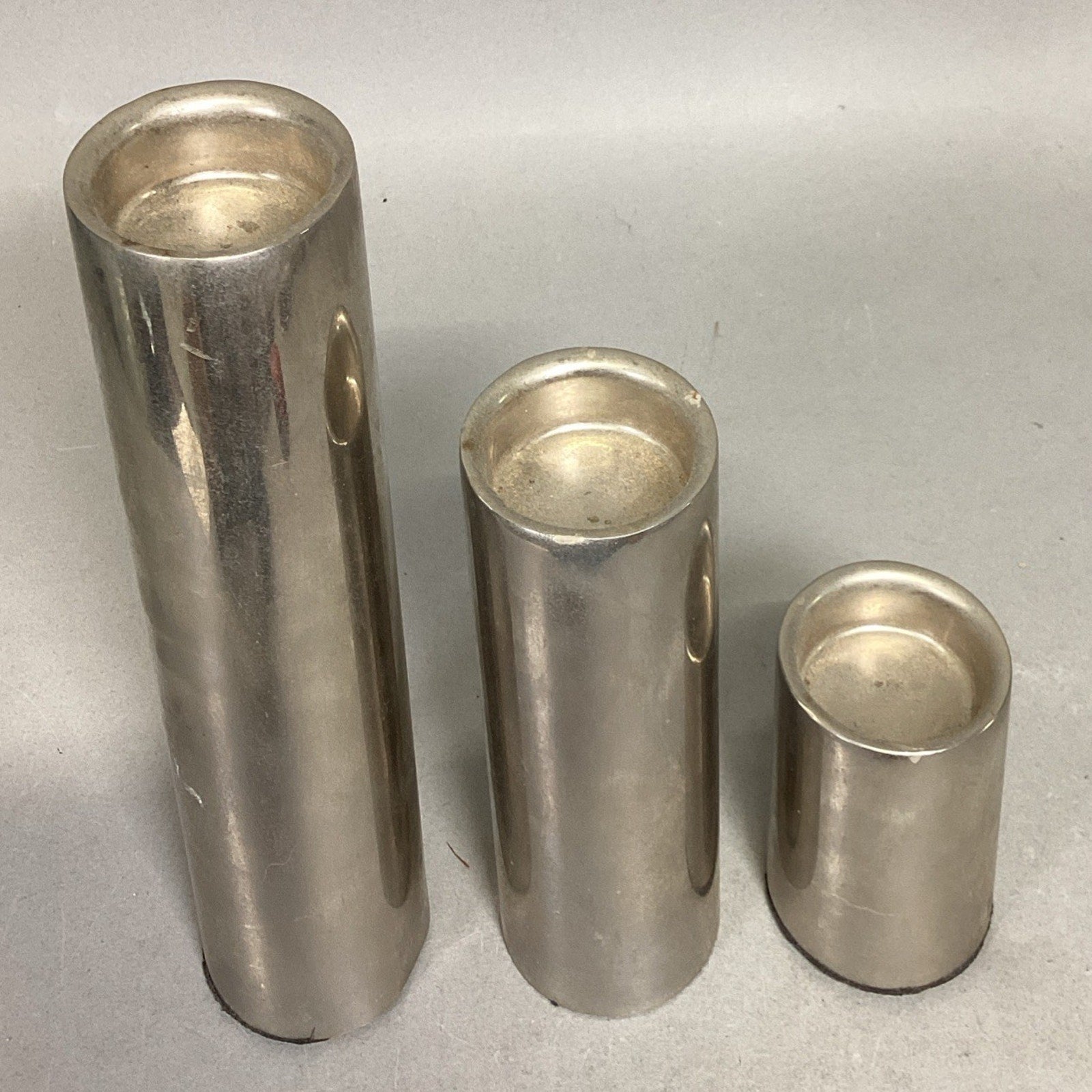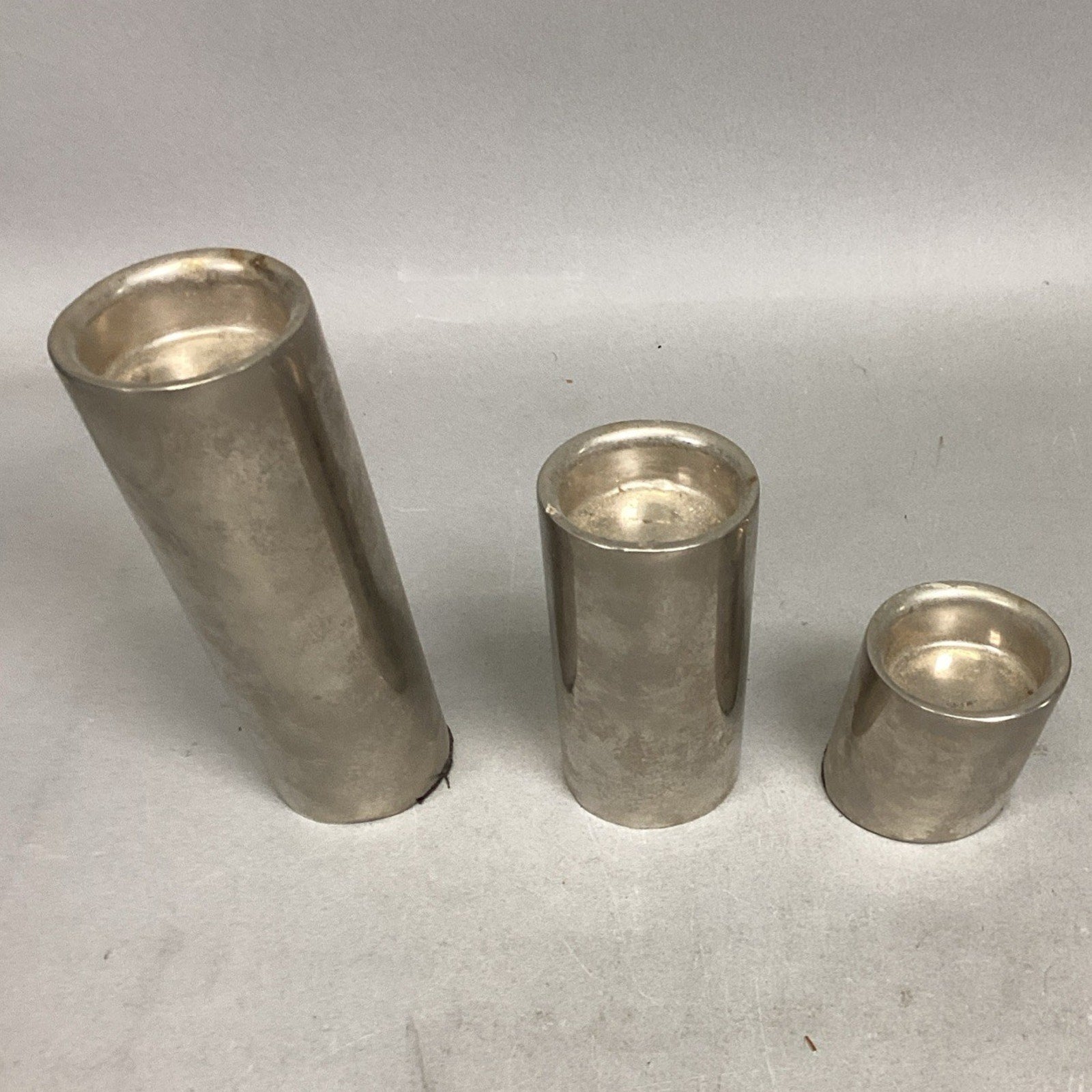Set Of 3 Silver Plated Candle Holders - 7.5, 5, & 2.75”H