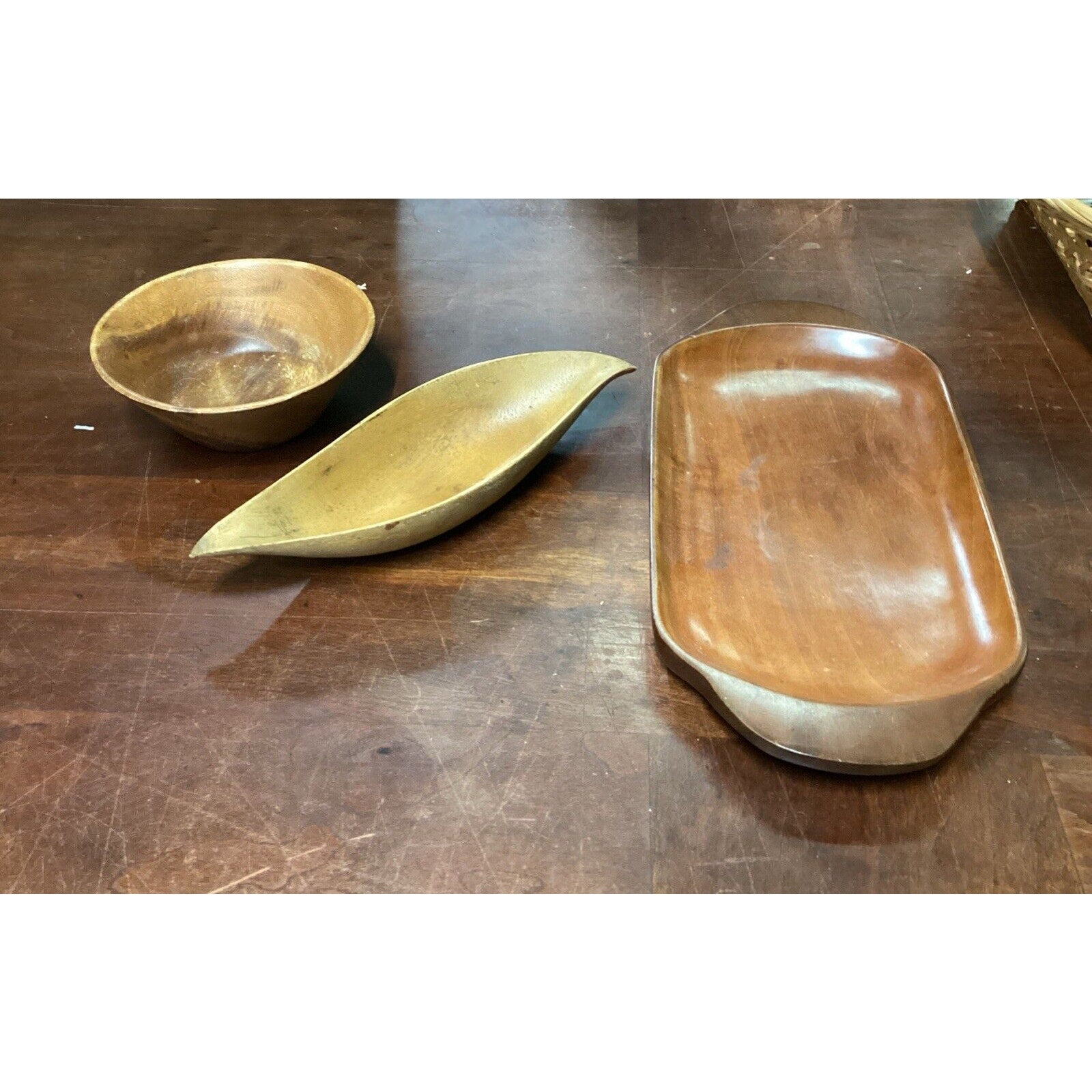 Each item has some stains or imperfections from normal use. No cracks in the wood.
