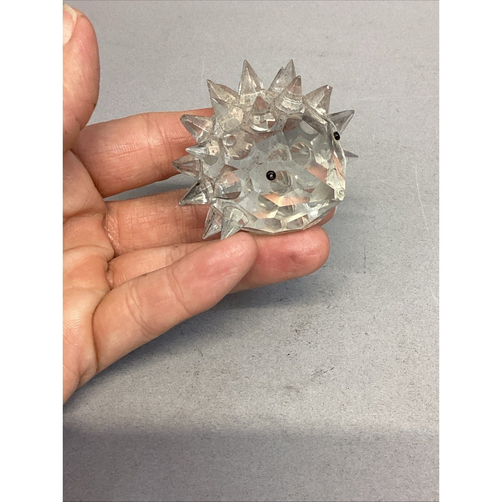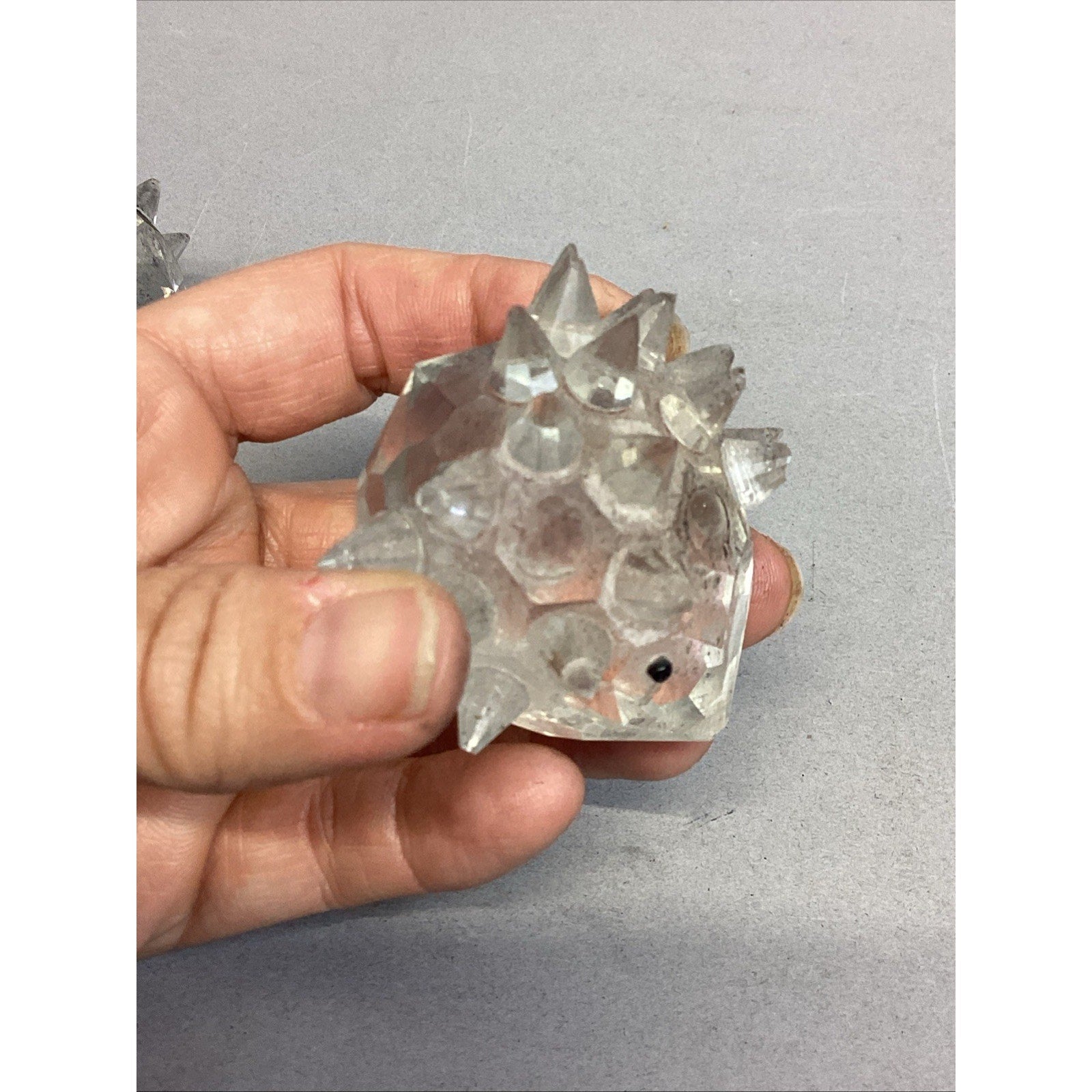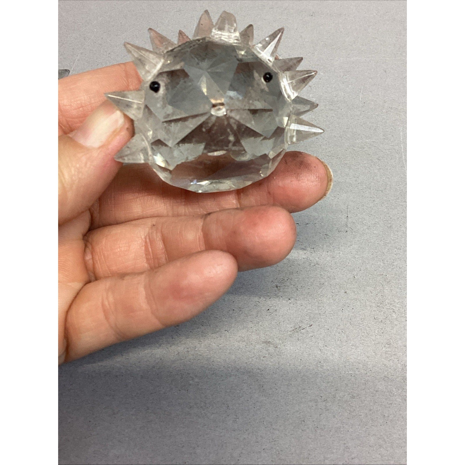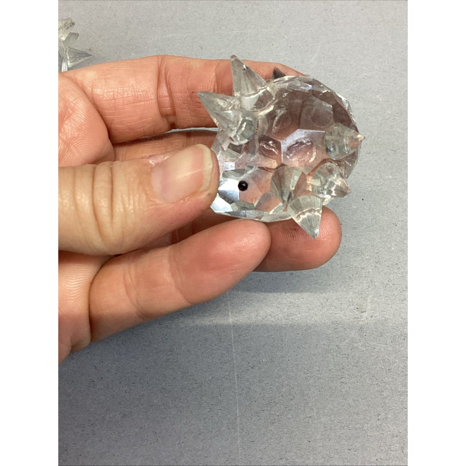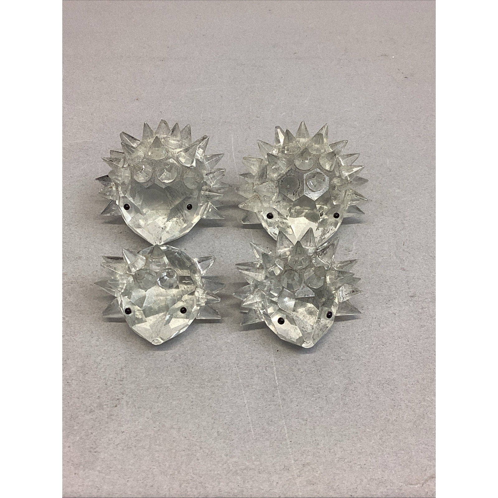 These are NOT Swarovski Crystal. These are just glass. The one adult porcupine is missing a couple spikes and one of the babies is also missing a few spikes. The adults measure 2”Hx1.75”Lx2” wide including the spikes. The babies measure 1.5”Hx1.5”Lx1.5”W
