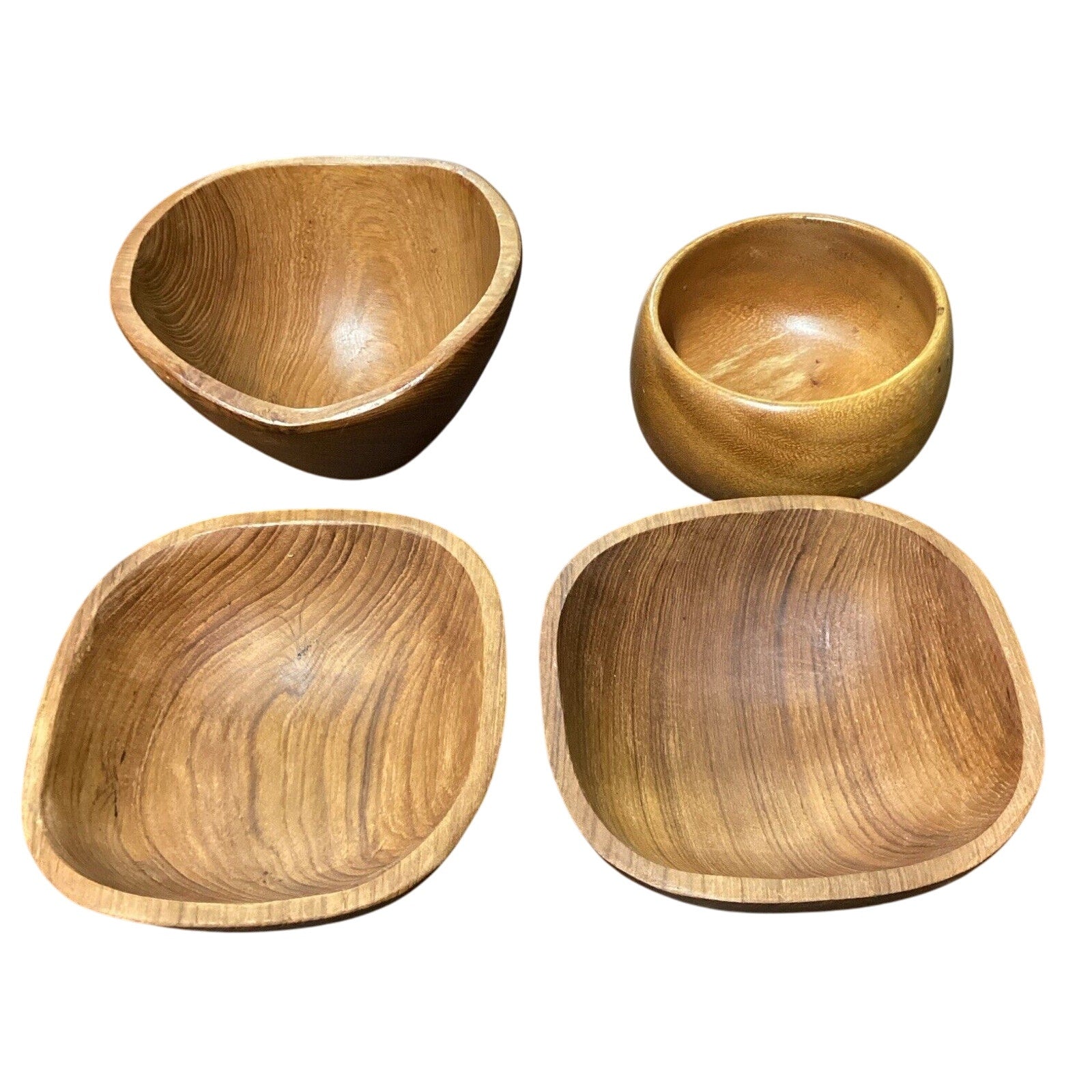 Set Of 4 Teak Wood Salad Or Soup Bowls