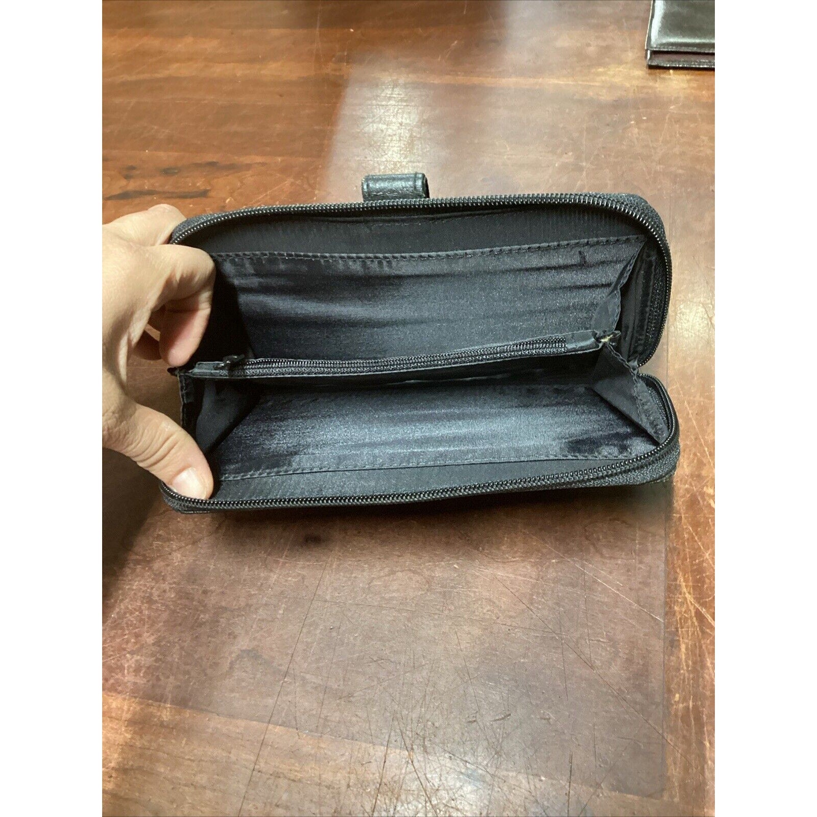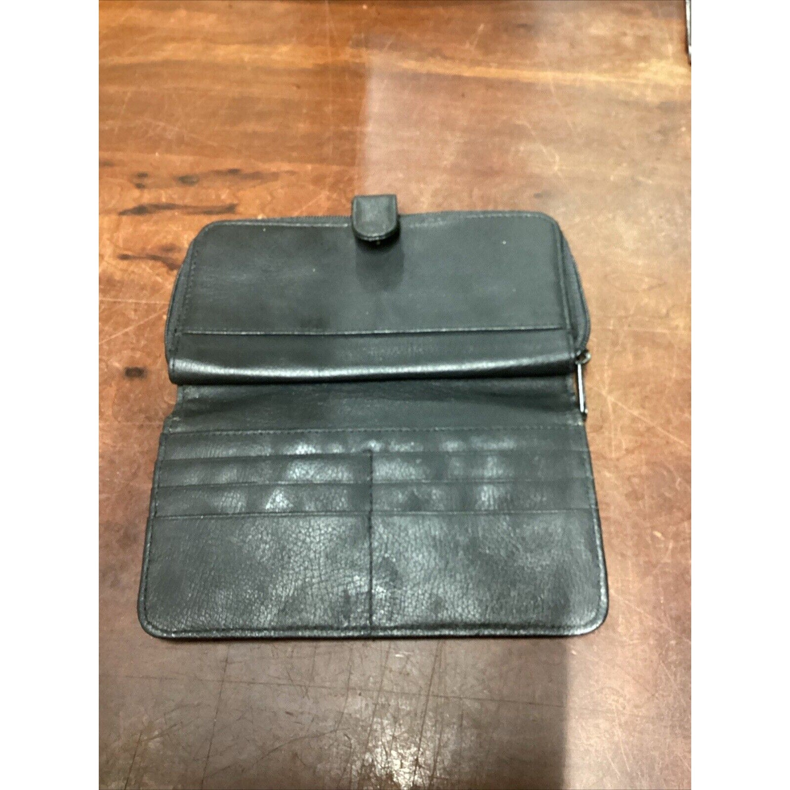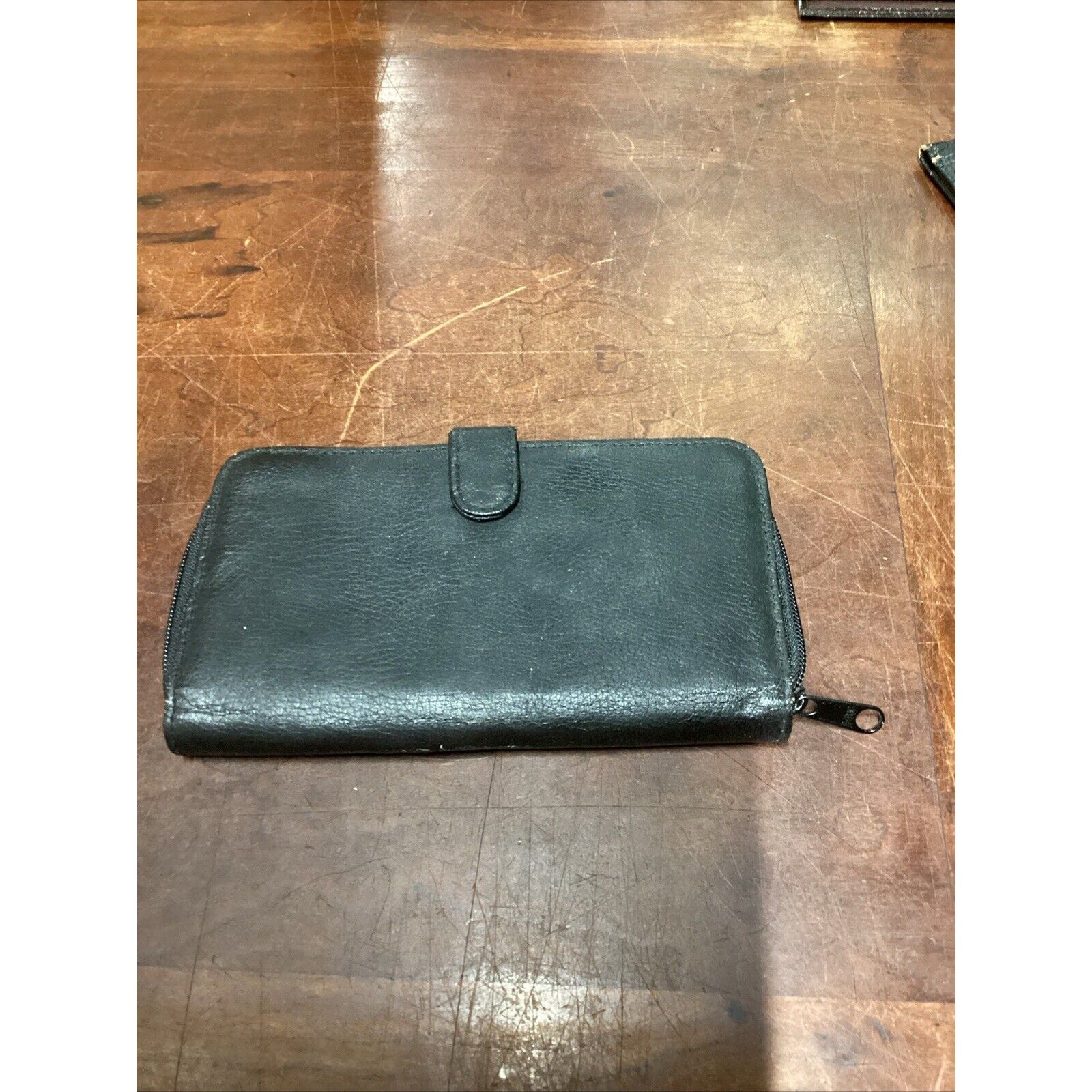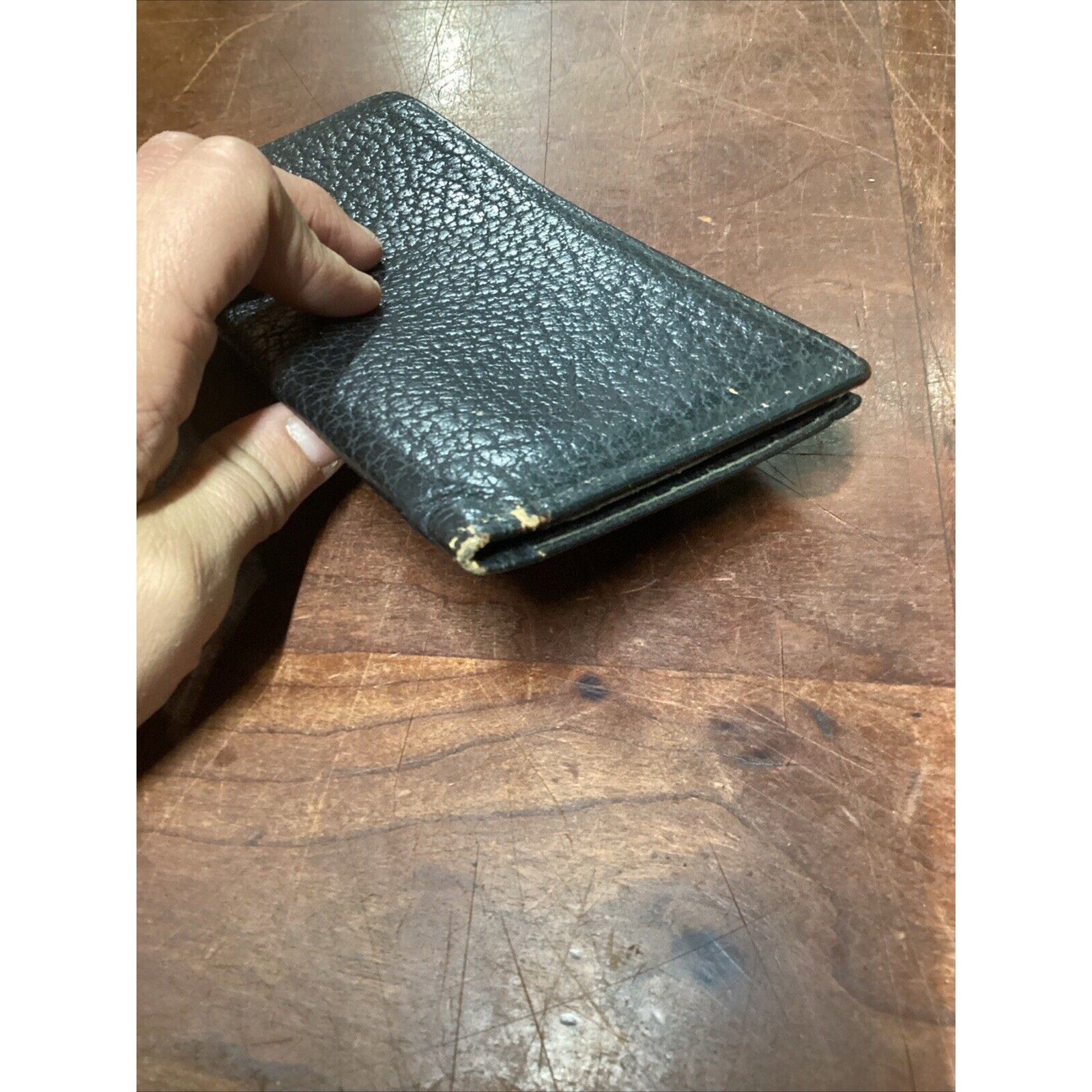 2. Black madras calfskin wallet. Has 4 interior pockets. Could be used as a checkbook holder too I think. The edges are worn a bit. Measures 7x3.5”