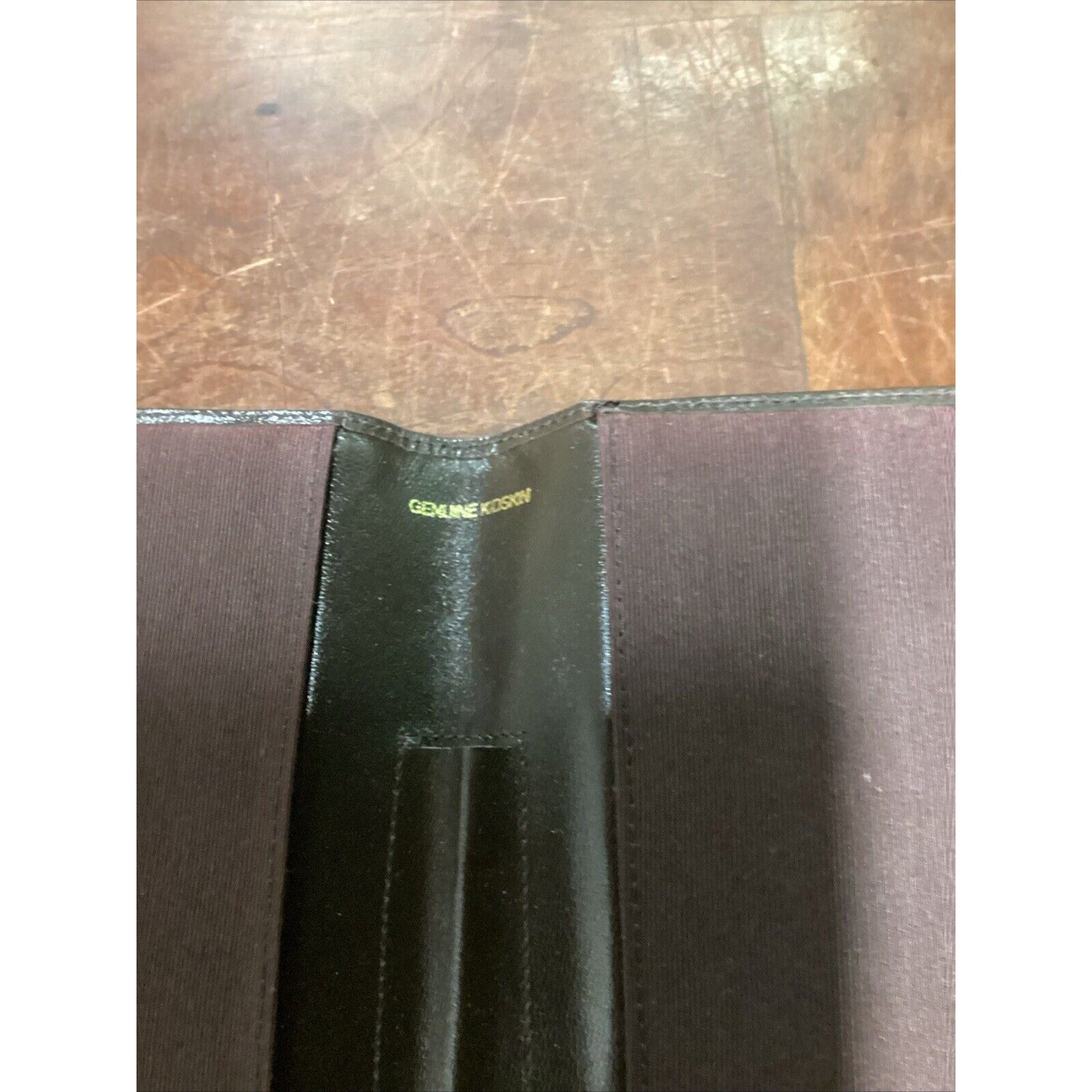 4. Genuine kidskin brown leather wallet - 2 main pockets and a pocket for a pen or pencil. Measures 6.75x4.25”