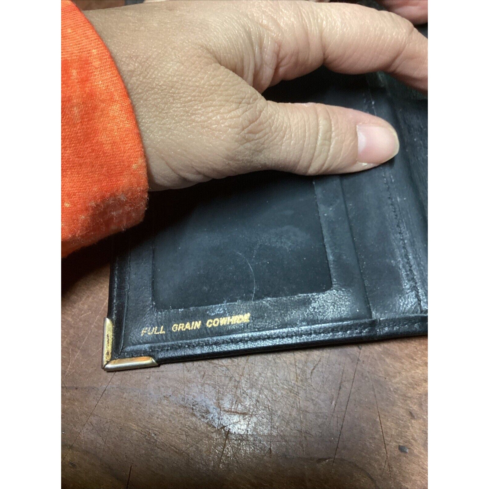 3. Black full grain cowhide wallet - 3 main pockets. 4 smaller ones for cards/license. Measures 7x4”