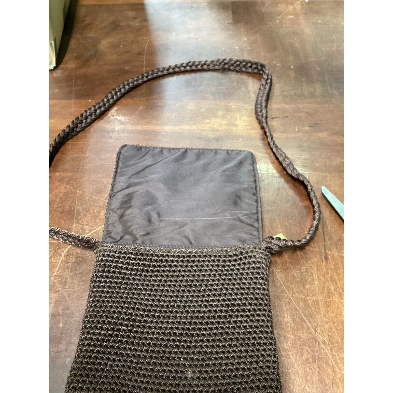 In good pre owned condition. There is 1 small stain on the front. There is 1 large interior pocket and 1 smaller pocket on the interior. This measures 8.5”x7”.
