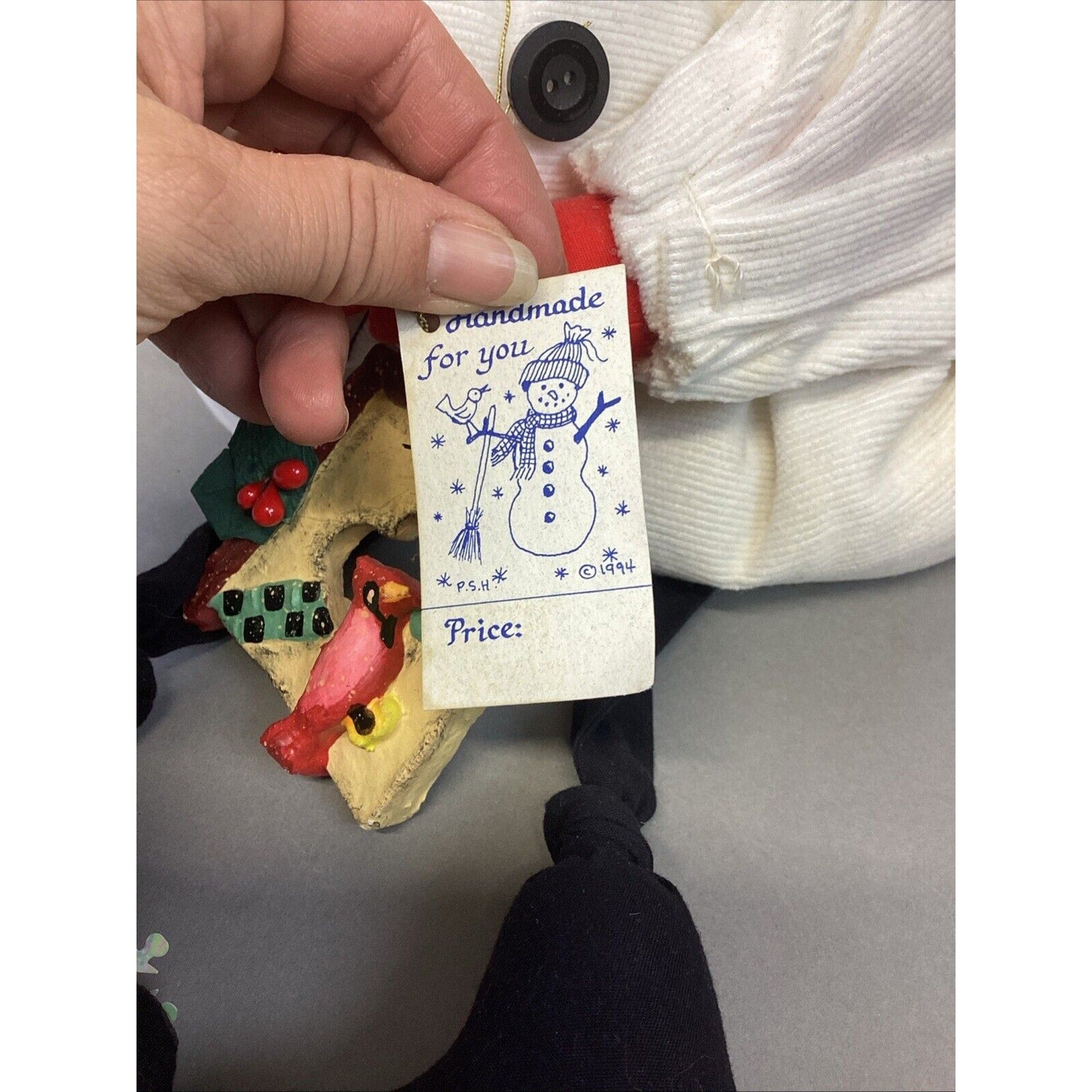 Vintage 1994 Handcrafted Plush Beanbag Filled Snowman Shelf Sitter - 16”