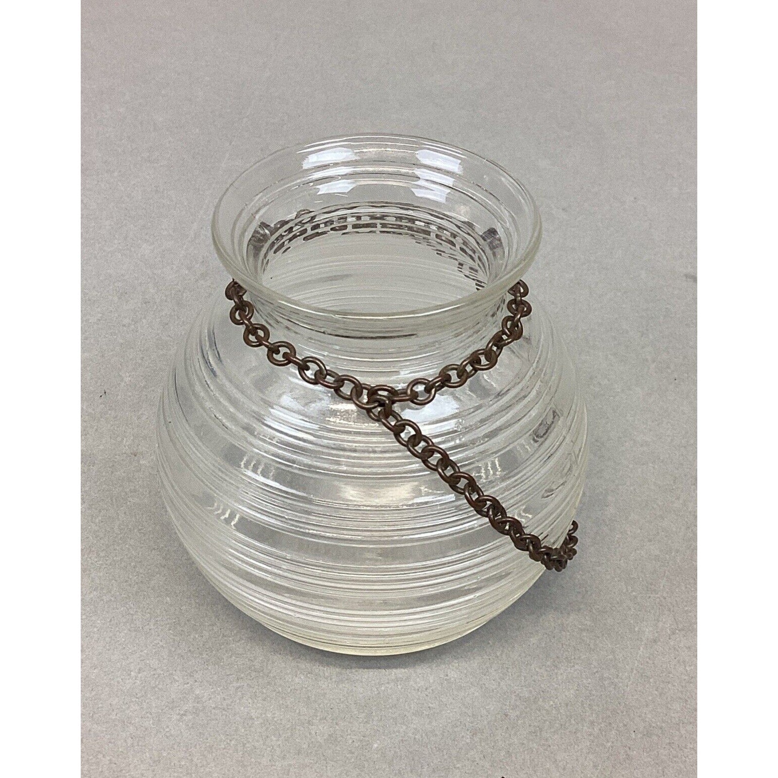 Vintage Clear Depression Glass Small Ribbed Bee Hive Vase With Chain - 3”Hx2”D (measured at the top opening only). I. Good condition overall. Has a couple imperfections in the glass which can be seen when looking at it close up.