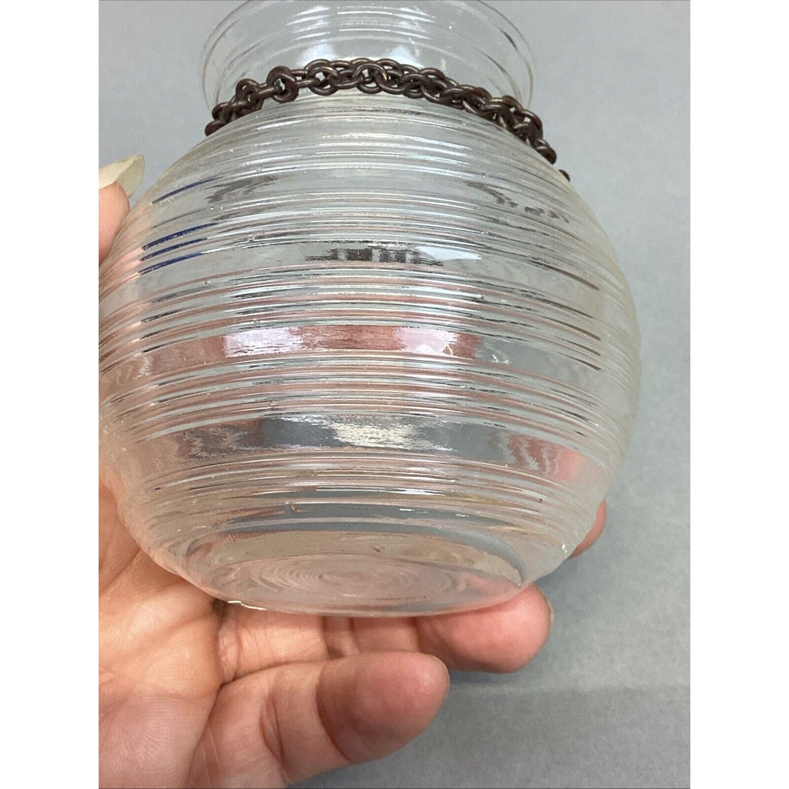 Vintage Clear Depression Glass Small Ribbed Bee Hive Vase With Chain - 3”