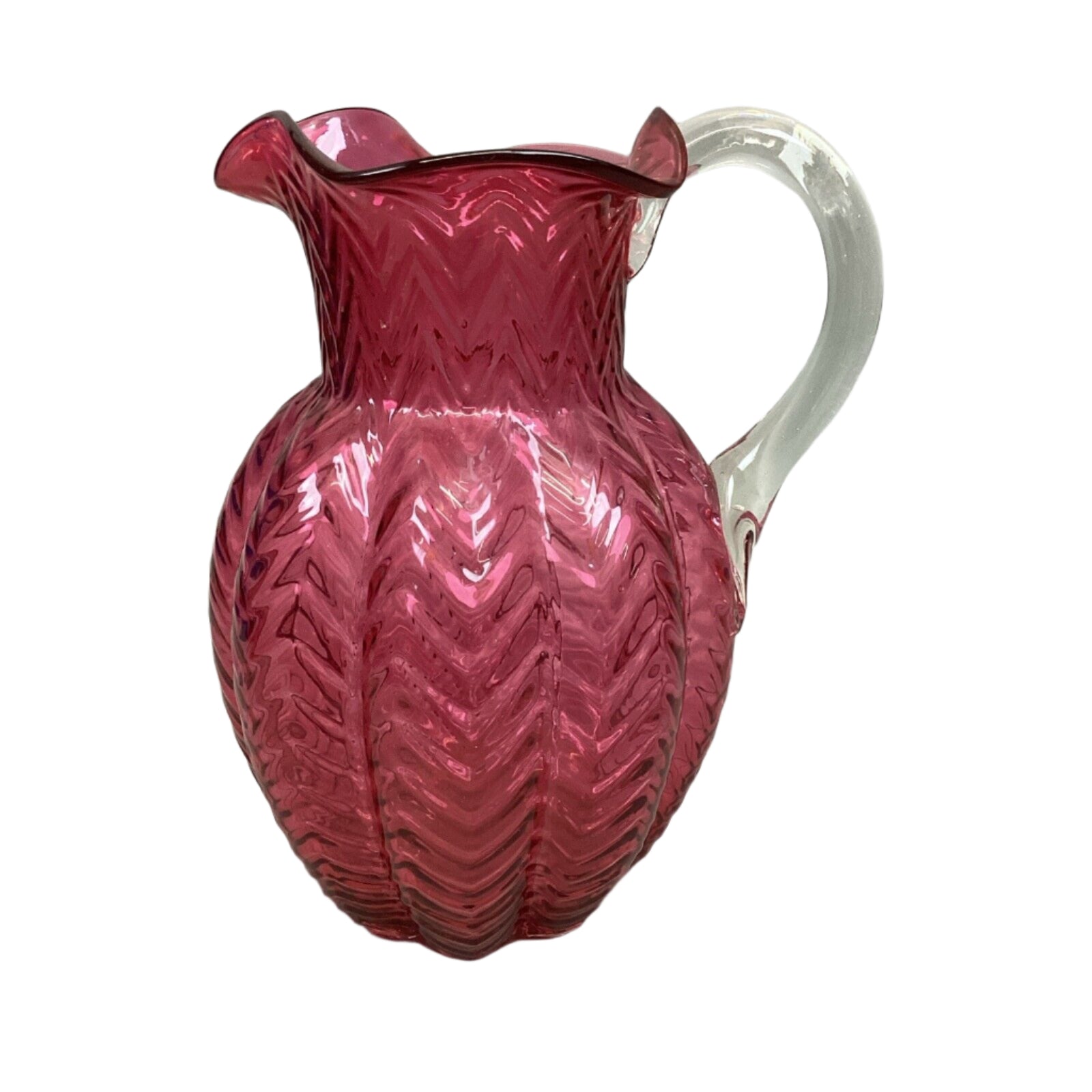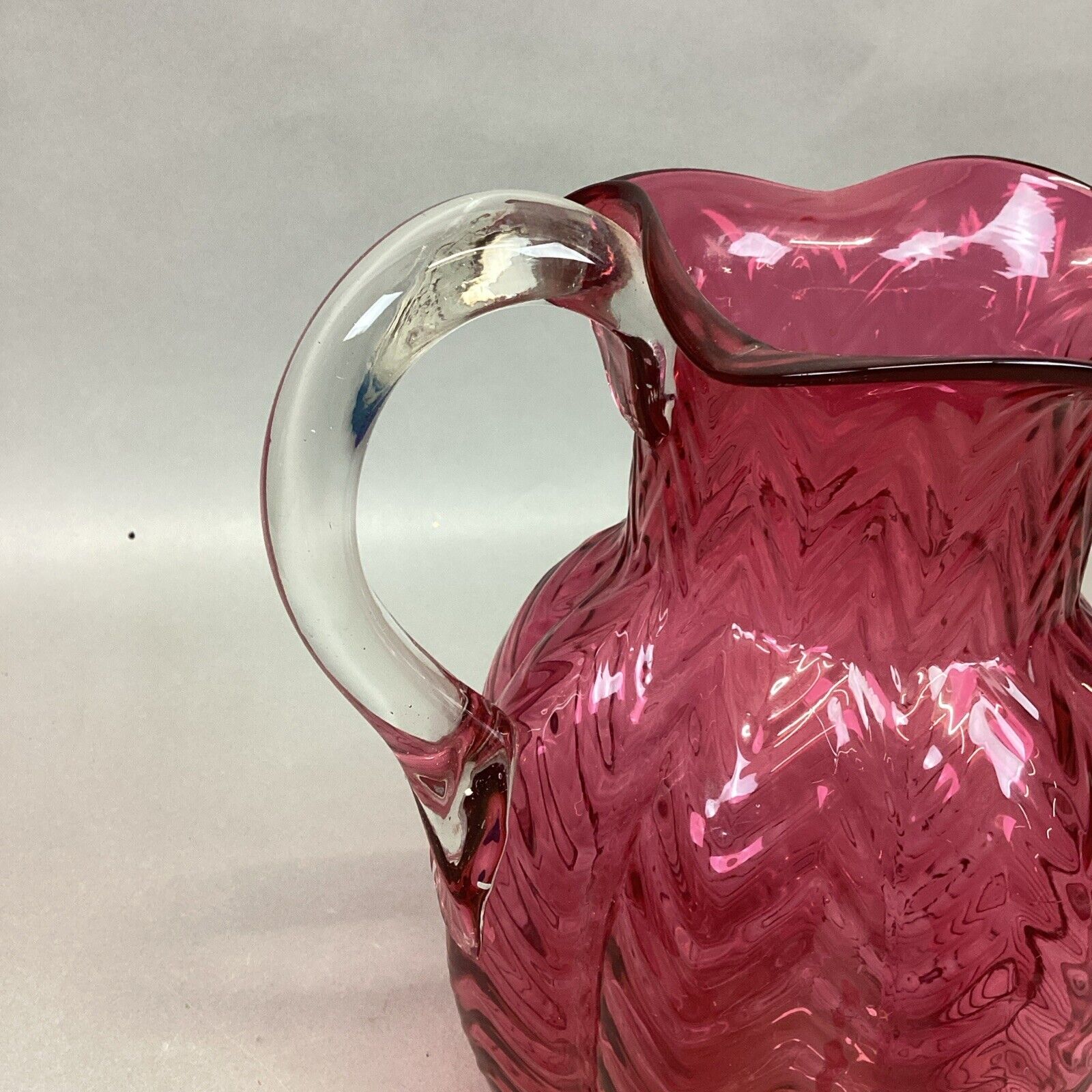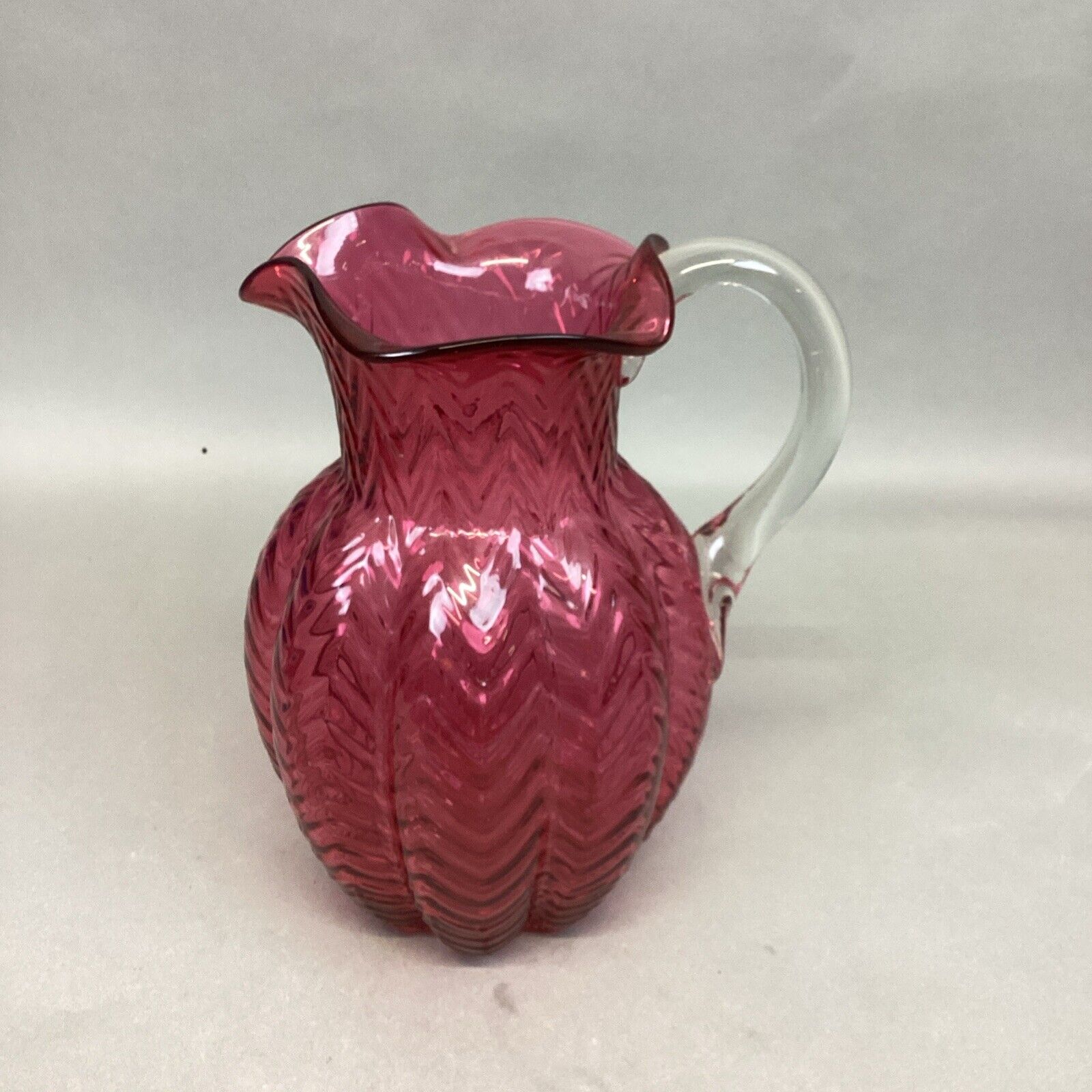 Vintage Fenton Cranberry Swirled Glass Pitcher - 8.75”H