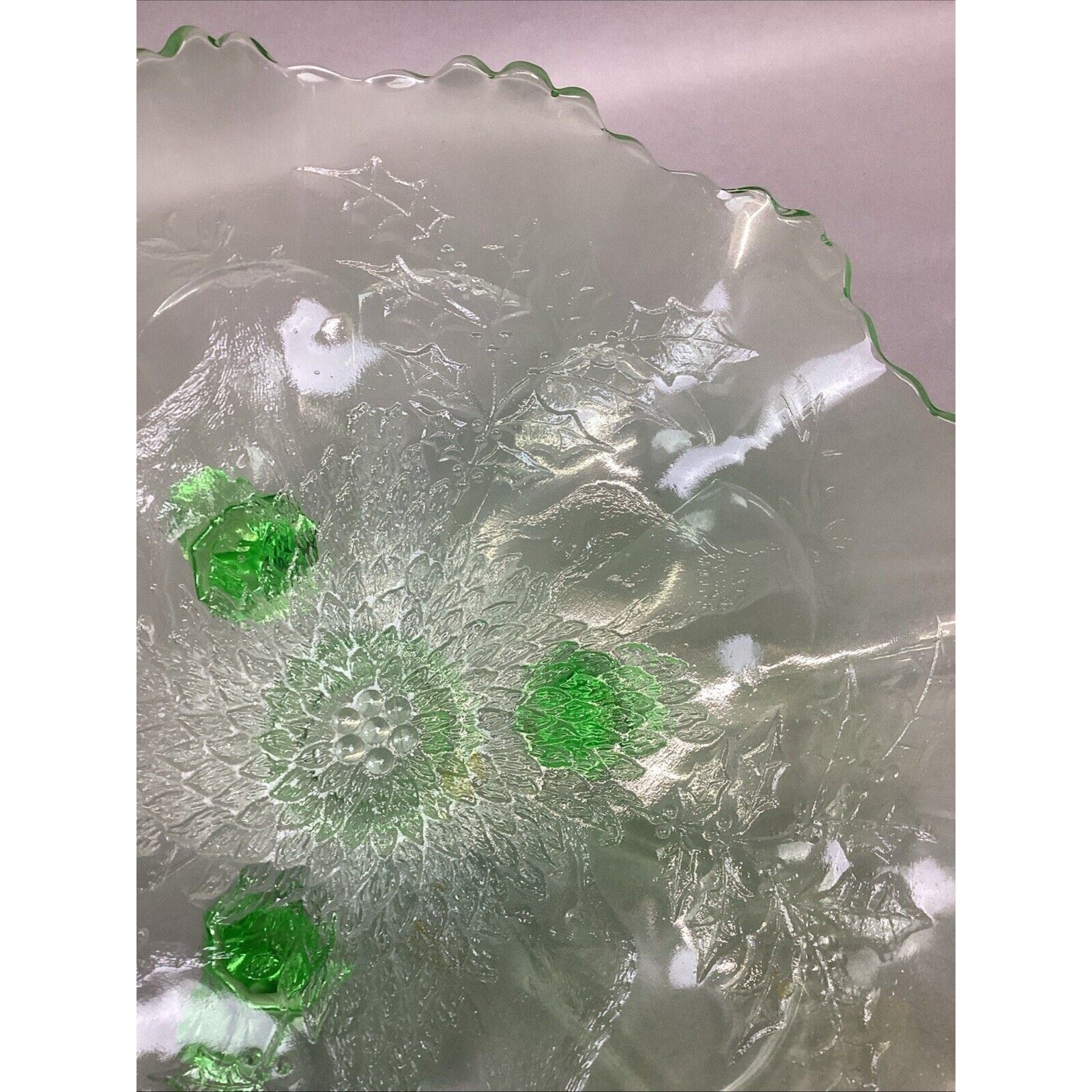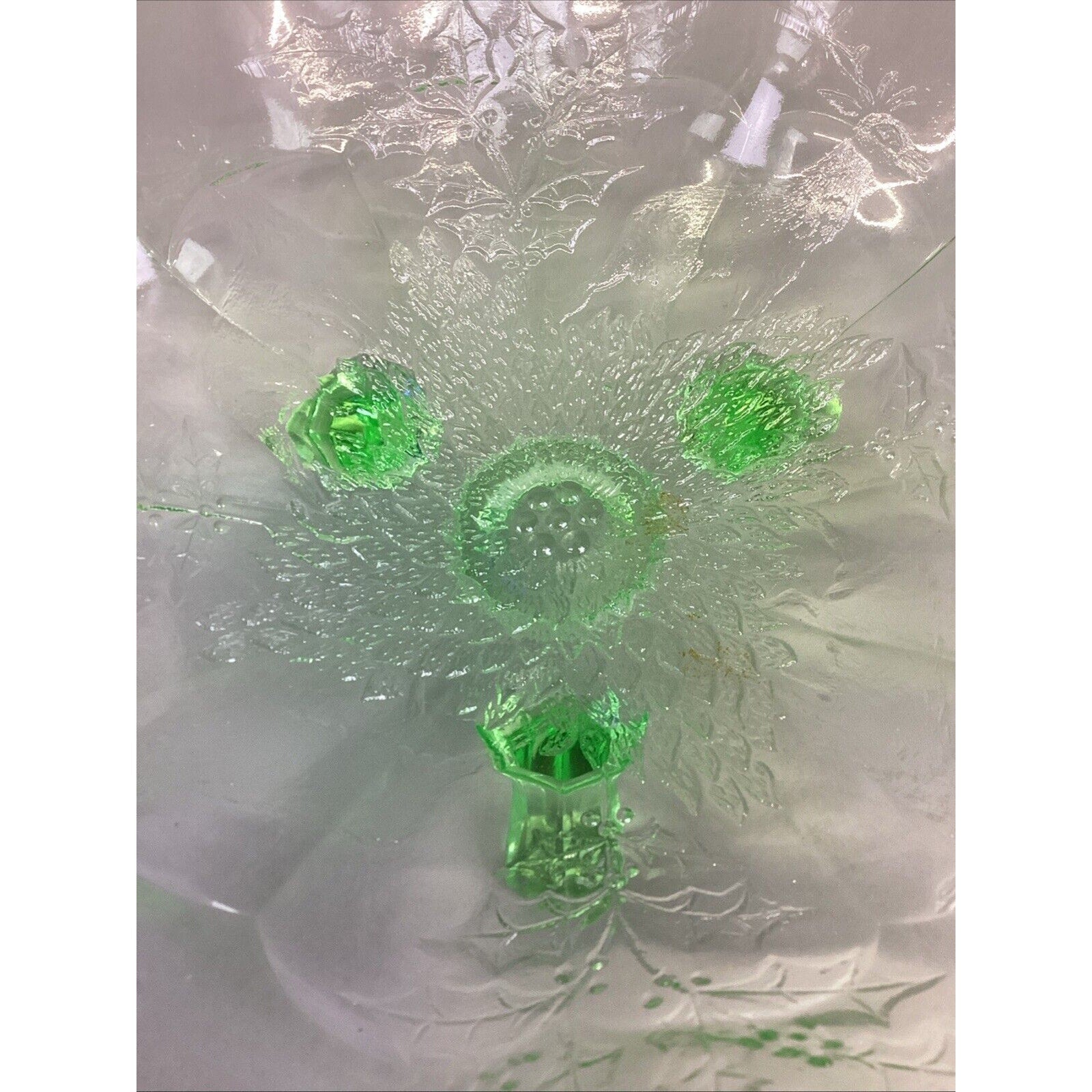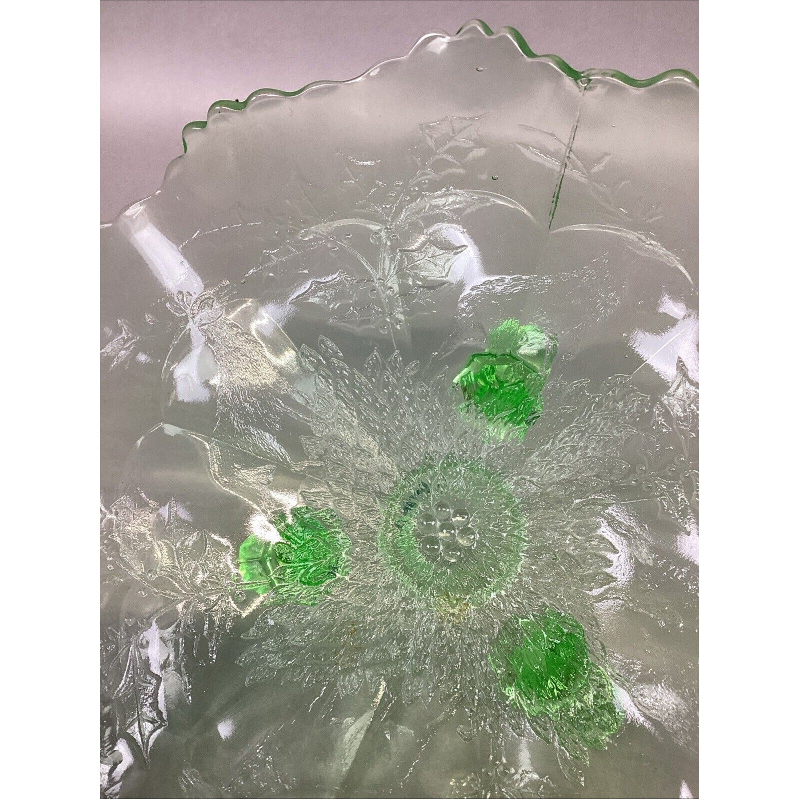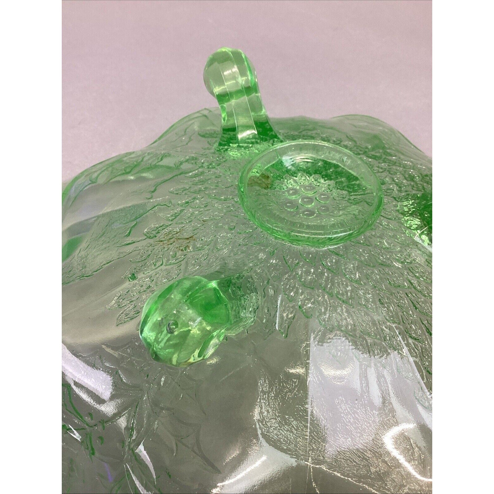 Vintage Fenton Stag and Holly Green Uranium Glass 3 Footed Bowl - 10x3.75”