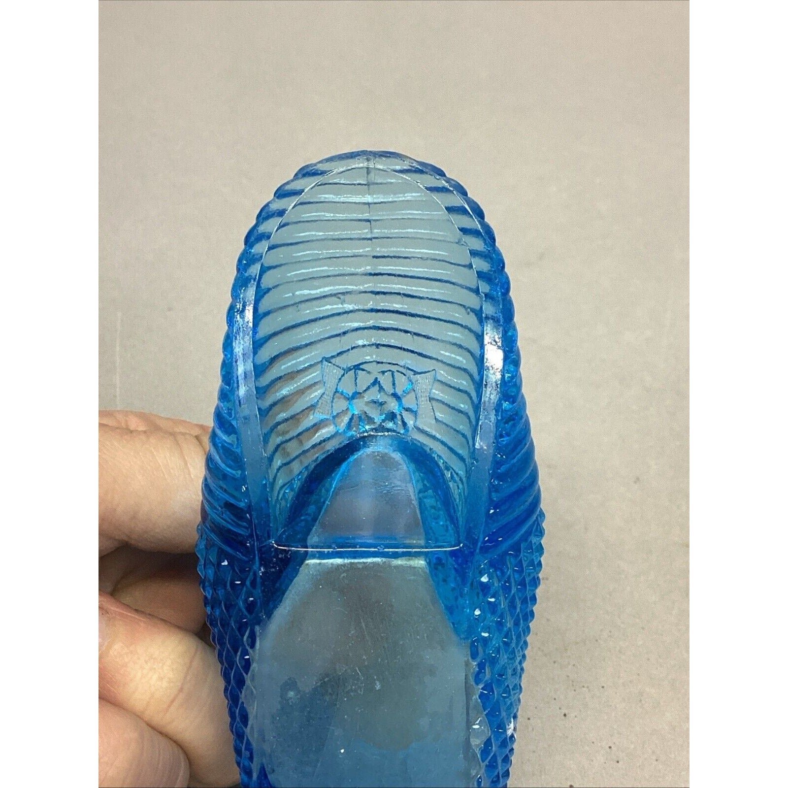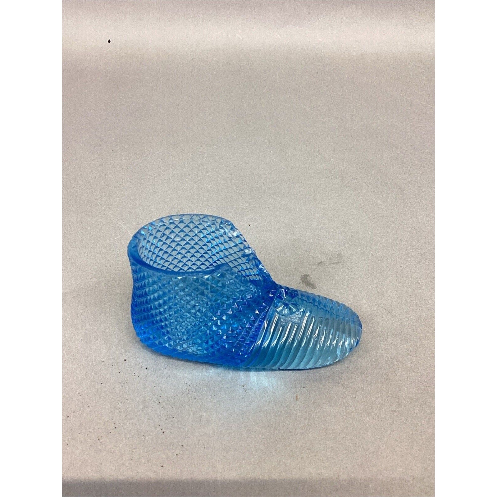 Vintage Fenton Vaseline Glass Blue Baby Slipper Figurine. It has a little spot of damage on the top edge by the bow. Can be seen in the pictures. This measures 2.25”Hx4”Lx1.5”W