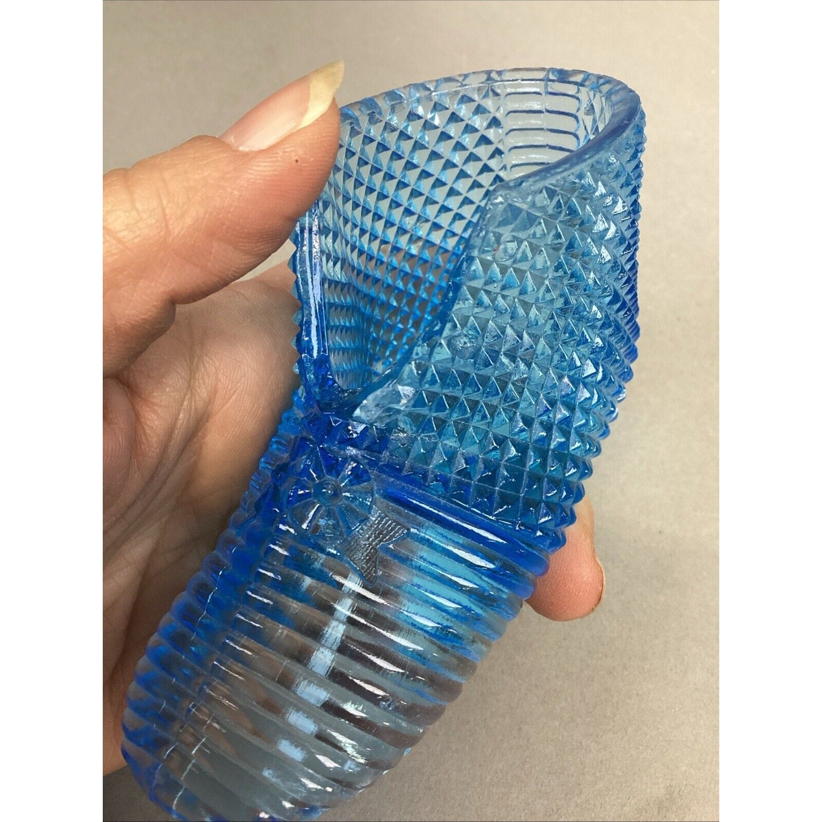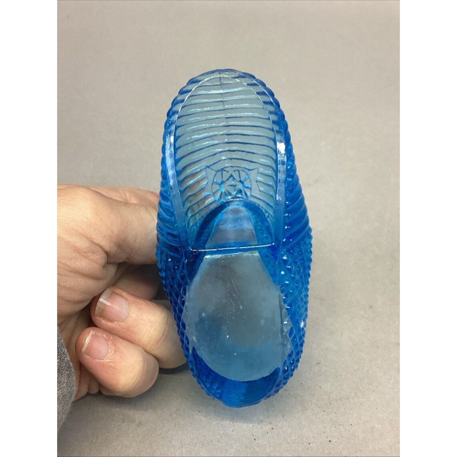 Vintage Fenton Vaseline Glass Blue Baby Slipper Figurine. It has a little spot of damage on the top edge by the bow. Can be seen in the pictures. This measures 2.25”Hx4”Lx1.5”W
