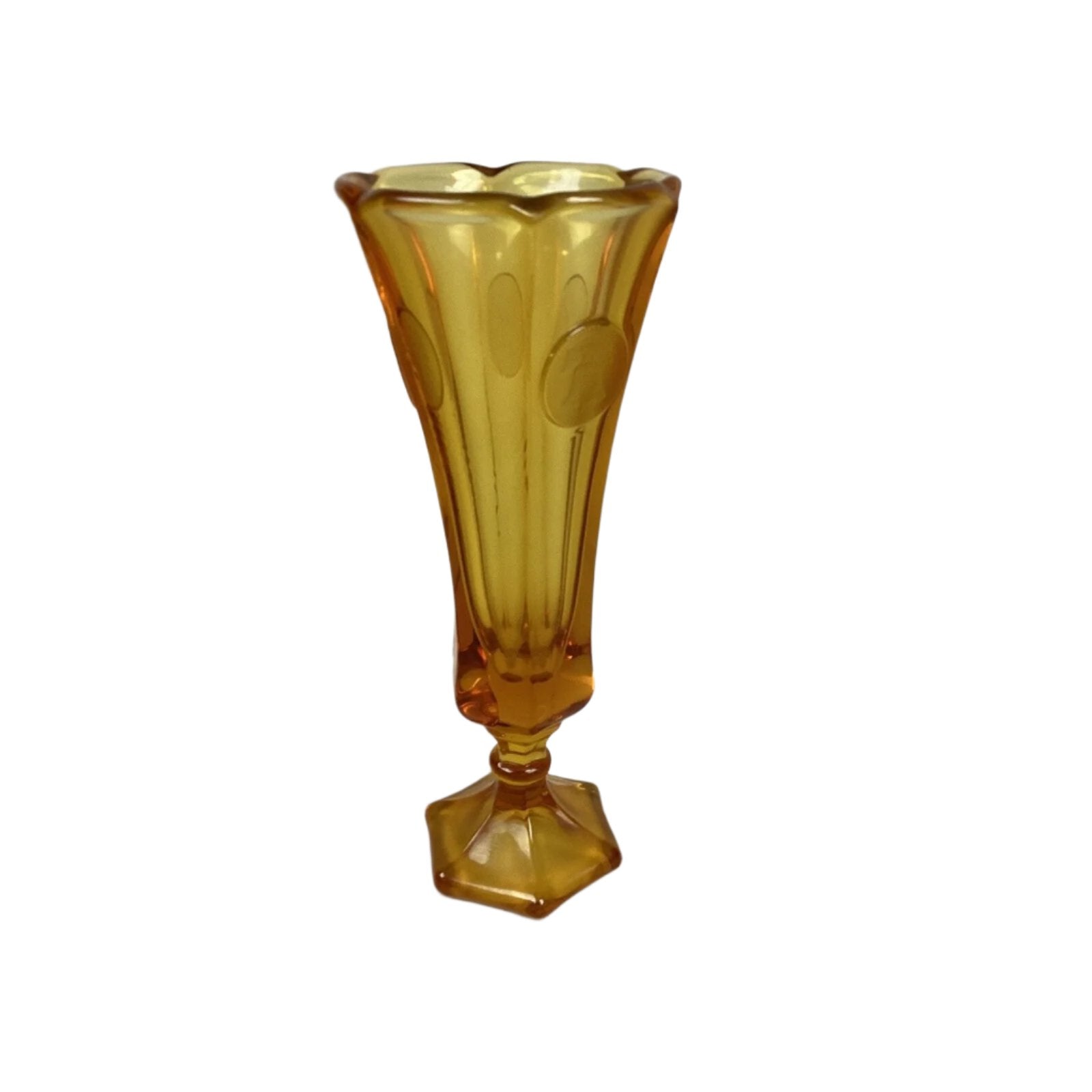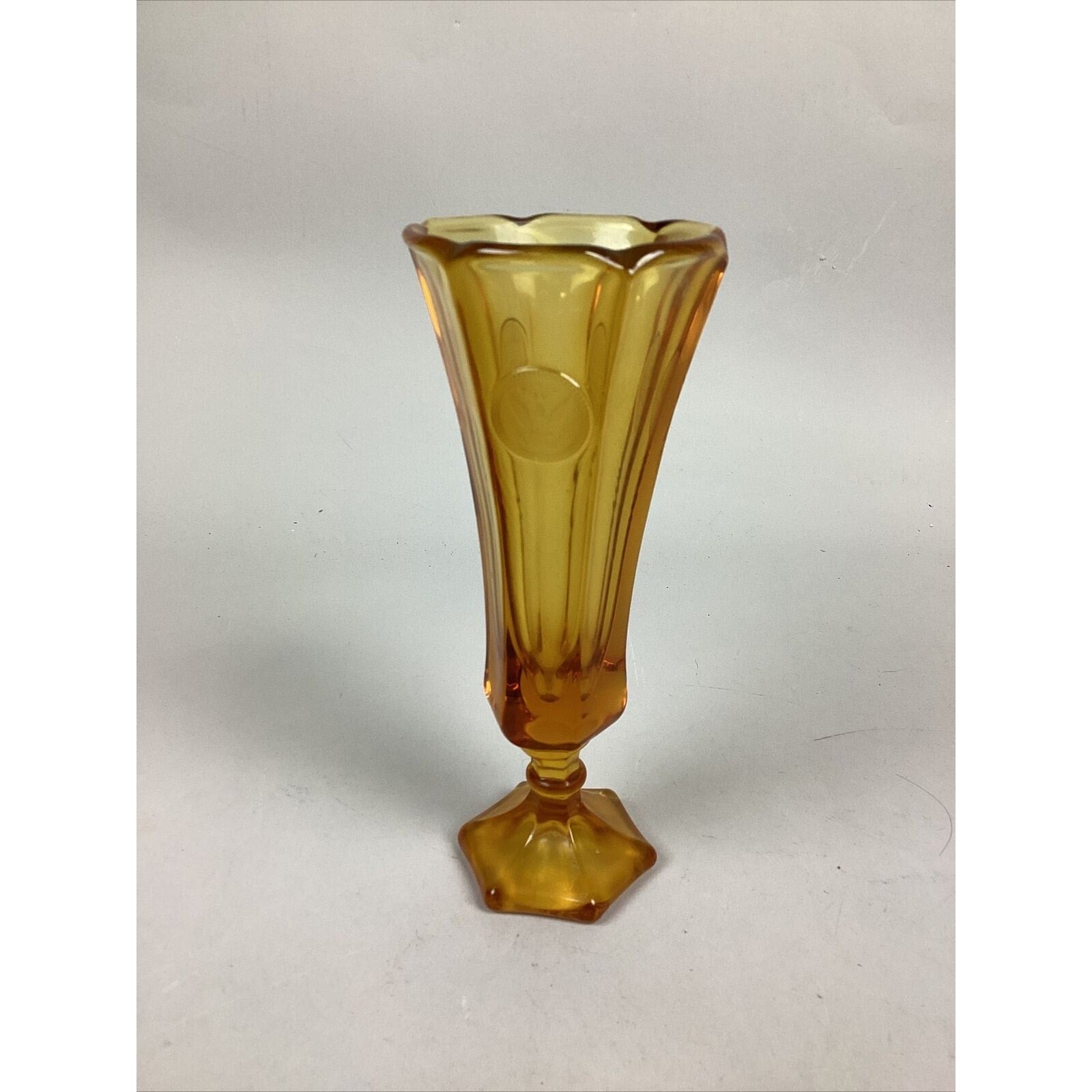 You are bidding on a Vintage Fostoria Amber Coin Dot Pattern Eagle Torch & Liberty Bell Glass Vase