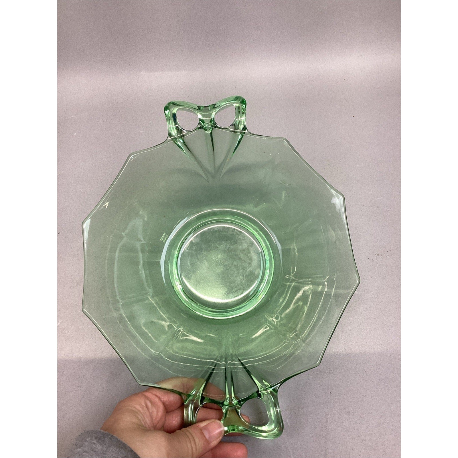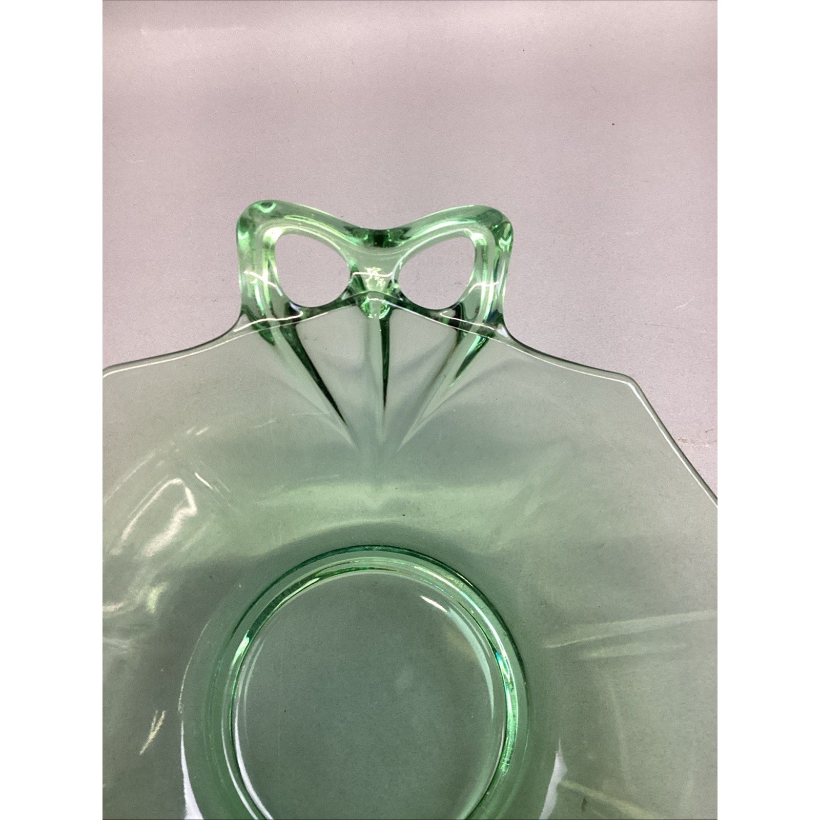 Vintage Fostoria Glass Uranium Glass Bon Bon Dish W/ Bow Tie Handles