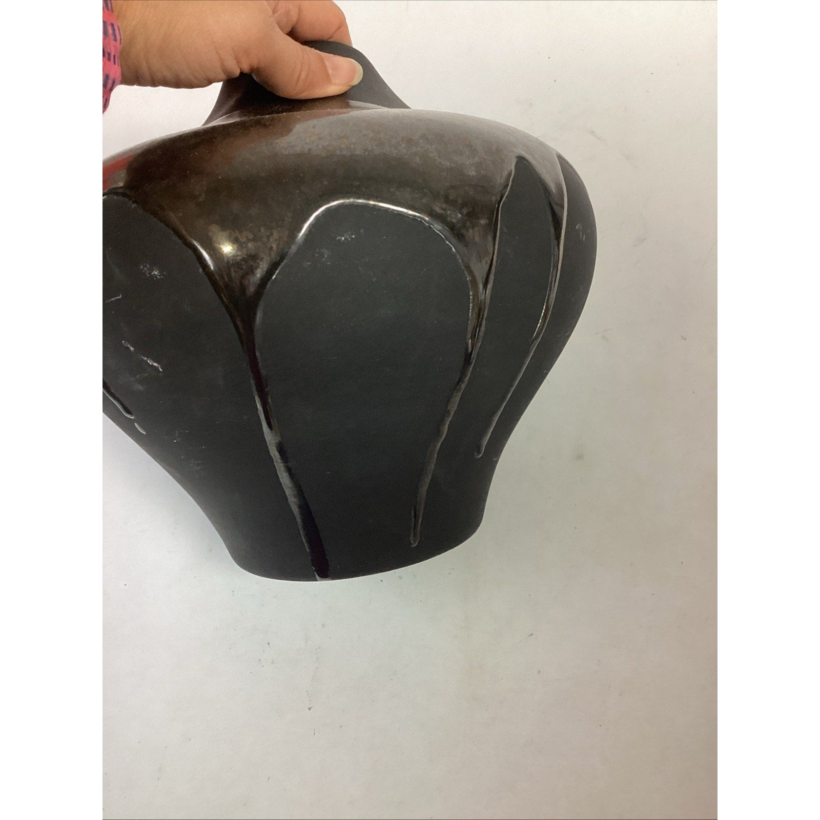 Vintage Haeger Pottery Vase - #4415 - 9”H - American Made. In used condition. It doesn’t have any cracks or chips but it does have some marks, spots/stains throughout. It measures 9”H by approximately 32” around the center.