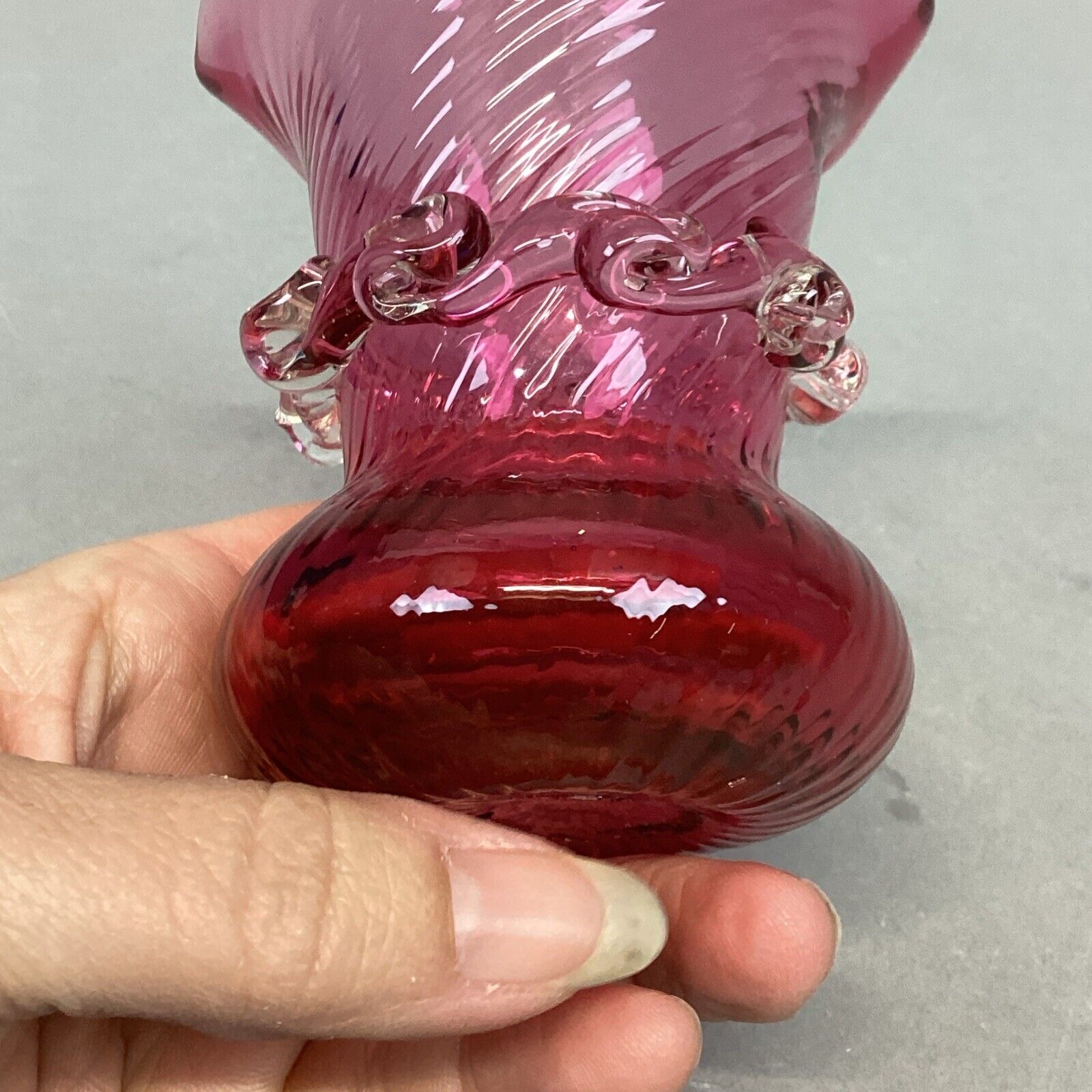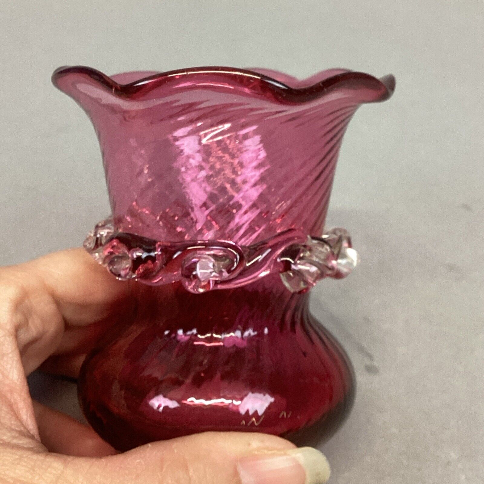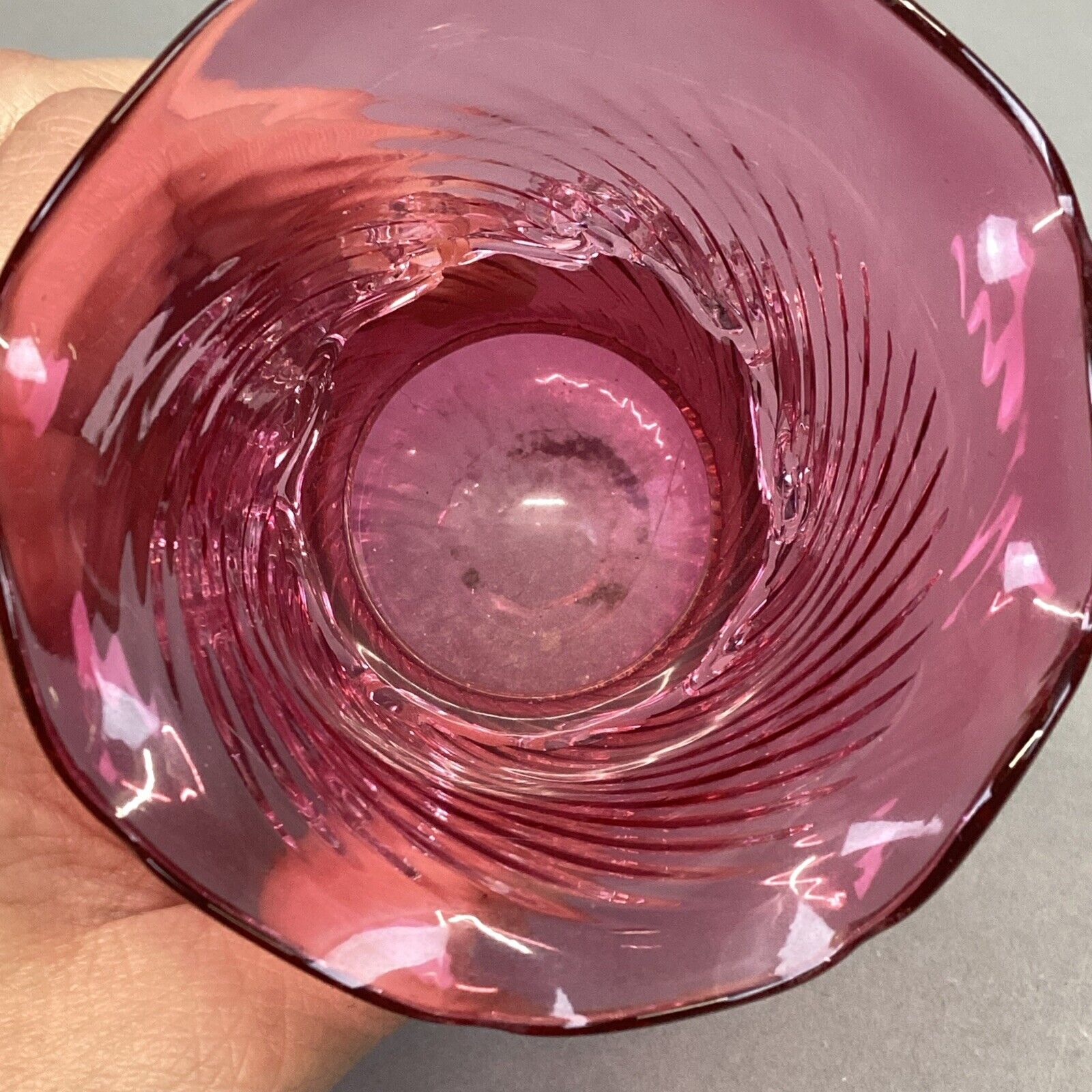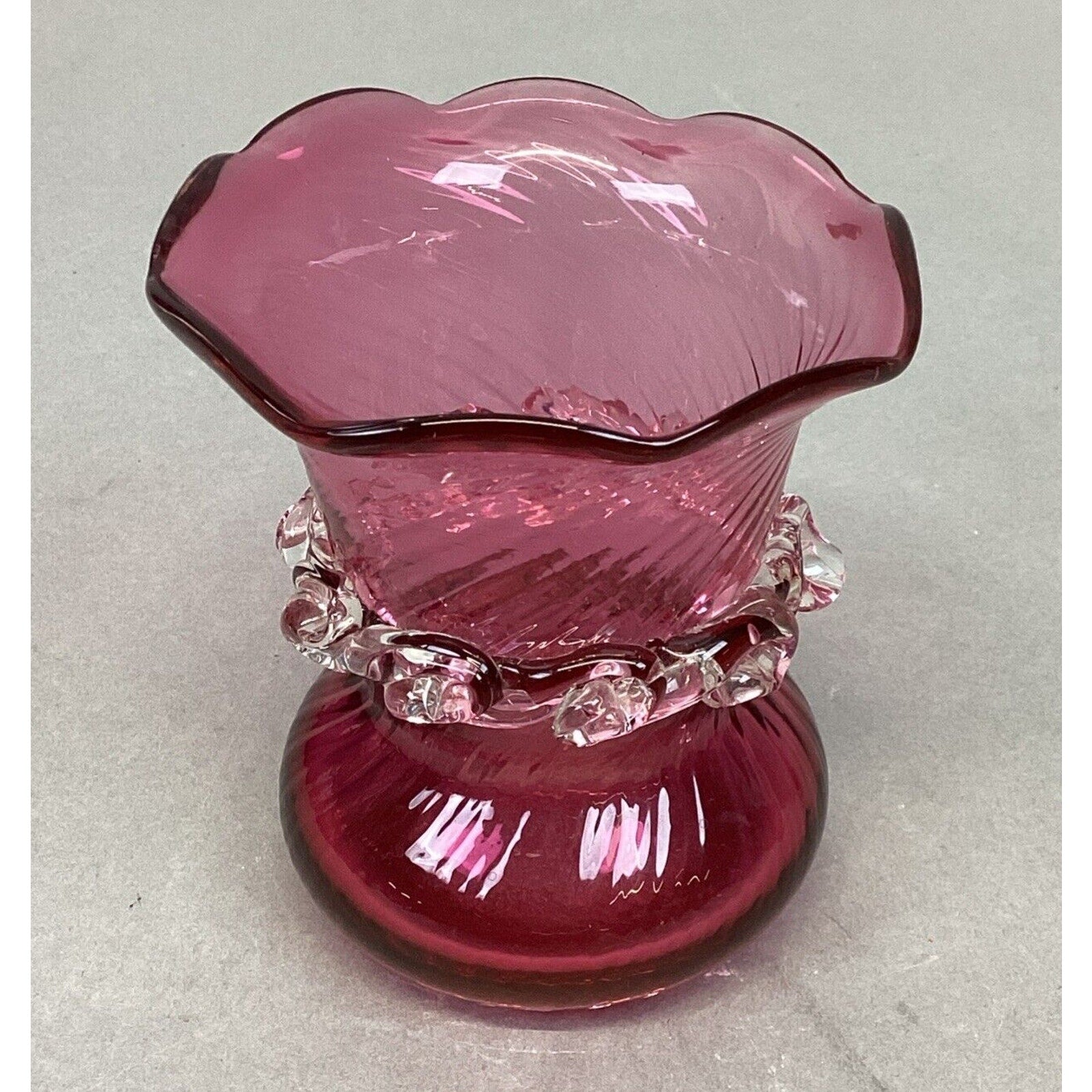 Vintage Hand Blown Pilgrim Glass Swirl Cranberry Vase - 3.5”H