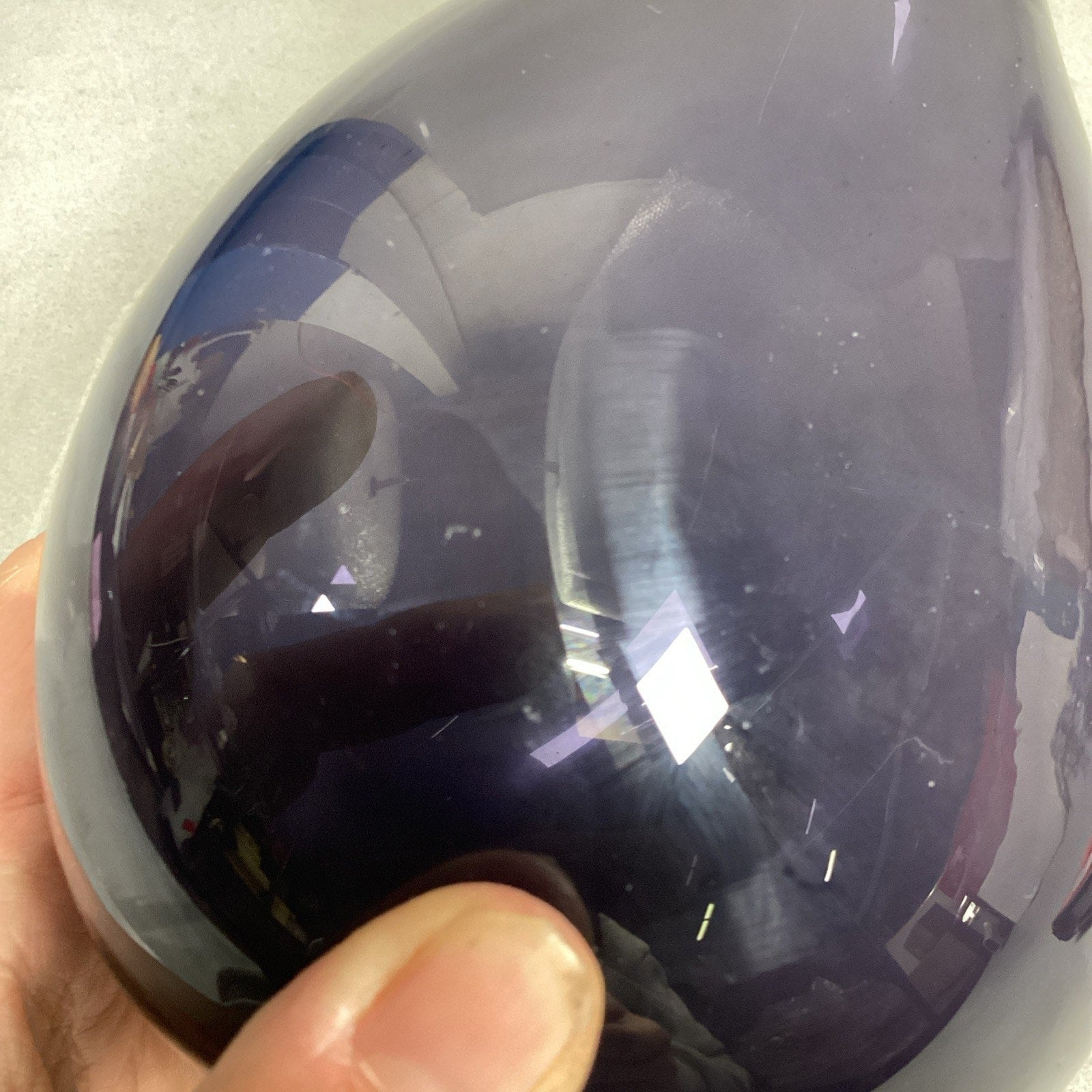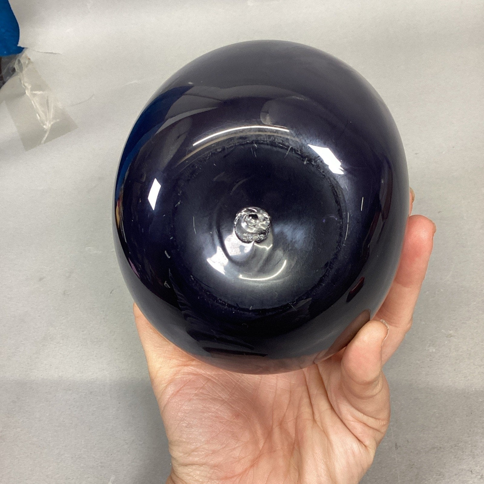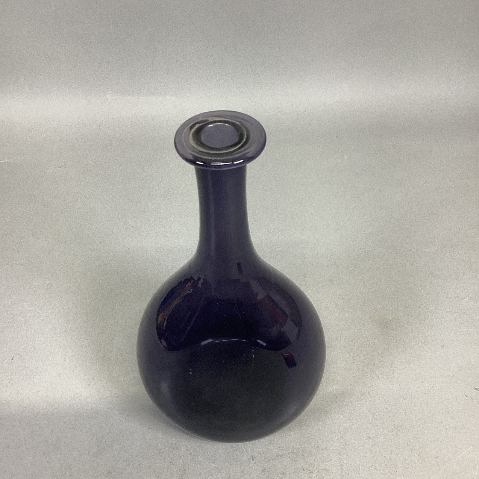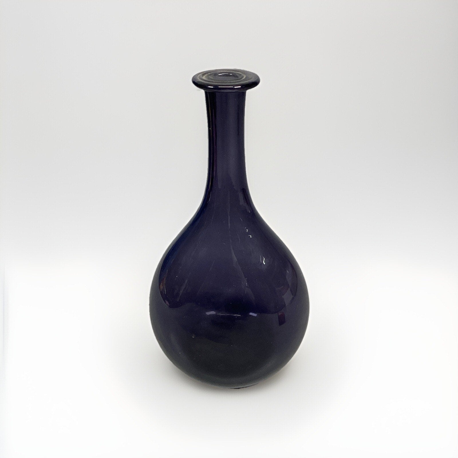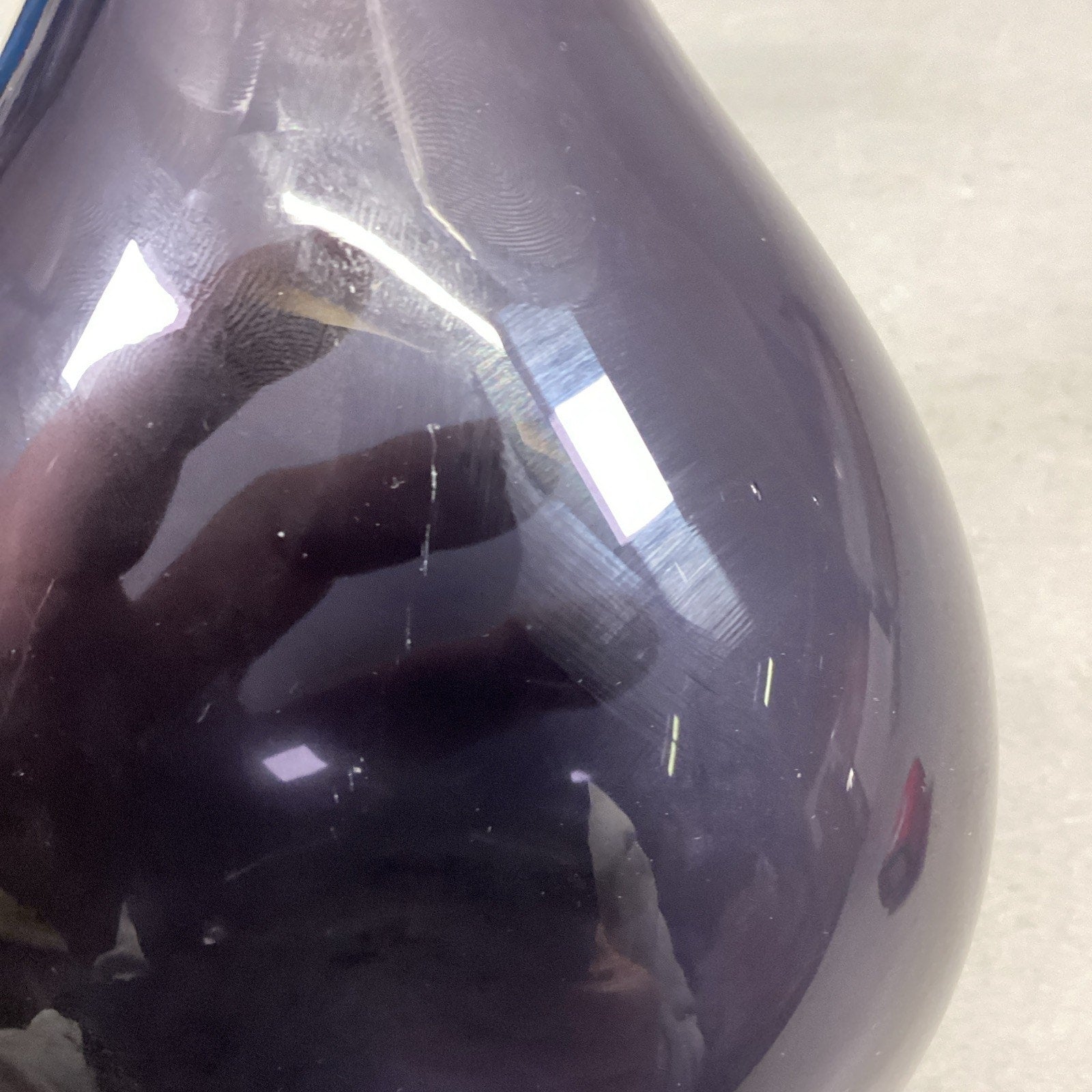 Vintage Hand Blown Purple Glass Bud Vase - 9”H. In very good condition. Theres a very small chip on the side. The base has a few scratches and there’s a scratch on the side.