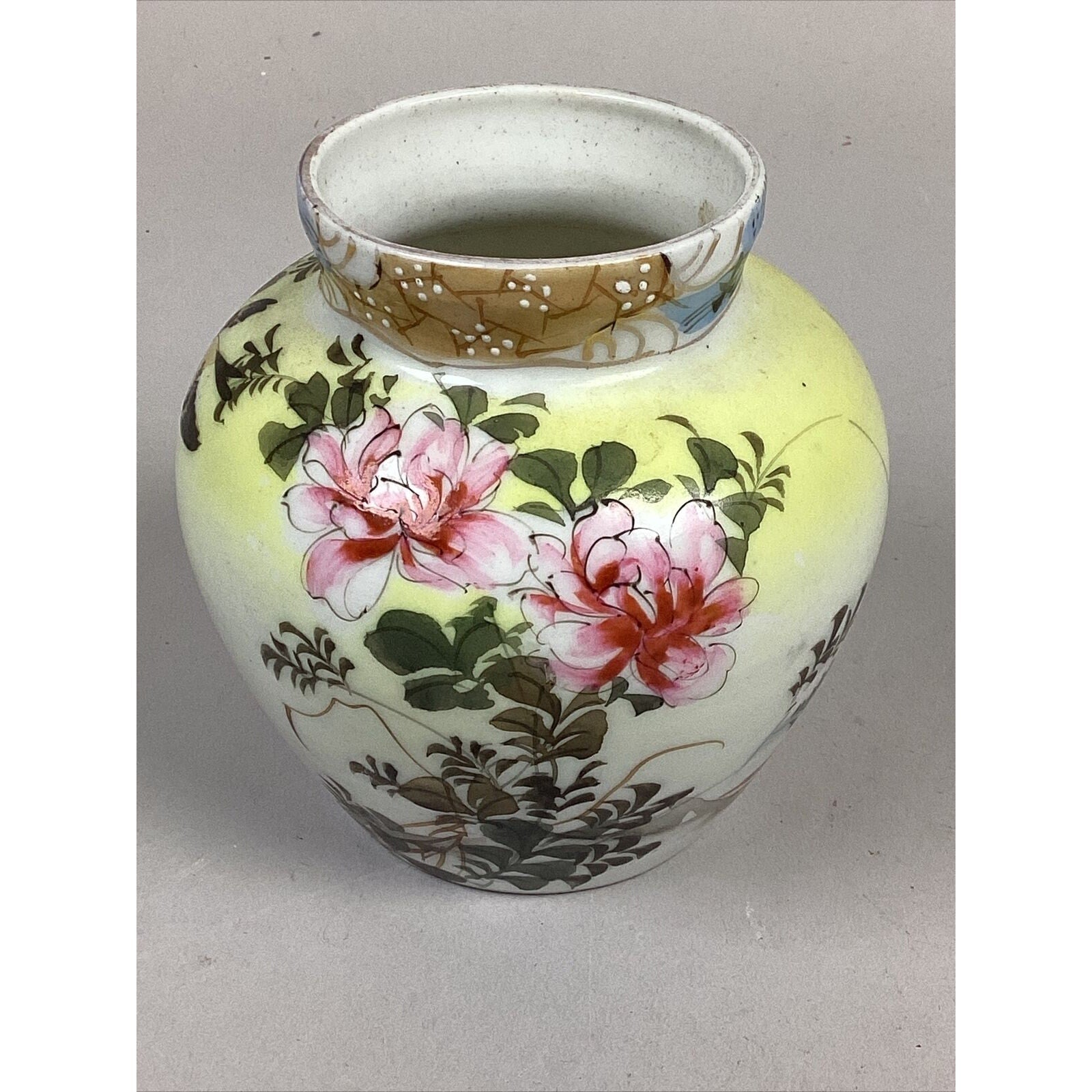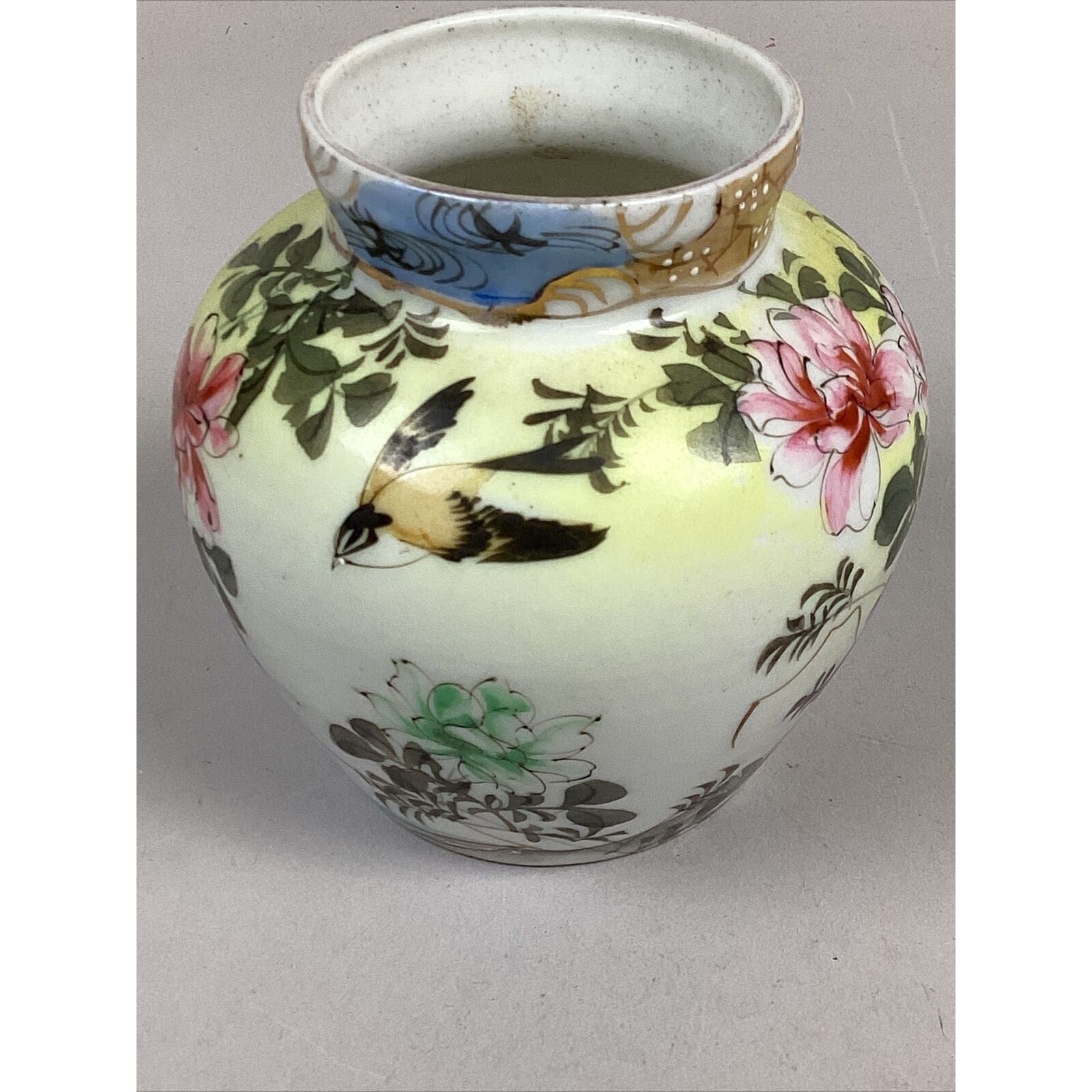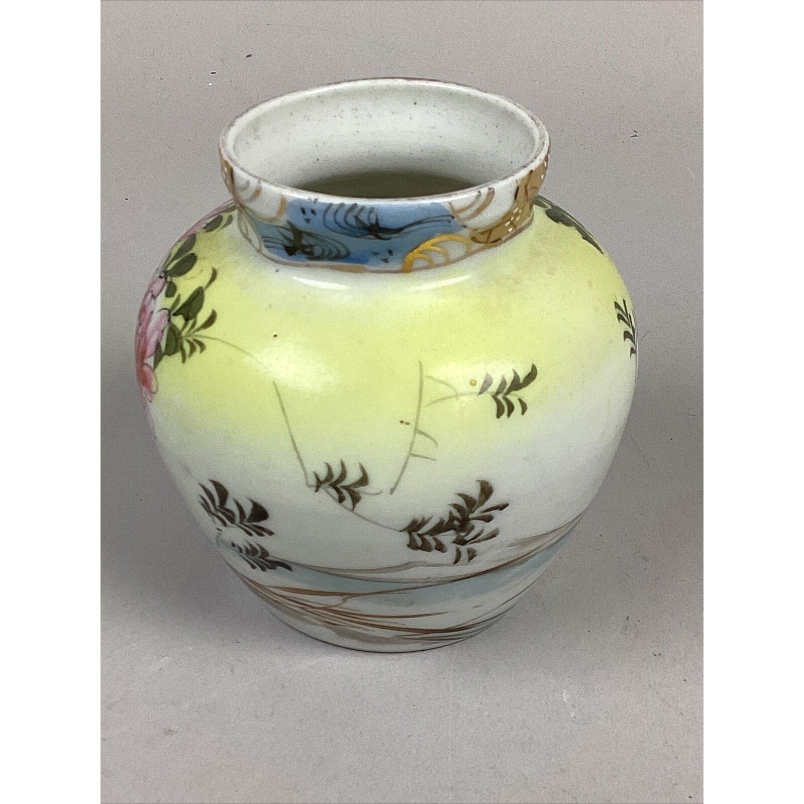 Vintage Hand Painted Floral Japanese Porcelain Vase - 4.25”