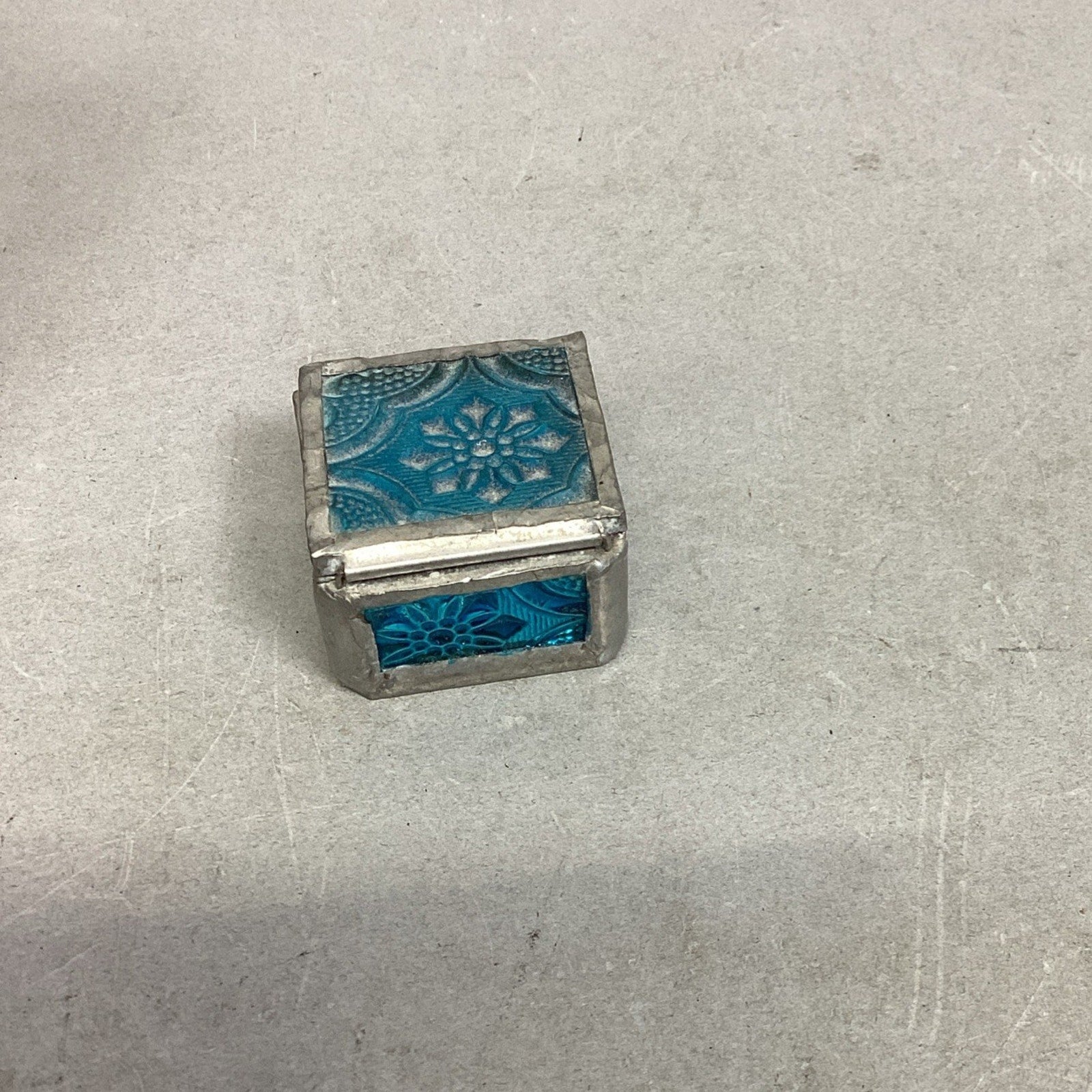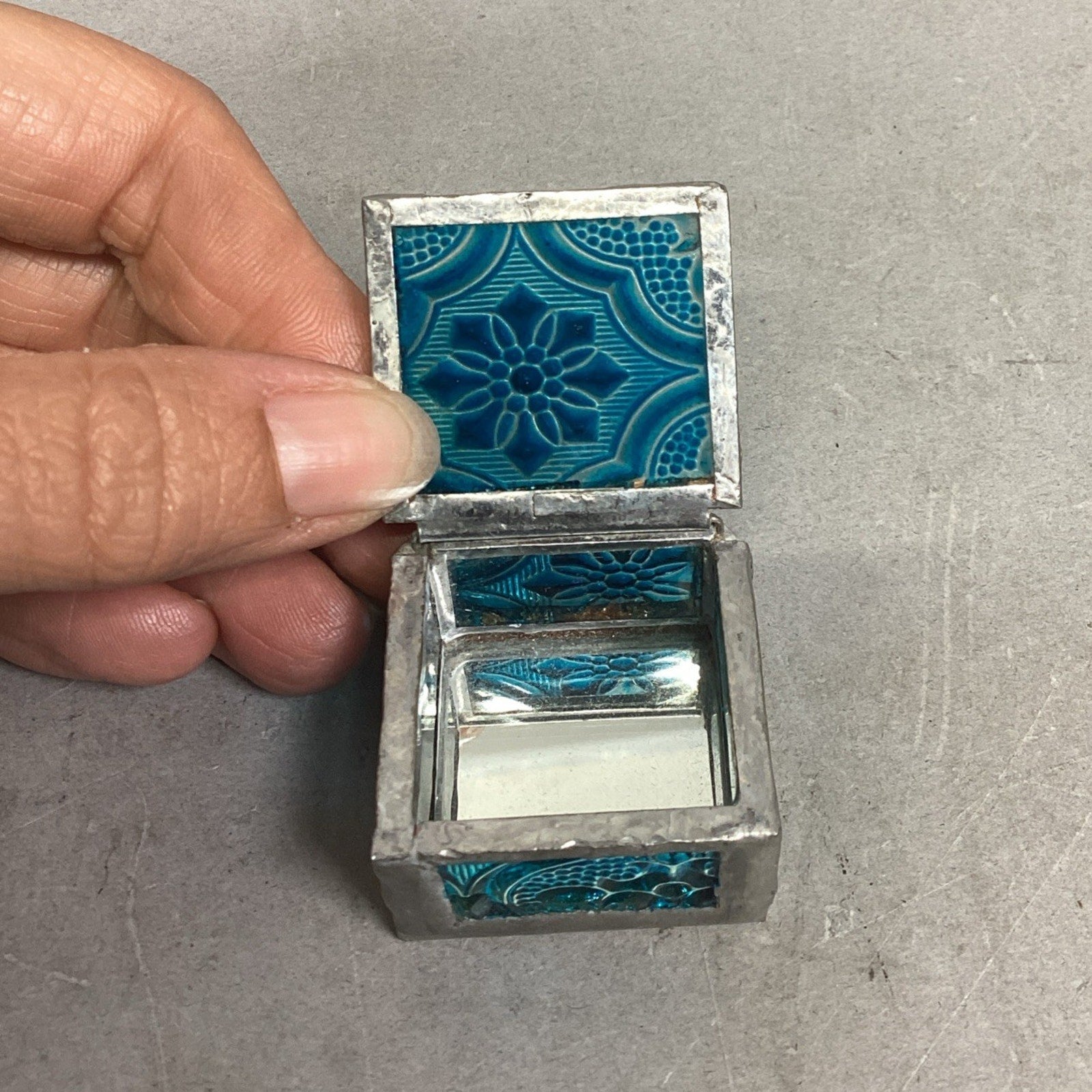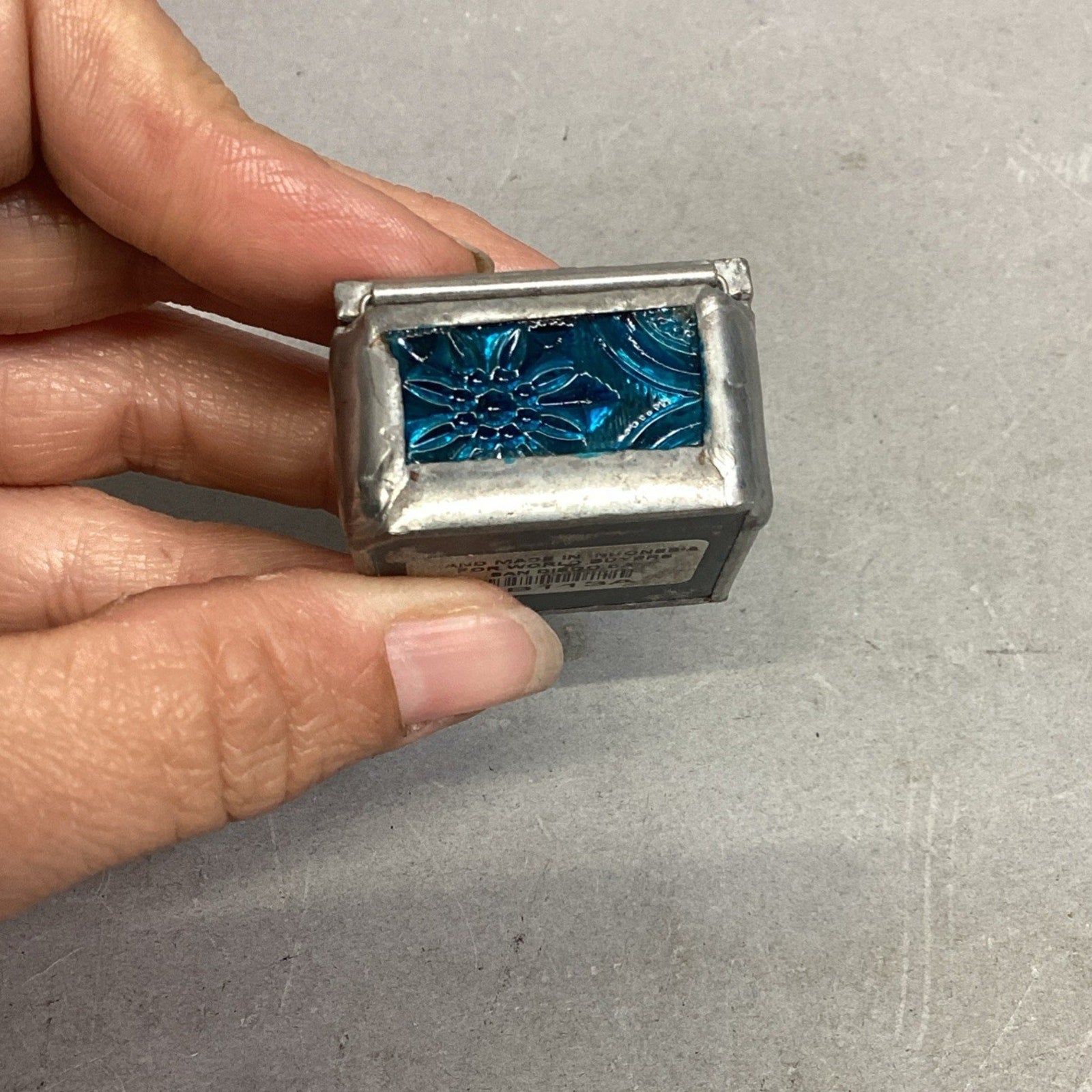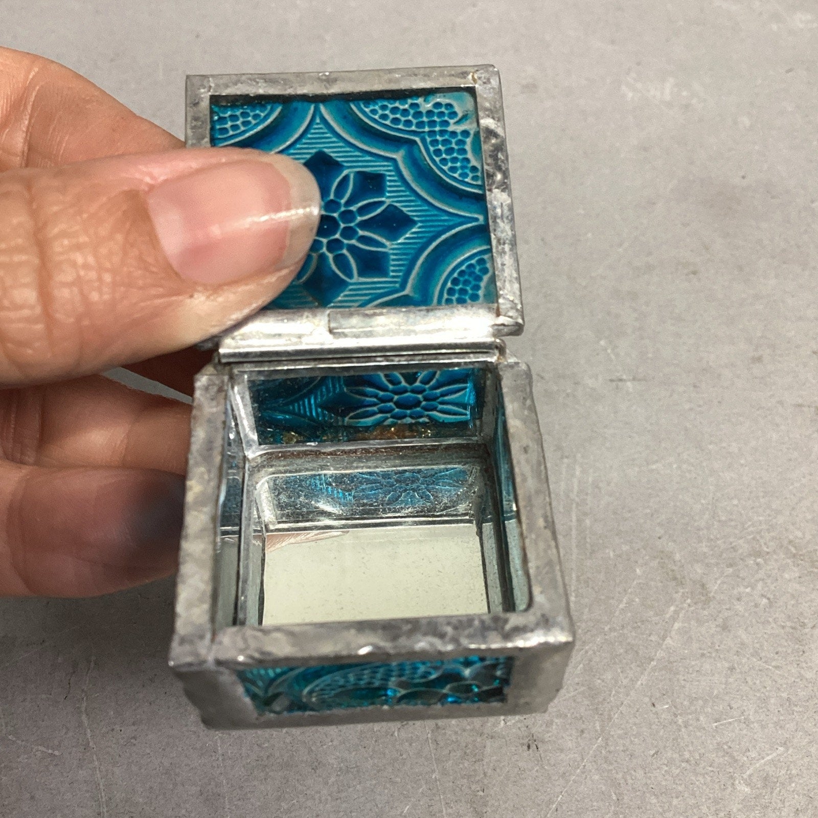 Vintage Handmade Blue Floral Stained Glass Trinket Box - 1.25”D - Indonesia