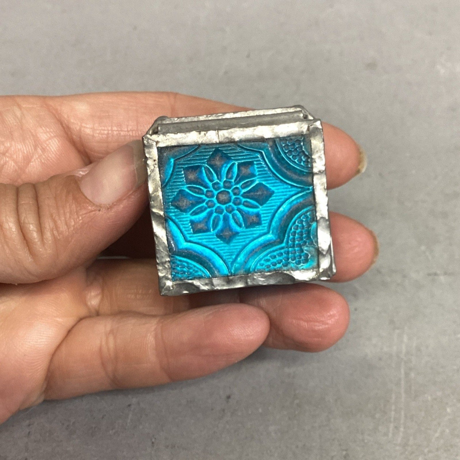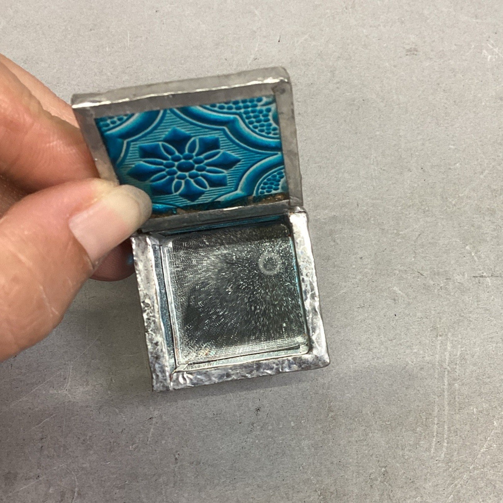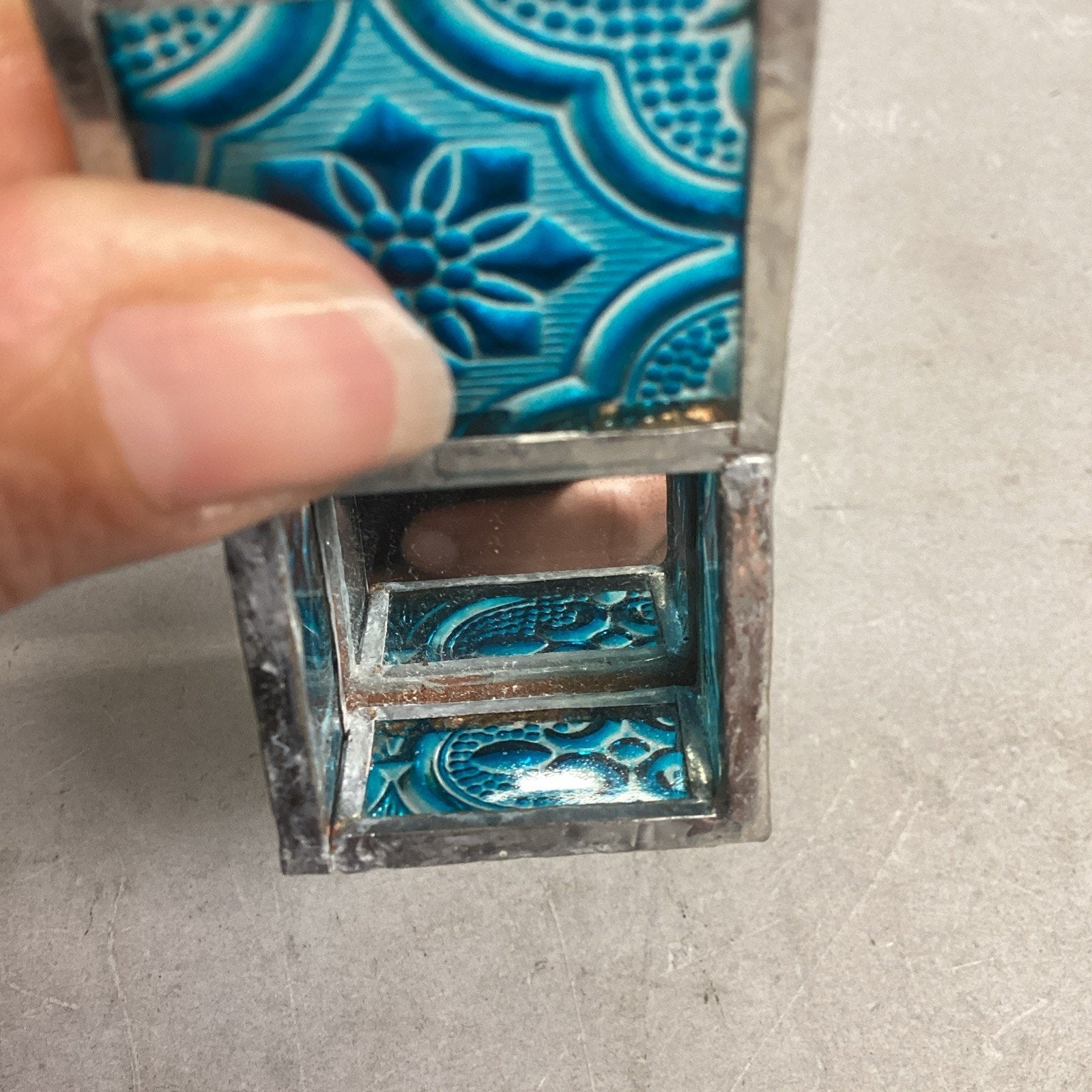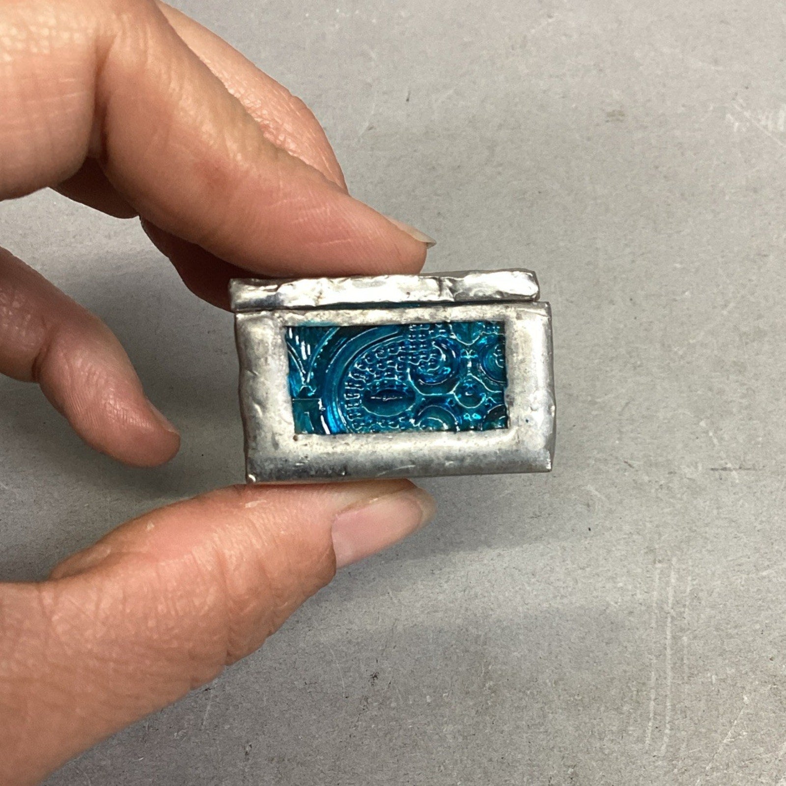 Vintage Handmade Blue Floral Stained Glass Trinket Box - 1.25”D - Indonesia
