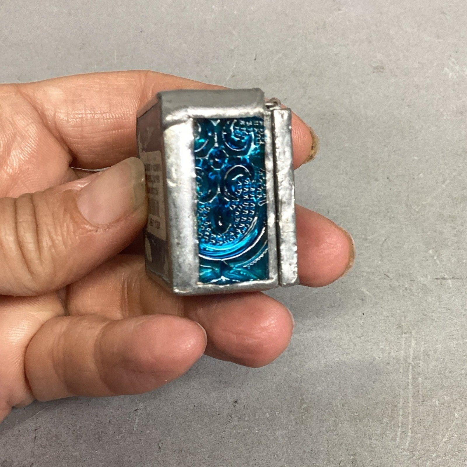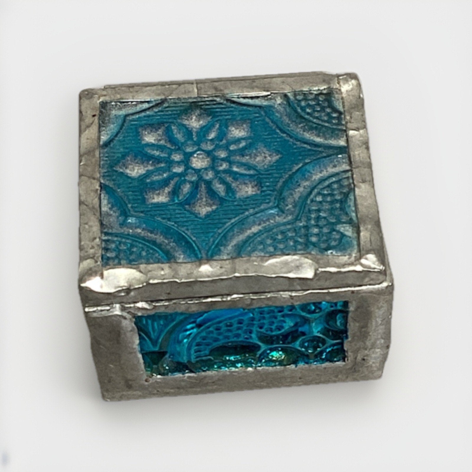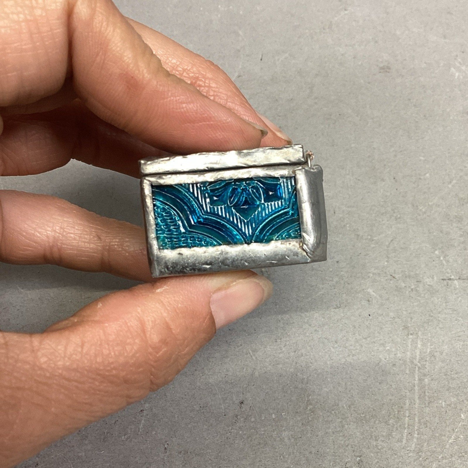 Vintage Handmade Blue Floral Stained Glass Trinket Box - 1.25”D - Indonesia In good used condition. Small trinket or ring holder.