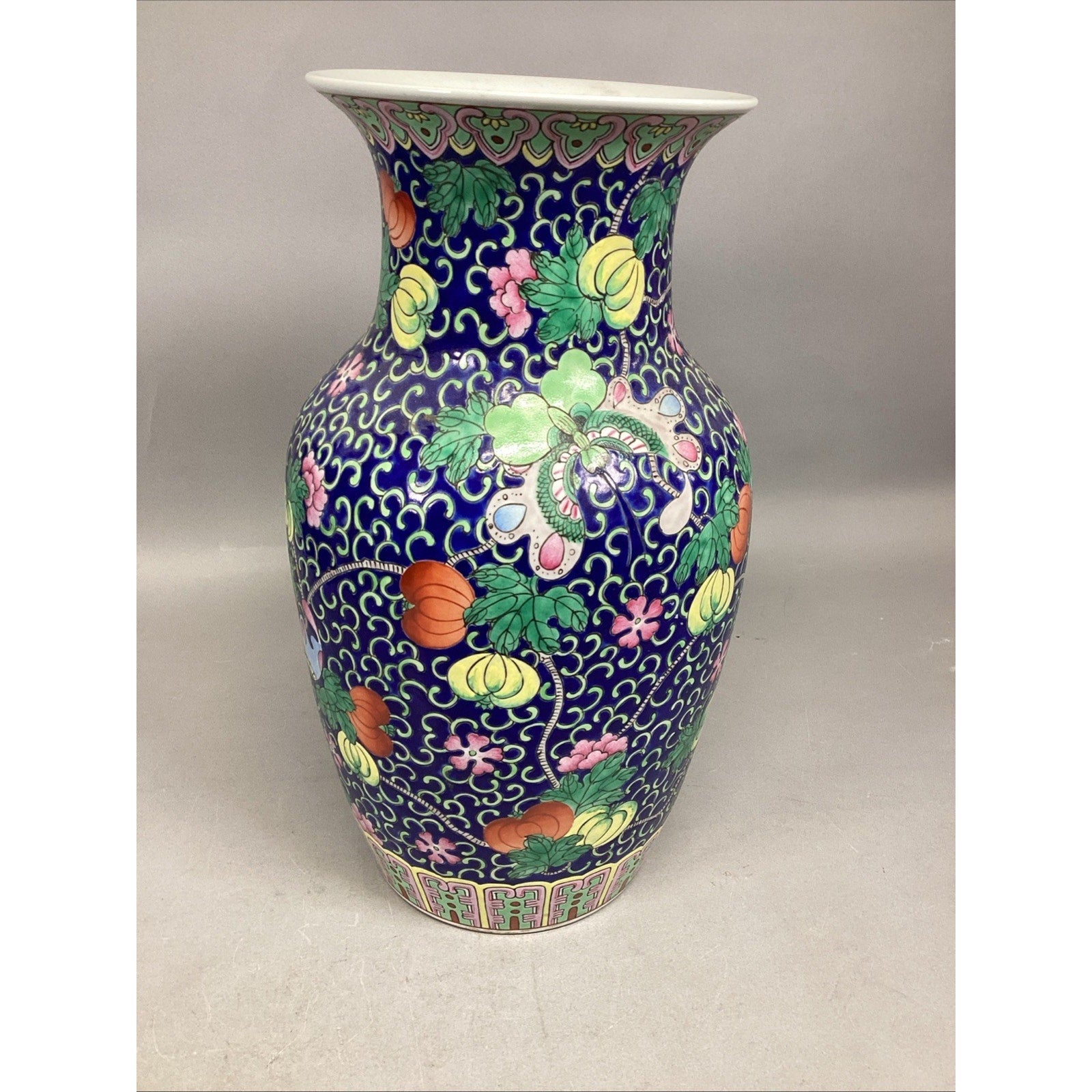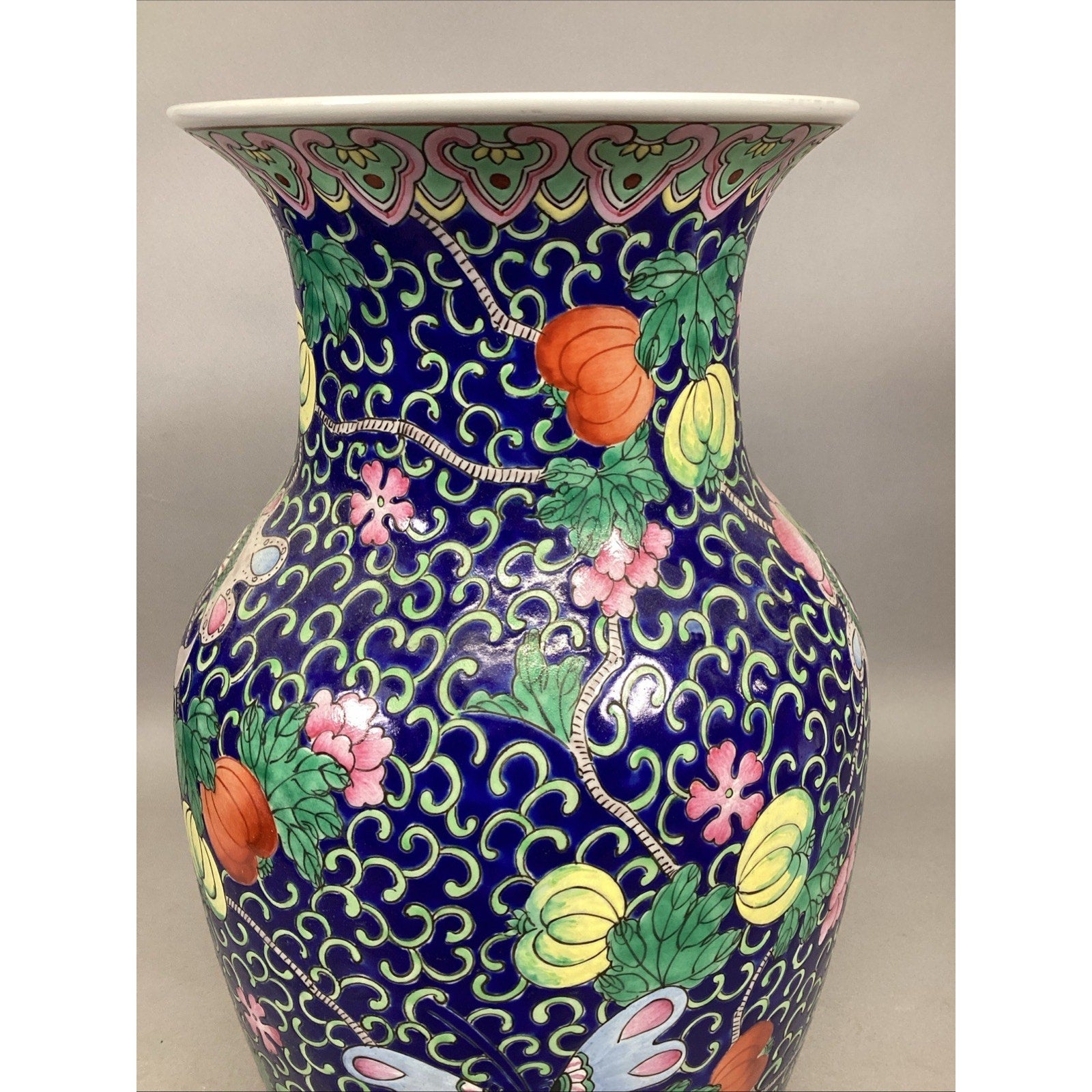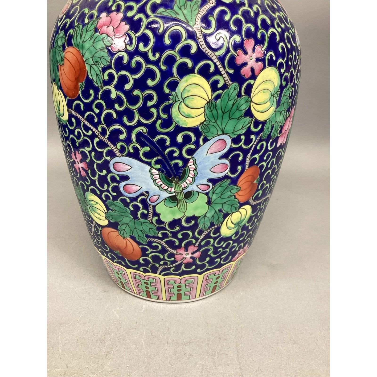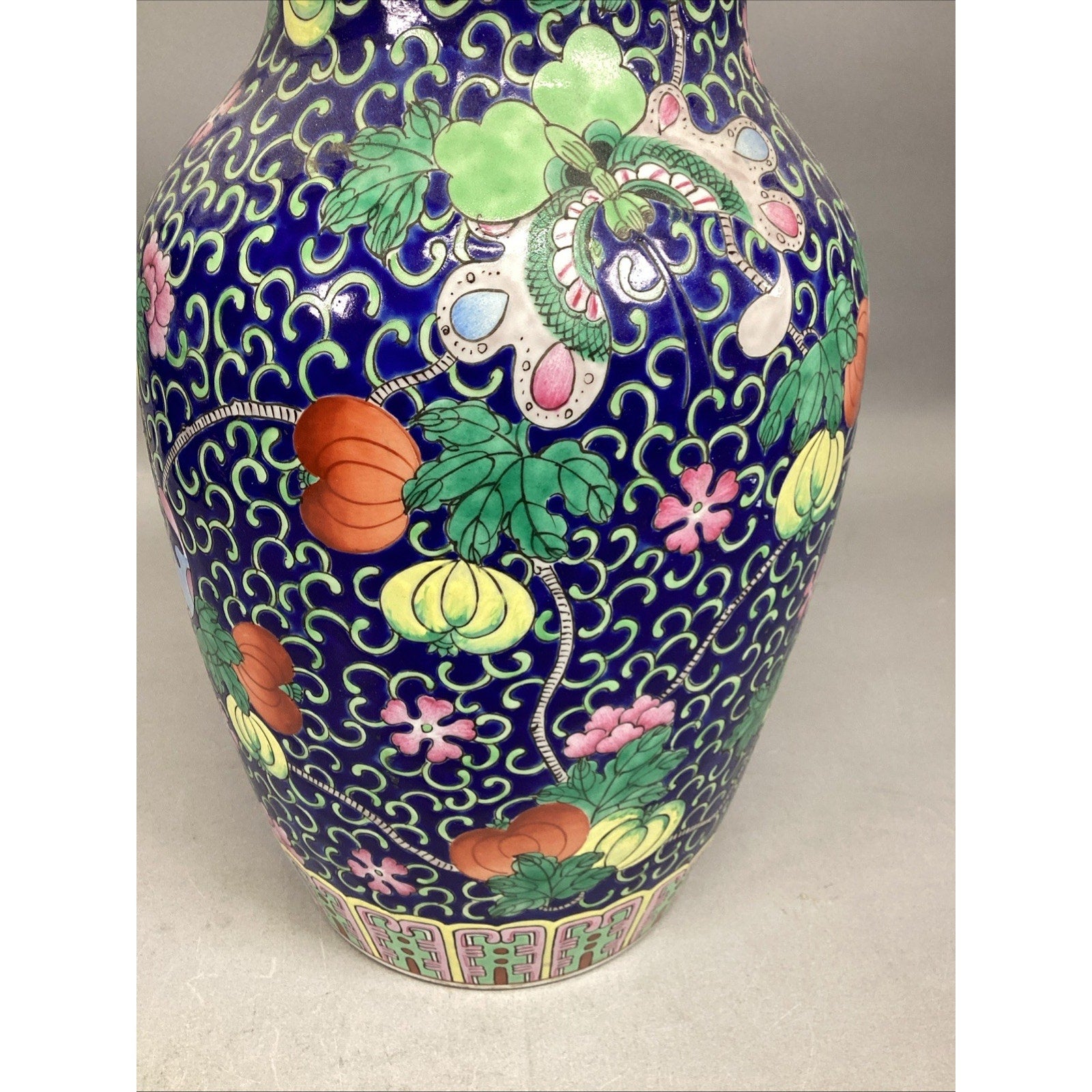 Vintage Japanese Floral And Butterflies Vase - 14.5”H
