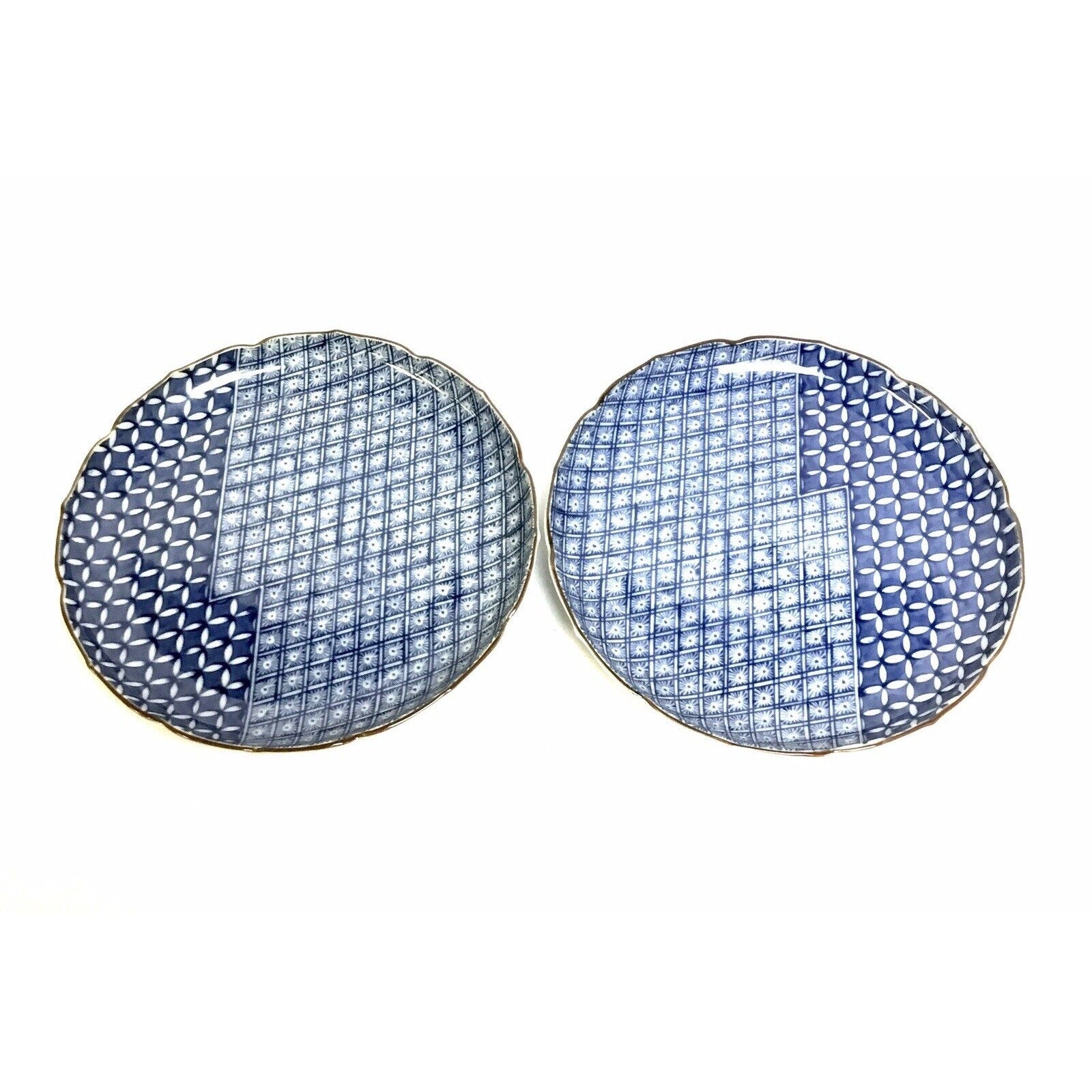 This vintage porcelain dinnerware set is a beautiful addition to any collection. The blue and white design with a brown rim is a classic Japanese style that is sure to impress. The set includes 2 plates made in Japan by Kozan Gama Kiln.