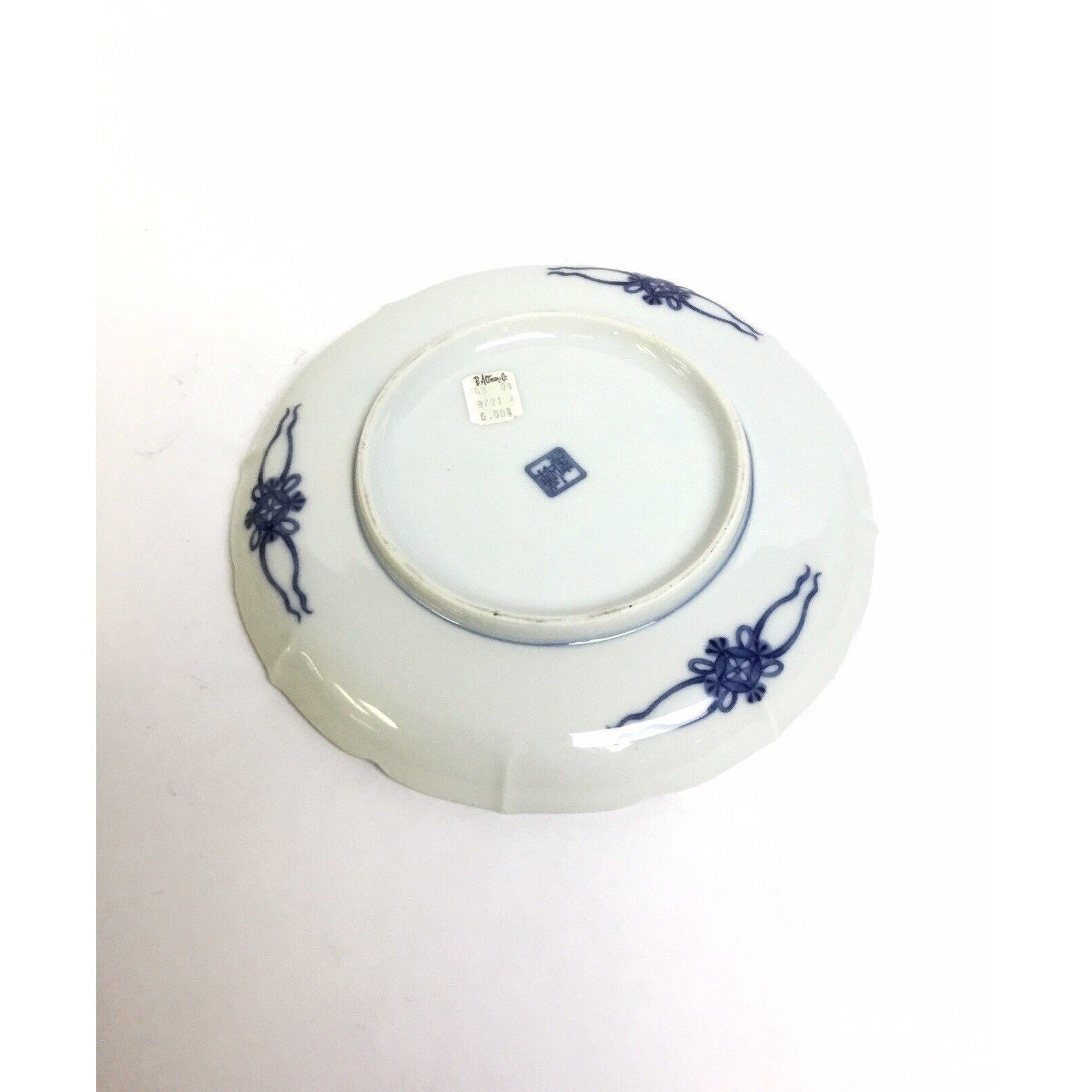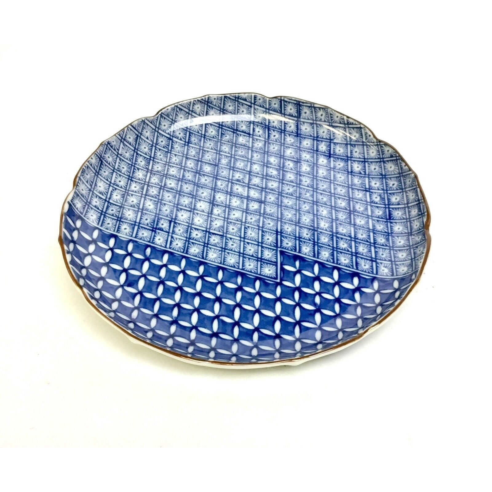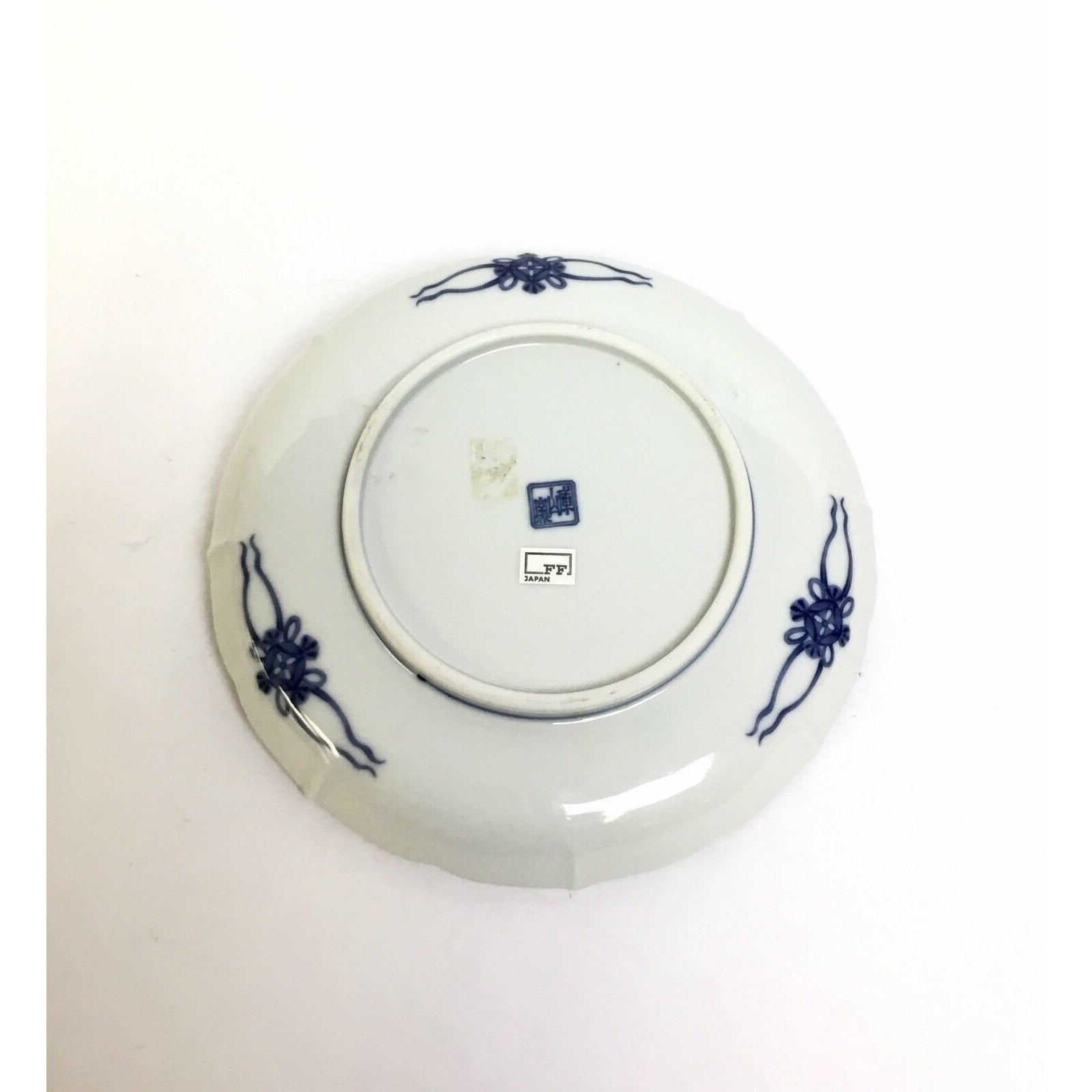 Vintage Kozan Gama Kiln Blue White Brown Rim Porcelain Plate Bowls