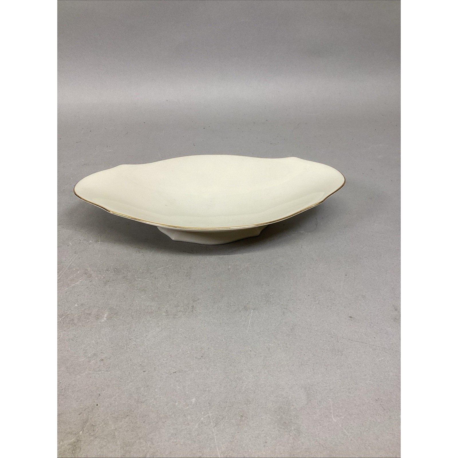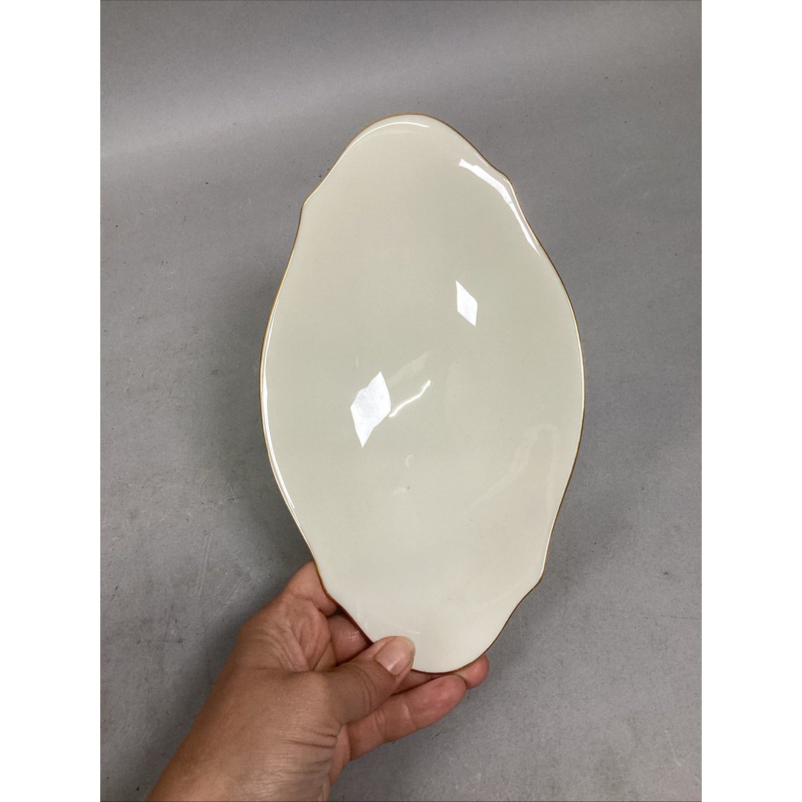 2. Oval candy nut dish with gold rim. Good condition with no cracks or chips. Measures 9x5.25x1.75”