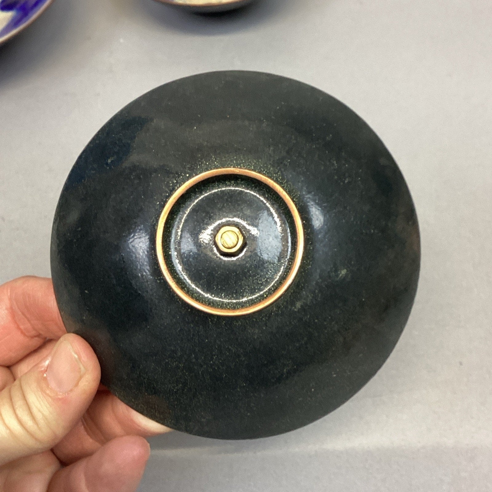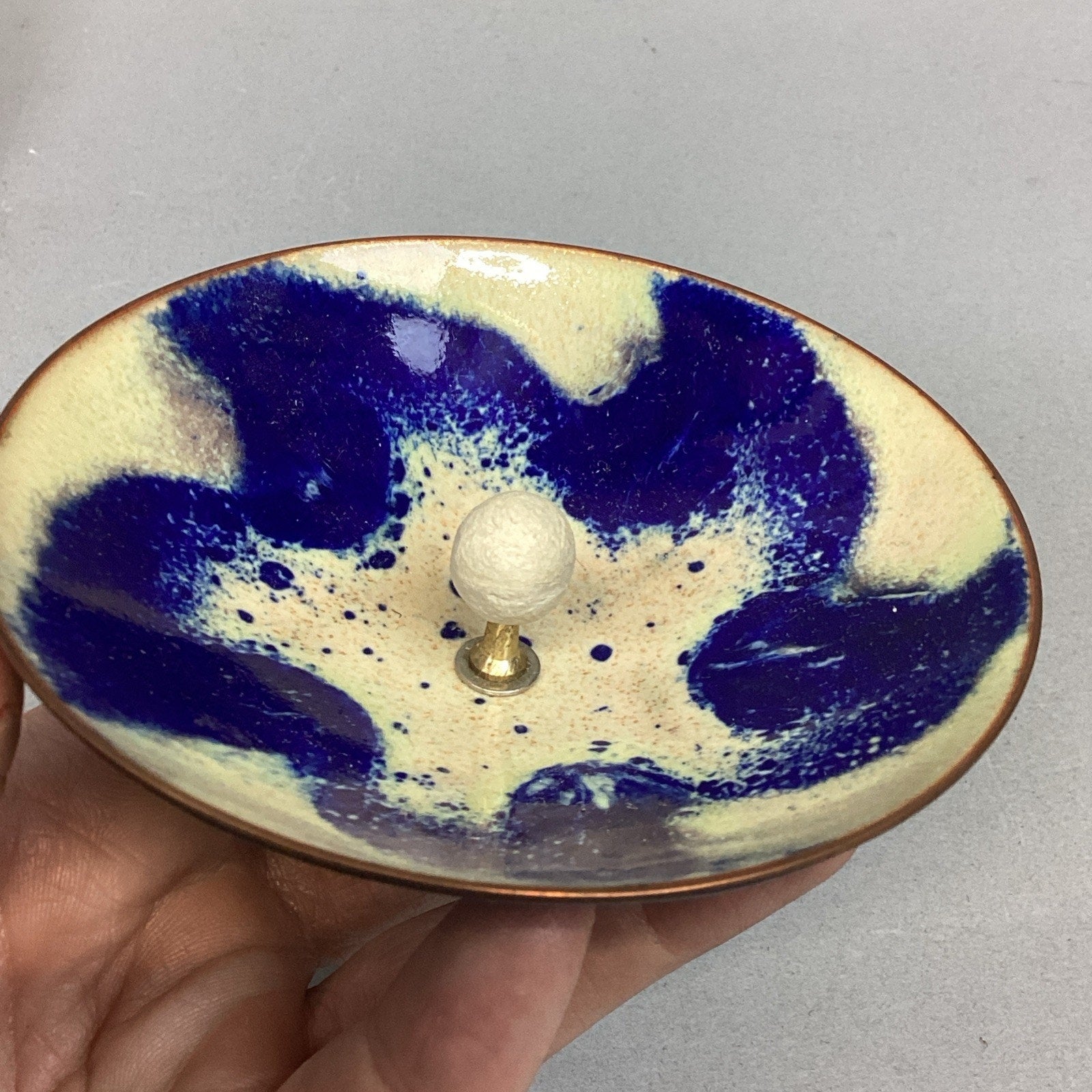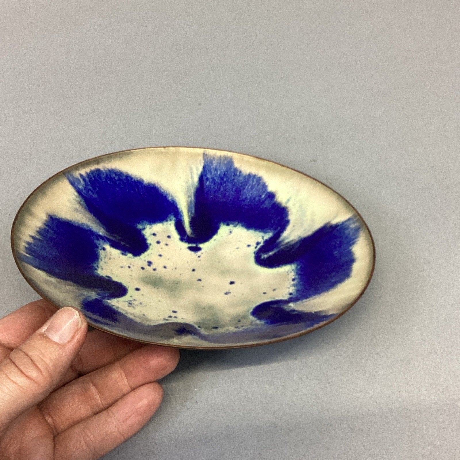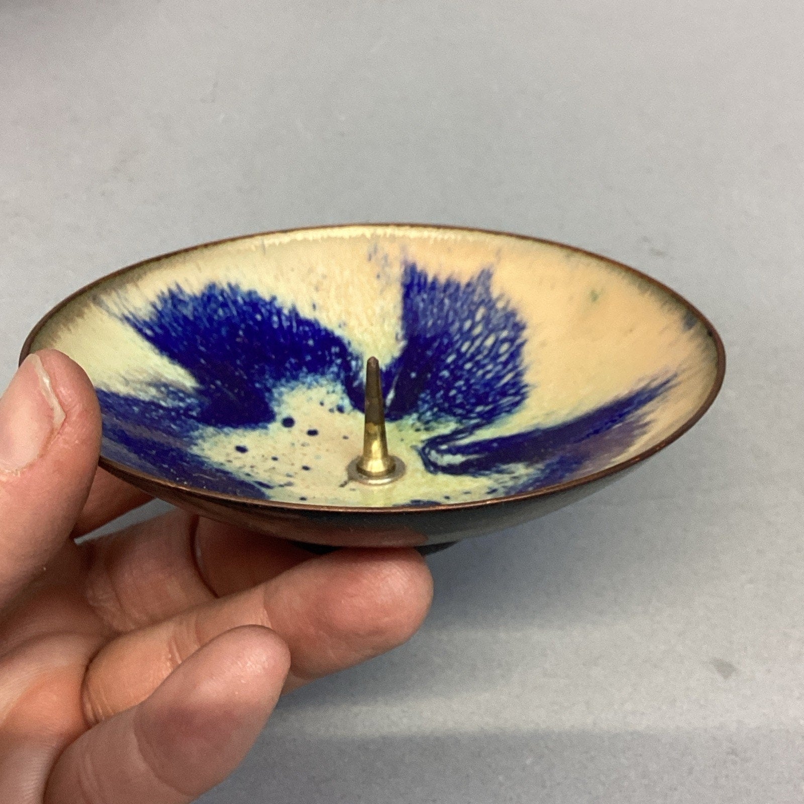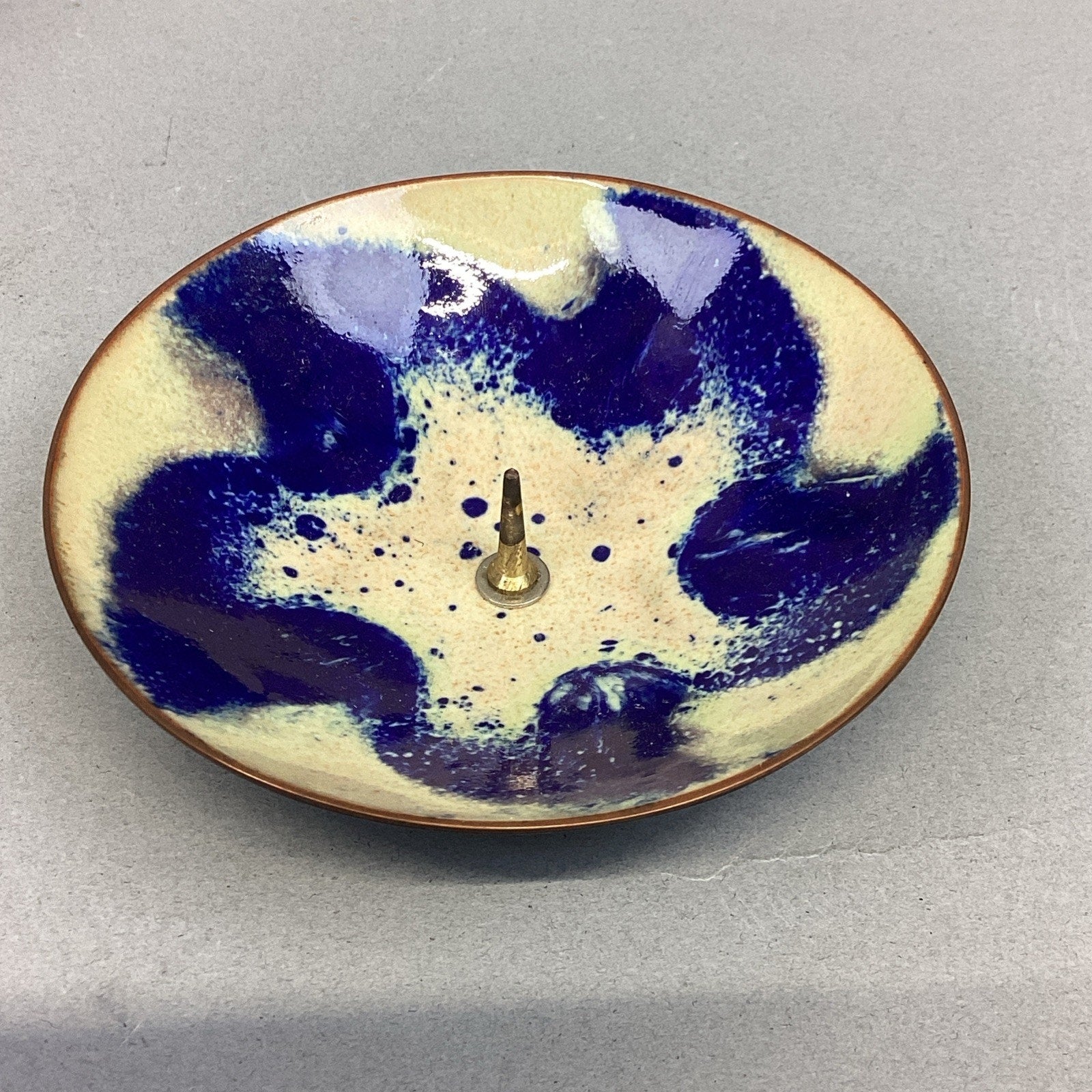 Vintage MCM Copper Enameled Dish & 2 Candle Holders By E. Krage - Norway