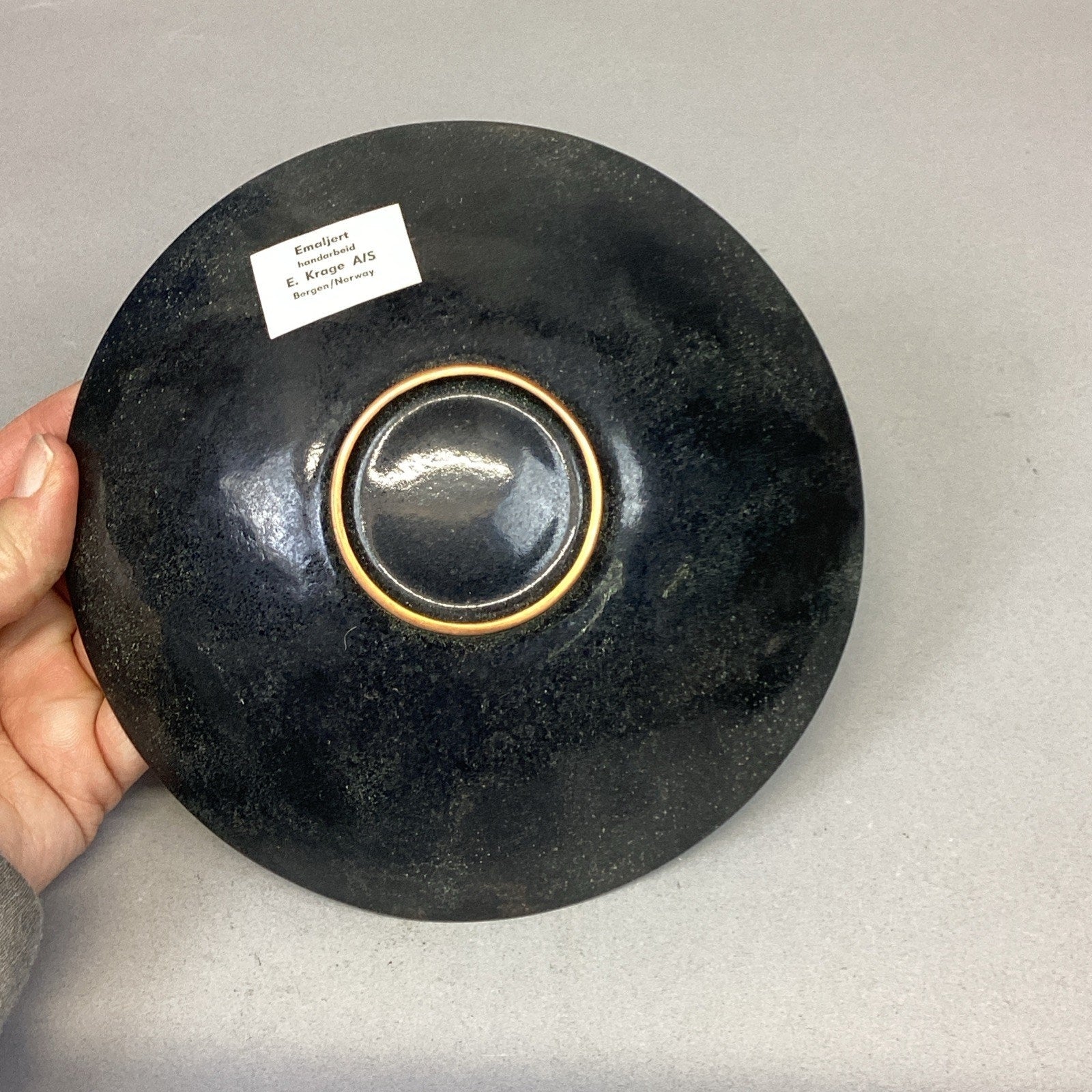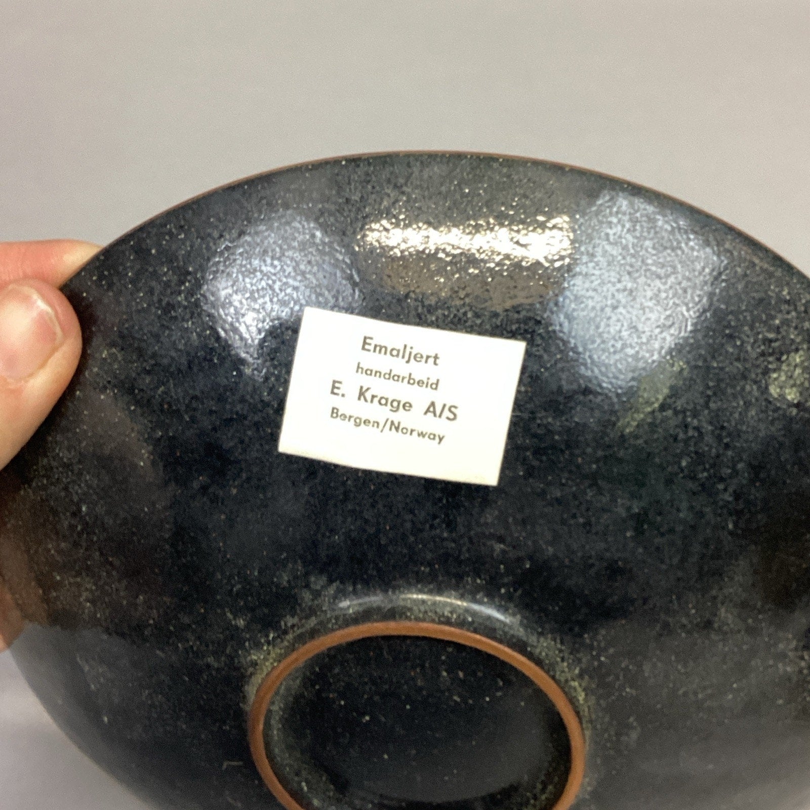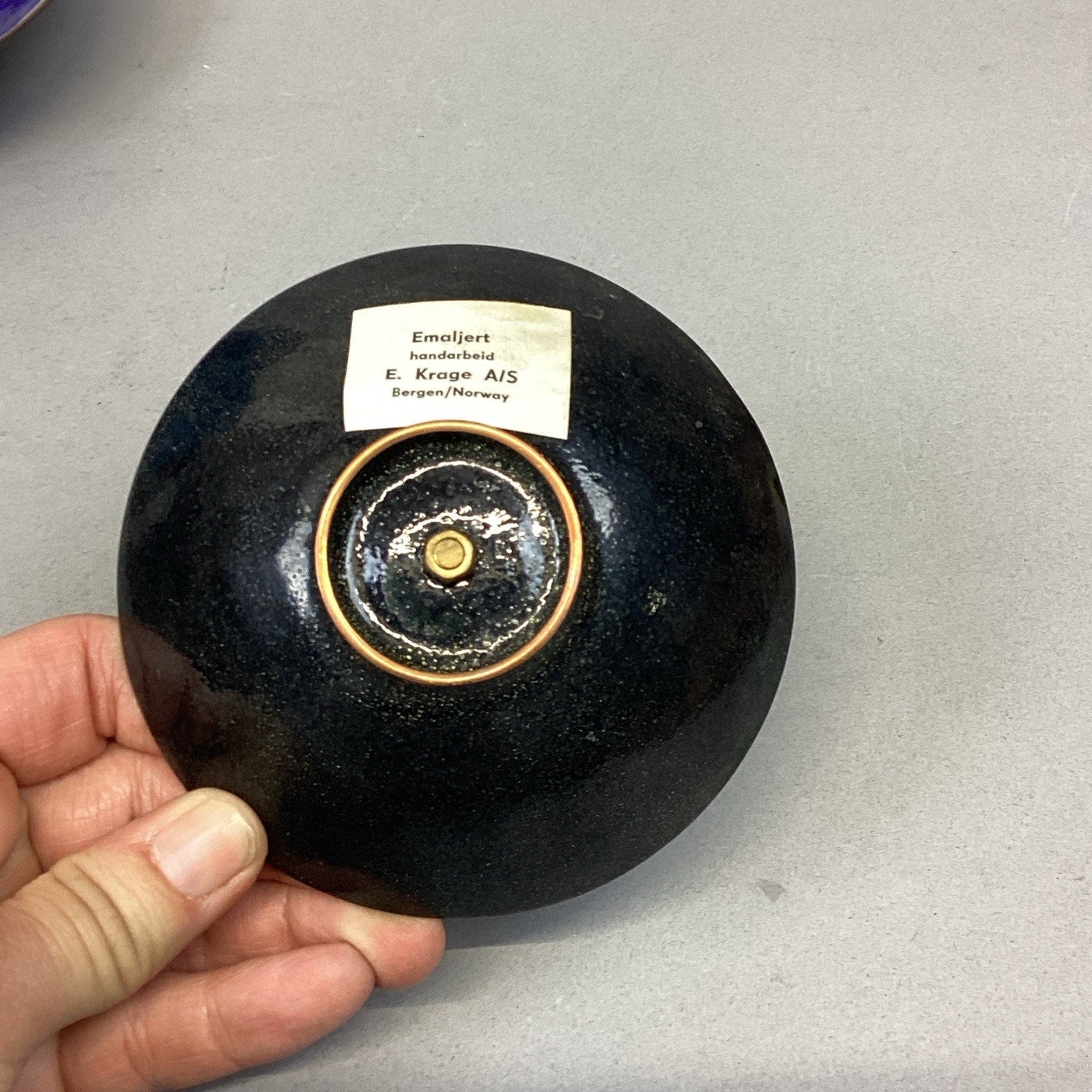 Vintage MCM Copper Enameled Dish & 2 Candle Holders By E. Krage - Norway.