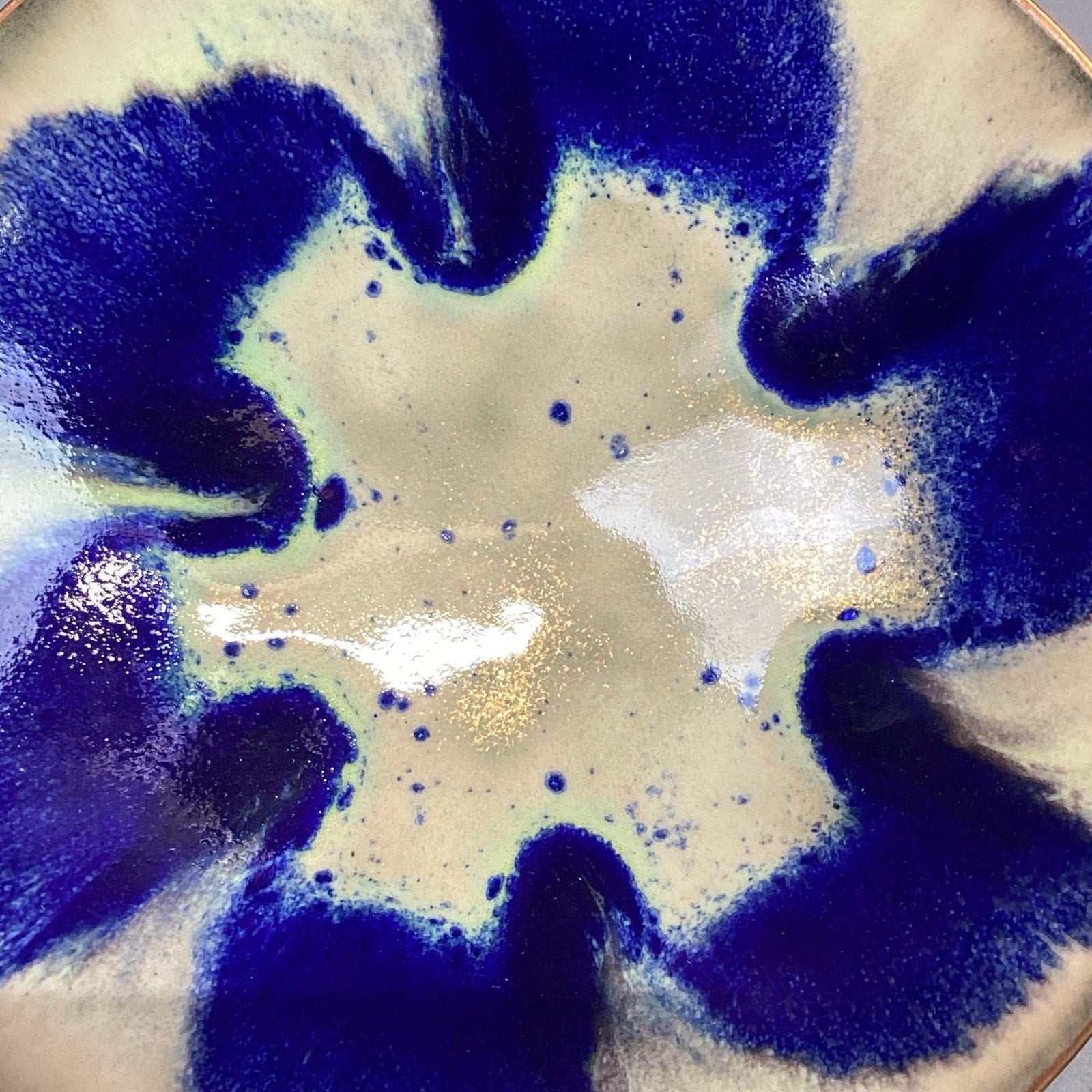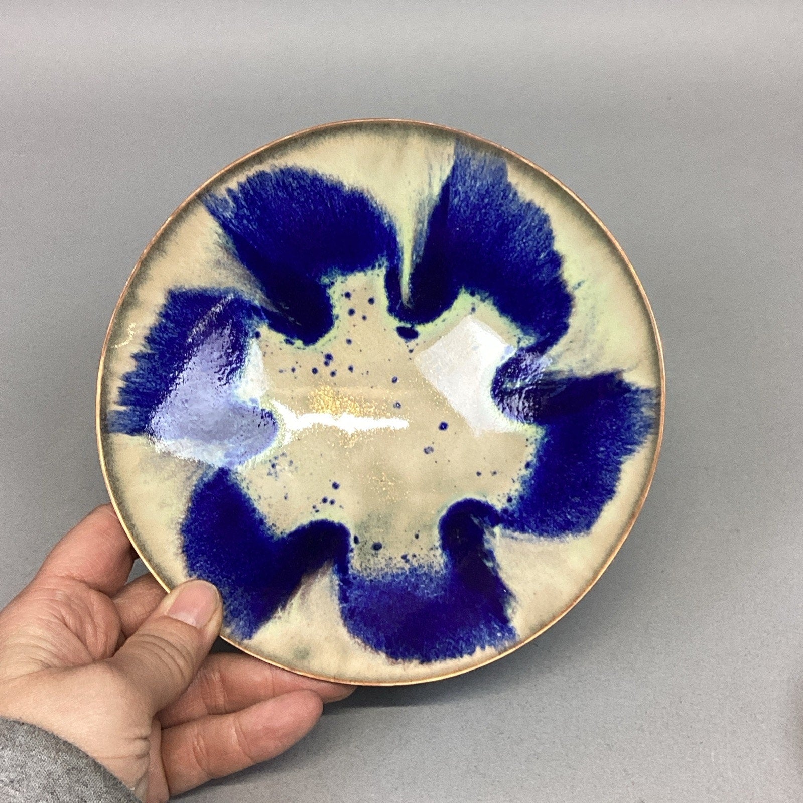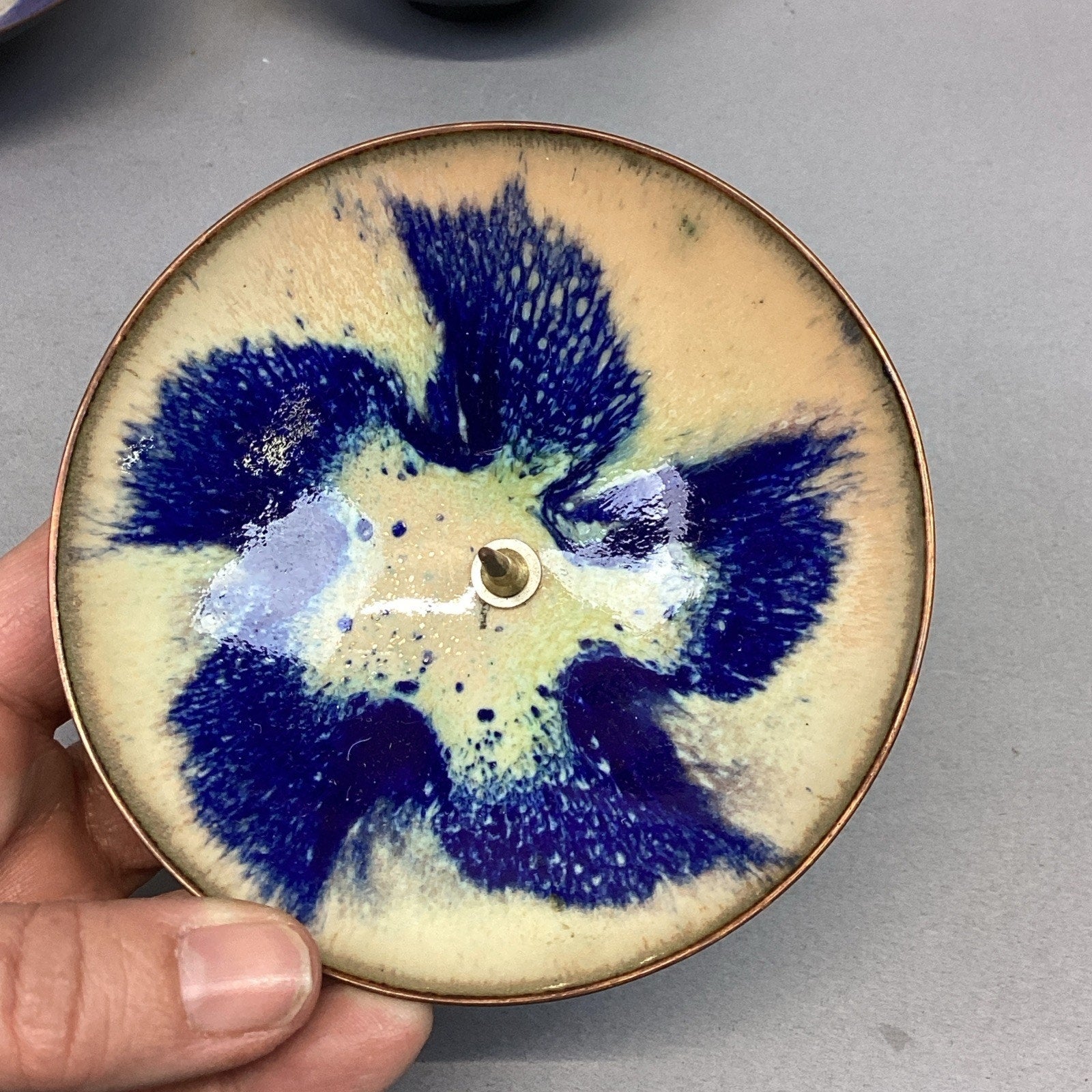 Vintage MCM Copper Enameled Dish & 2 Candle Holders By E. Krage - Norway.