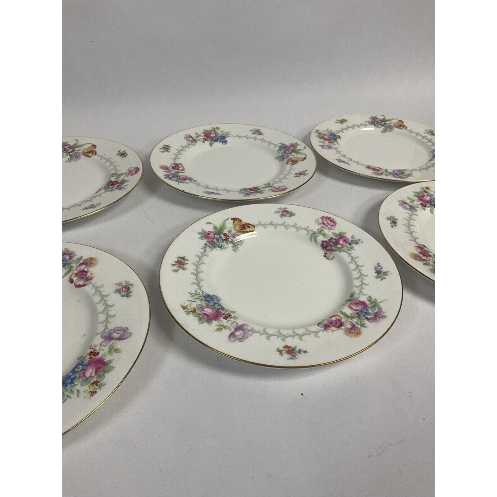 Vintage Minton Berkshire Set Of 6 Plates Bone China England Floral Design Gold