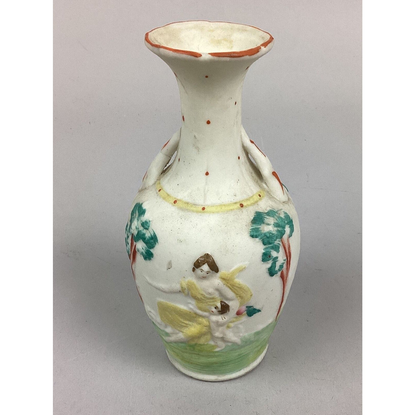 Vintage Mother Son Outdoor Scene Vase - 6”