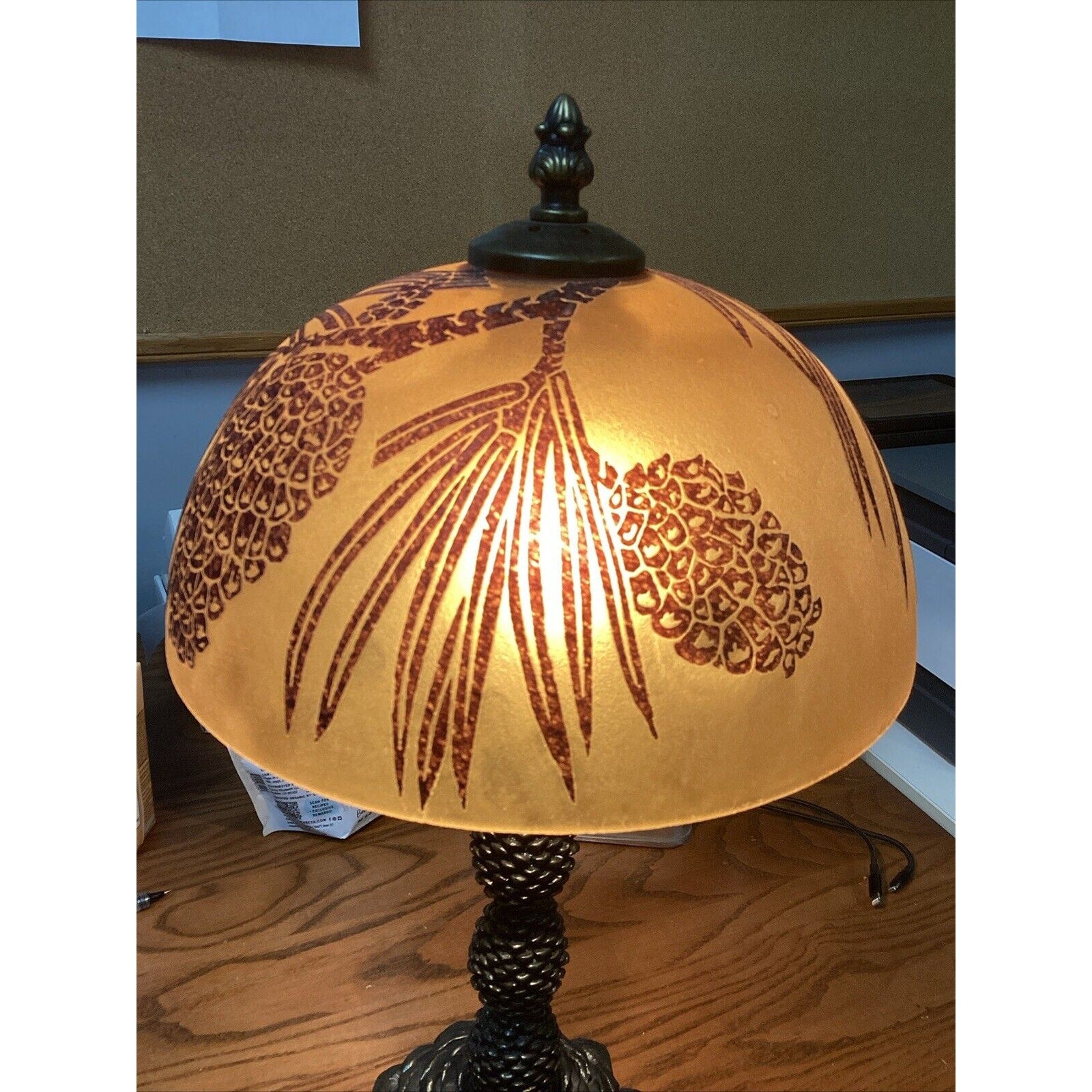 Vintage Pinecone Lamp And Glass Lampshade