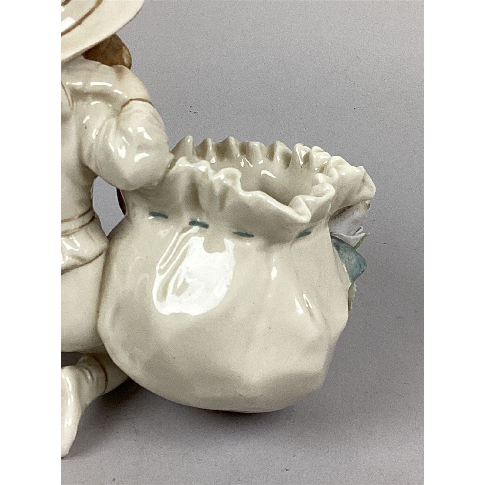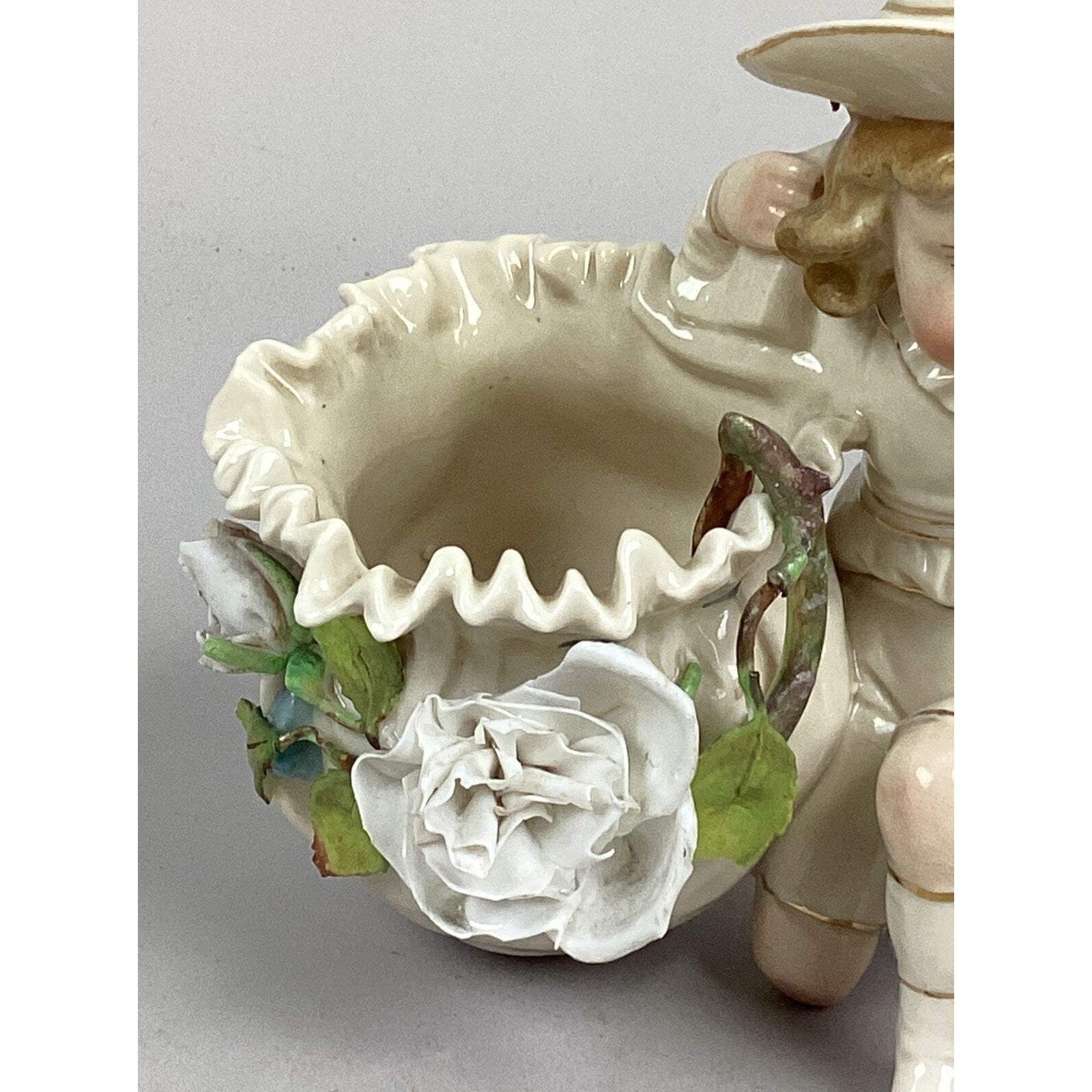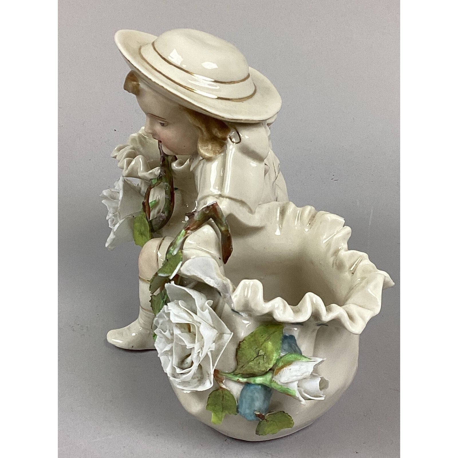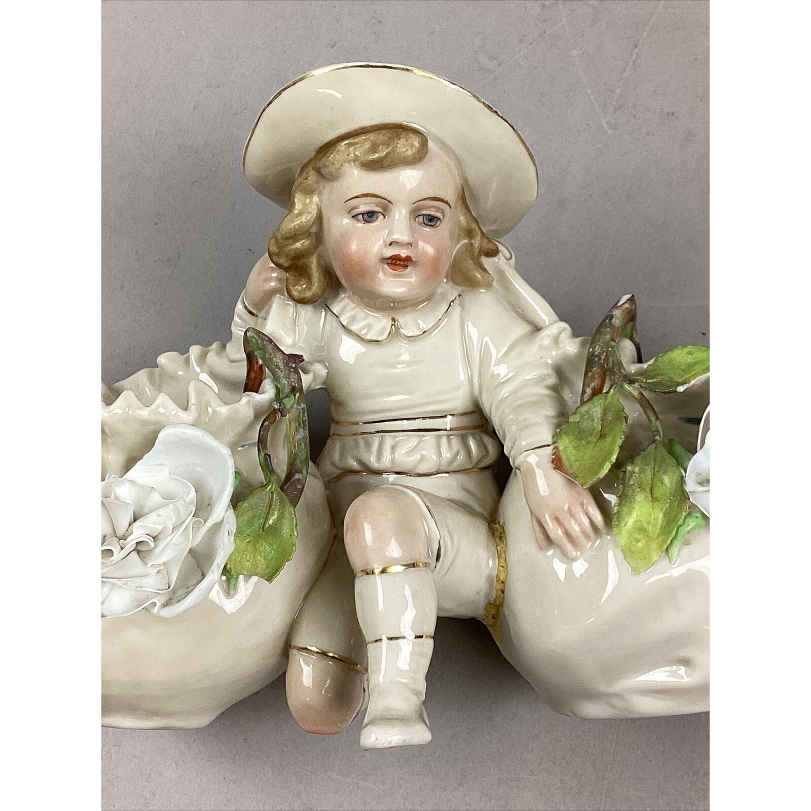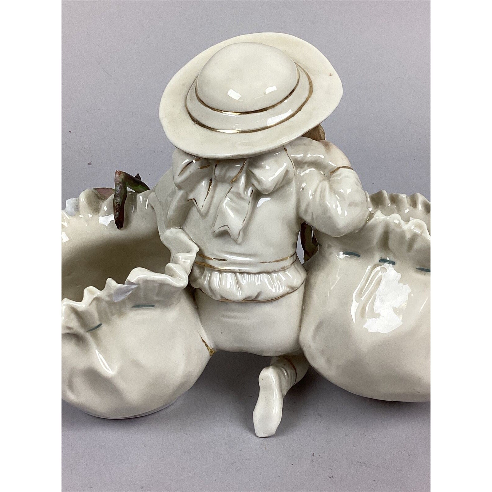 Vintage Porcelain Child Figurine With 2 Flower Vases - 6”