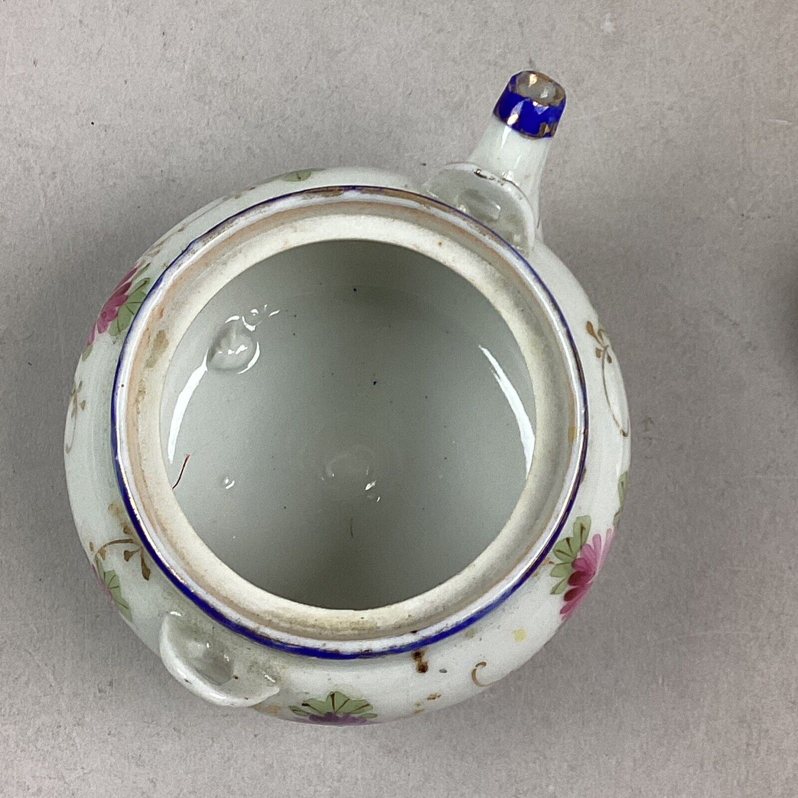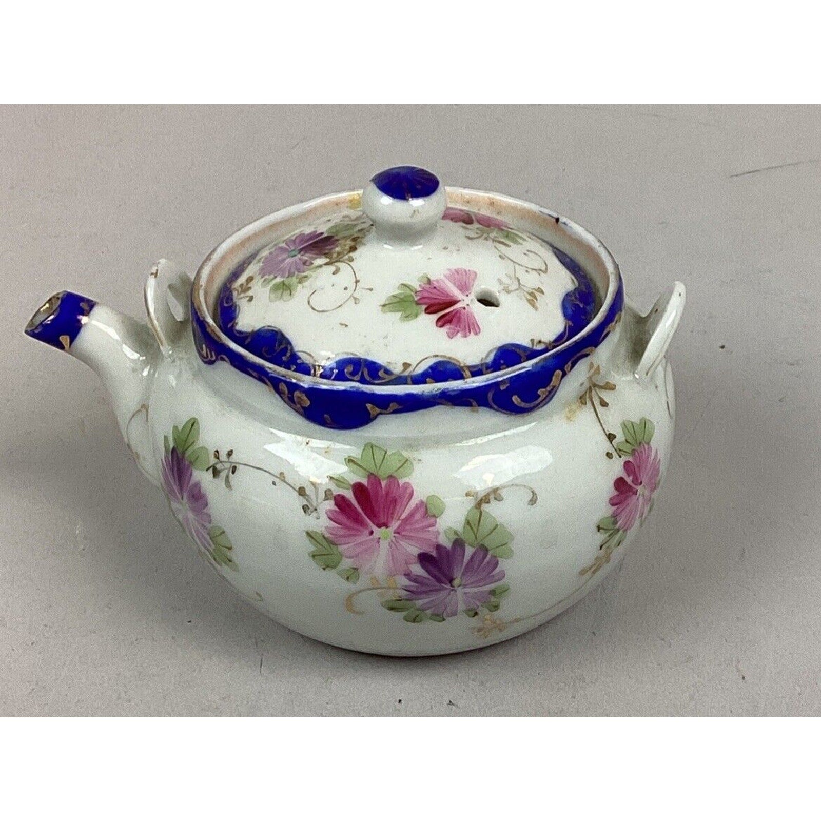 Vintage Porcelain Hand Painted Floral Teapot - 3”Hx4”L