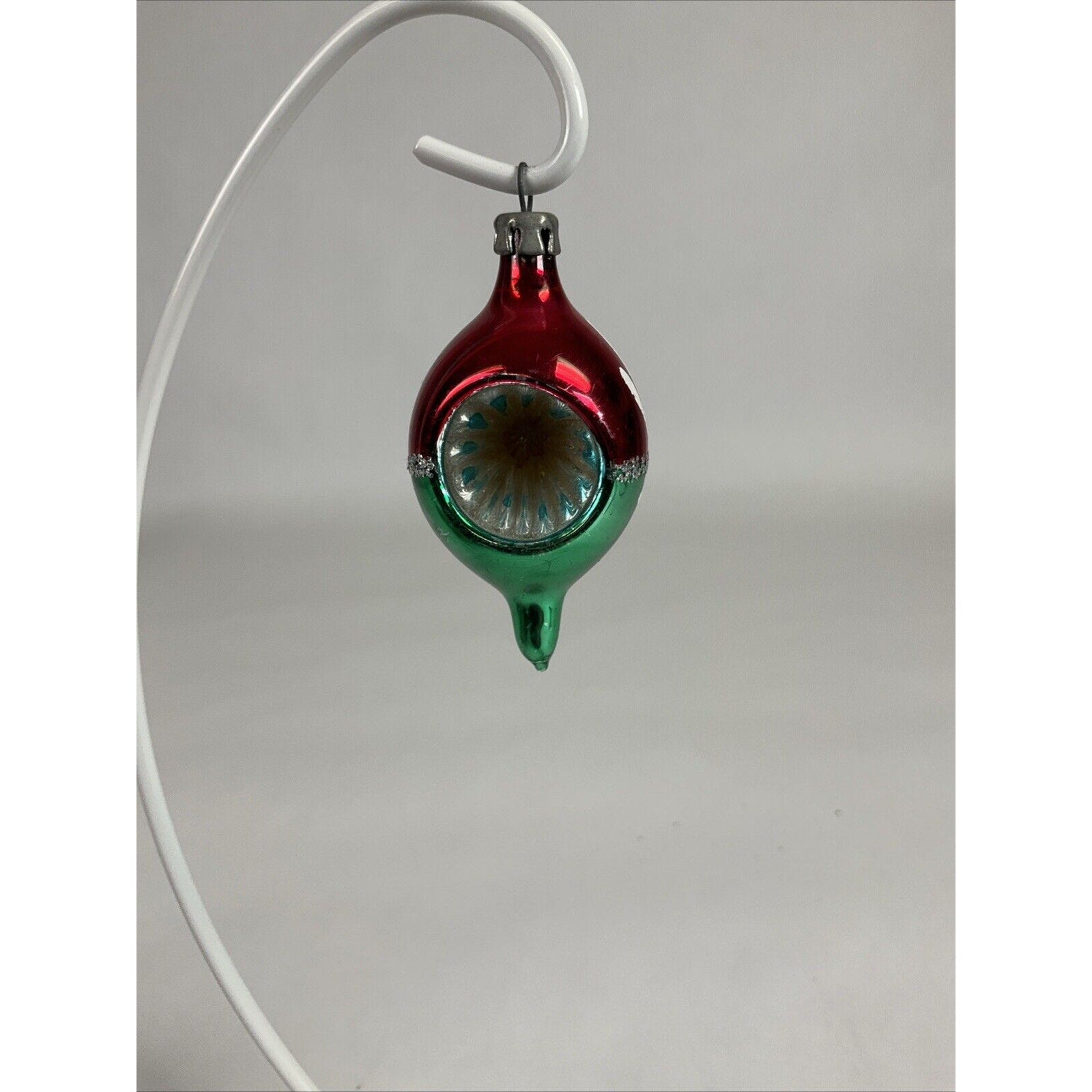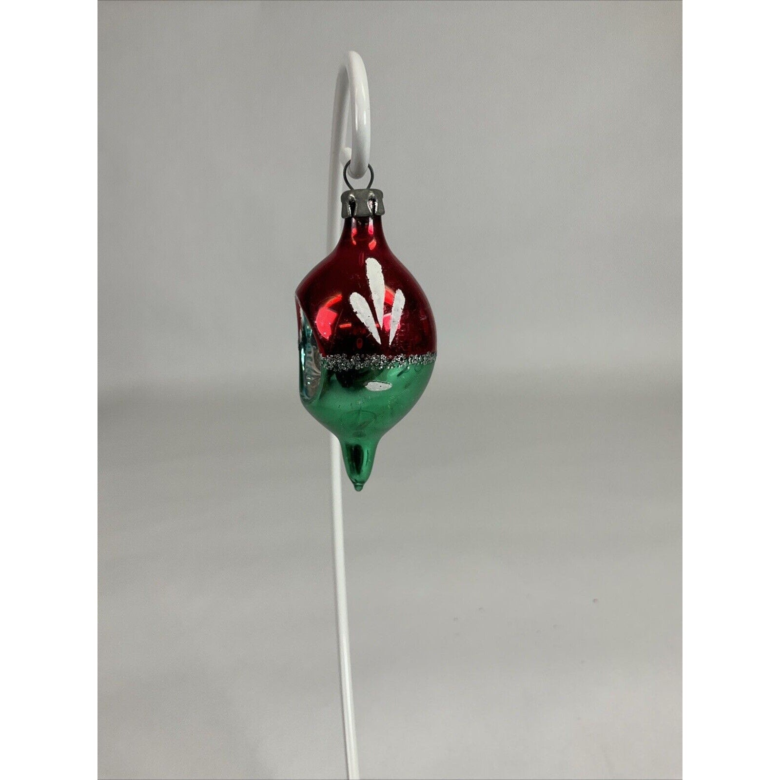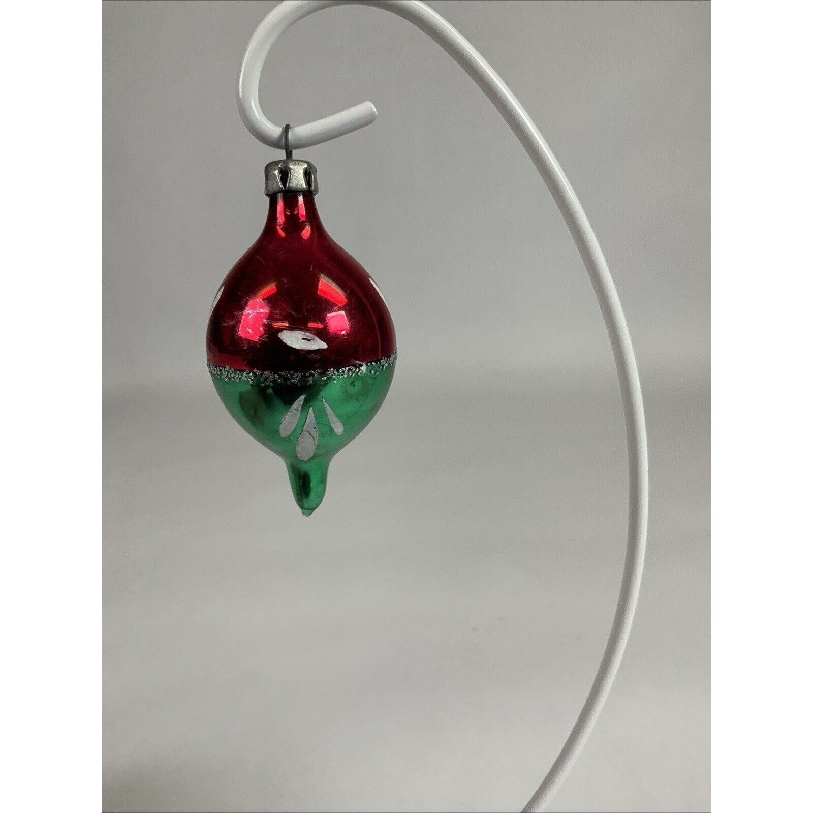 Vintage Red And Green Icicle Indented Hand Painted Christmas Ornament