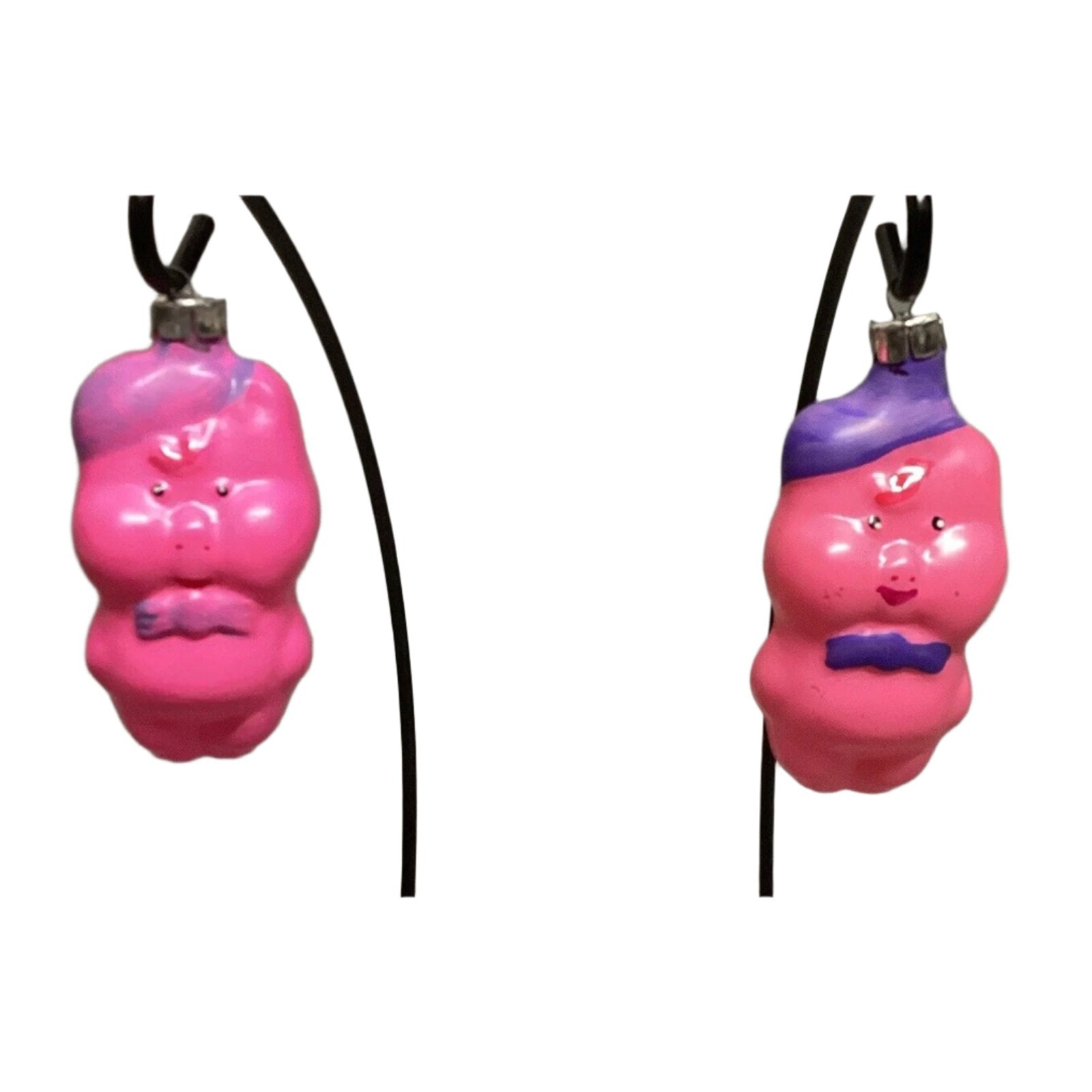 Vintage Russian Glass Christmas Ornaments 2 Pink Little Pigs