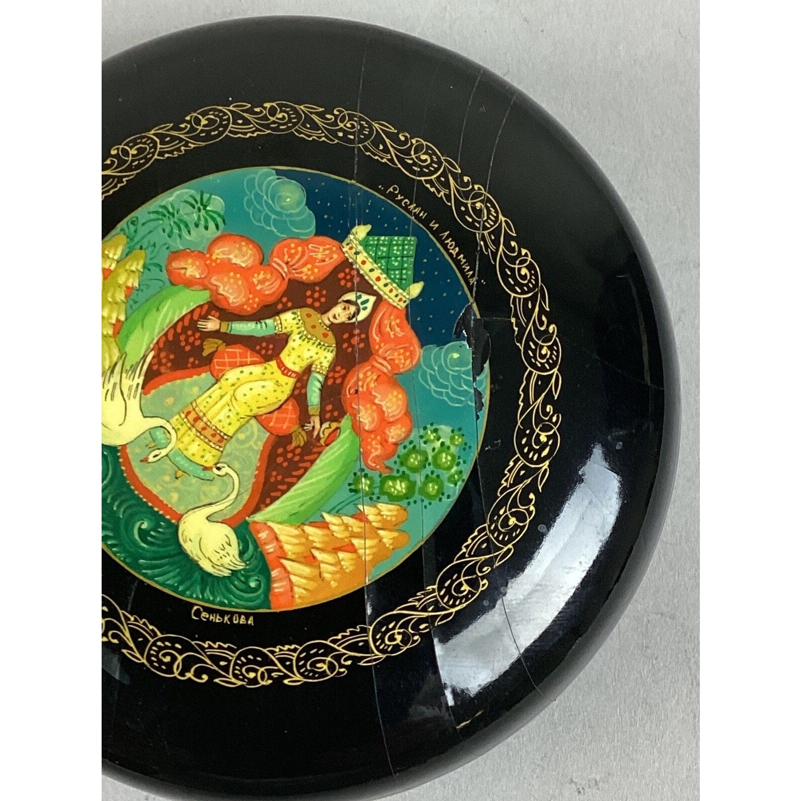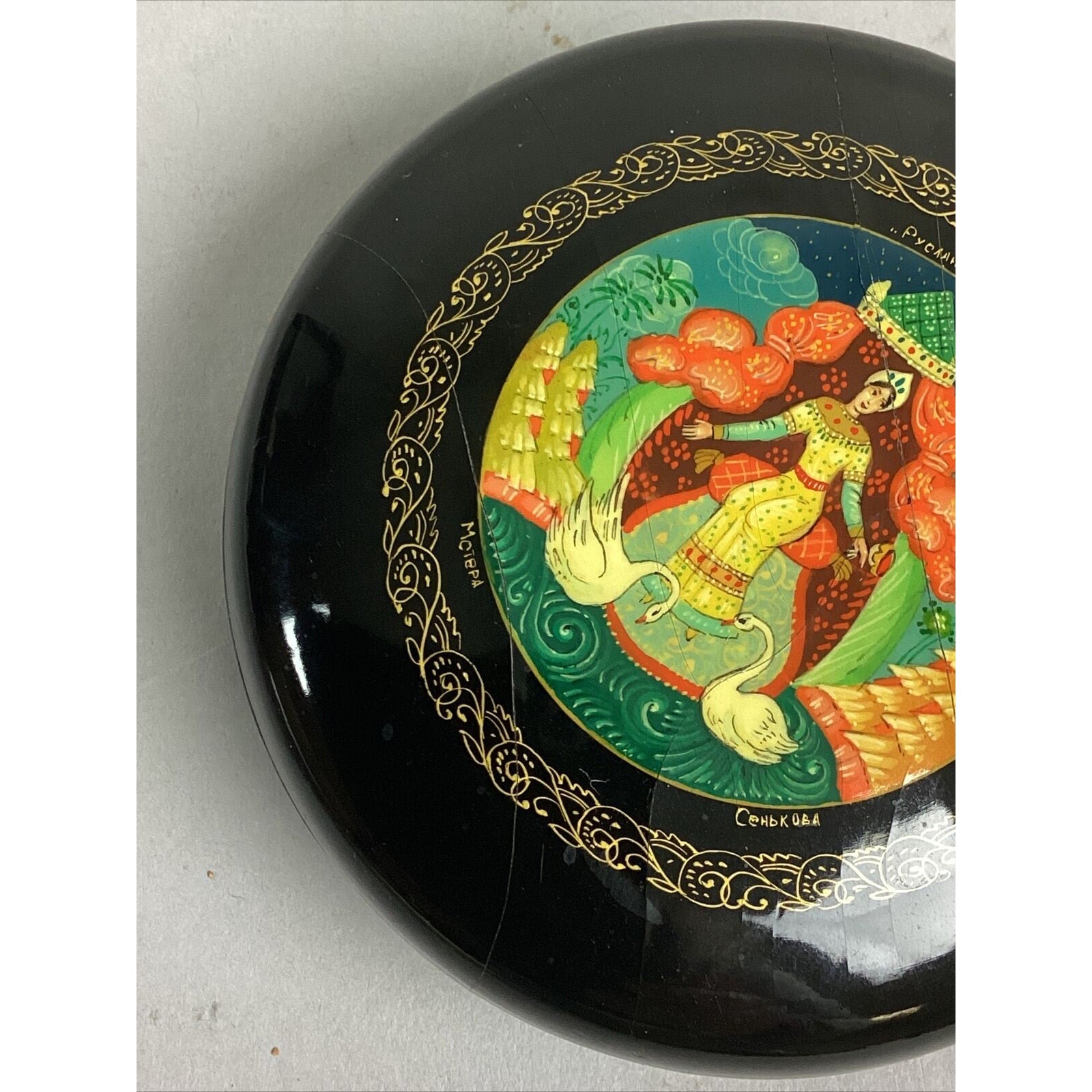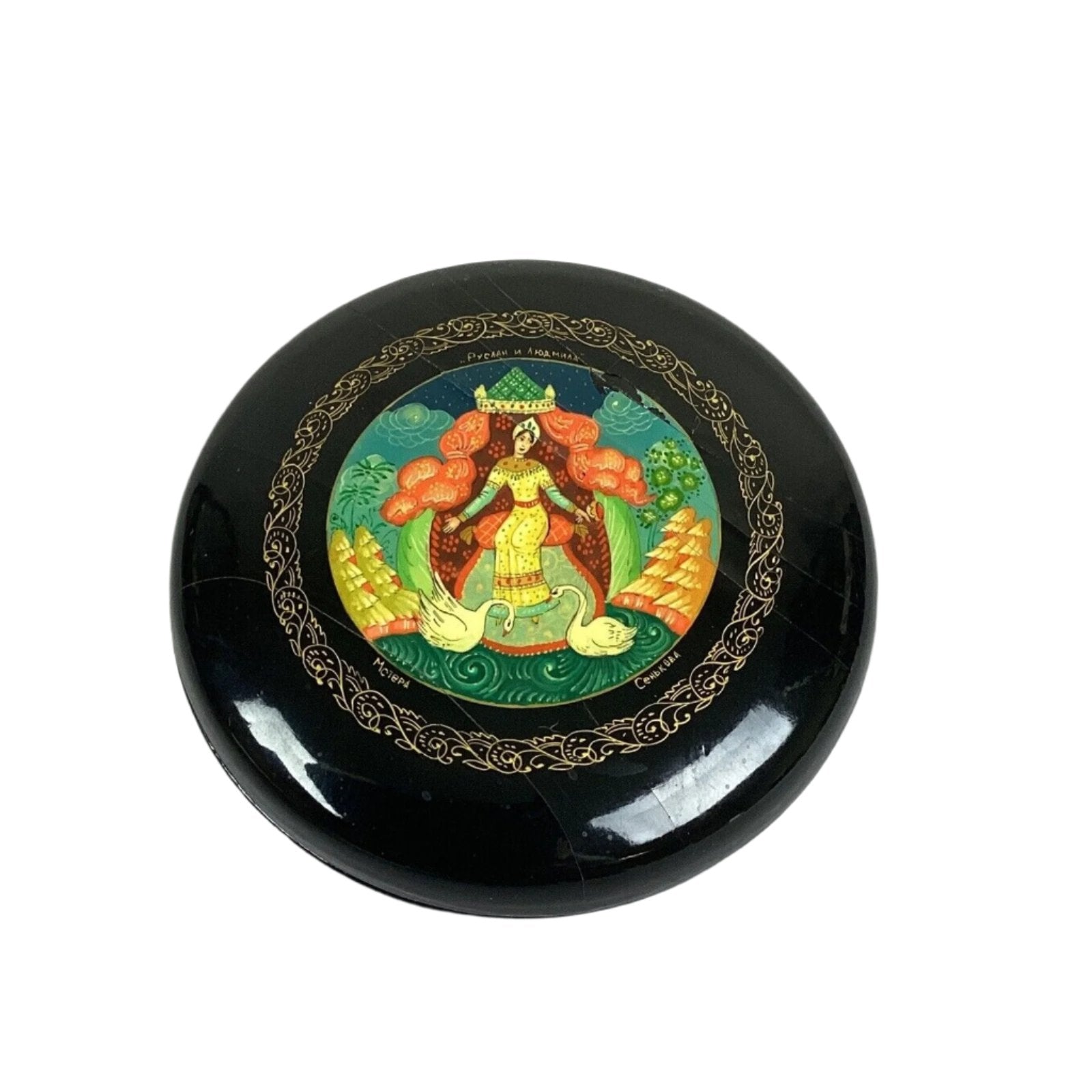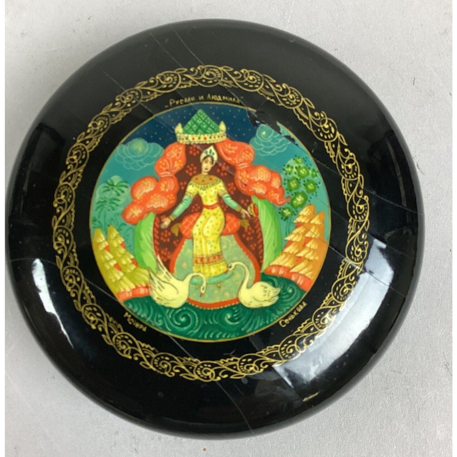 You are bidding on a very pretty Vintage Russian Hand Made Lacquer Trinket Jewelry Box - 3.5”