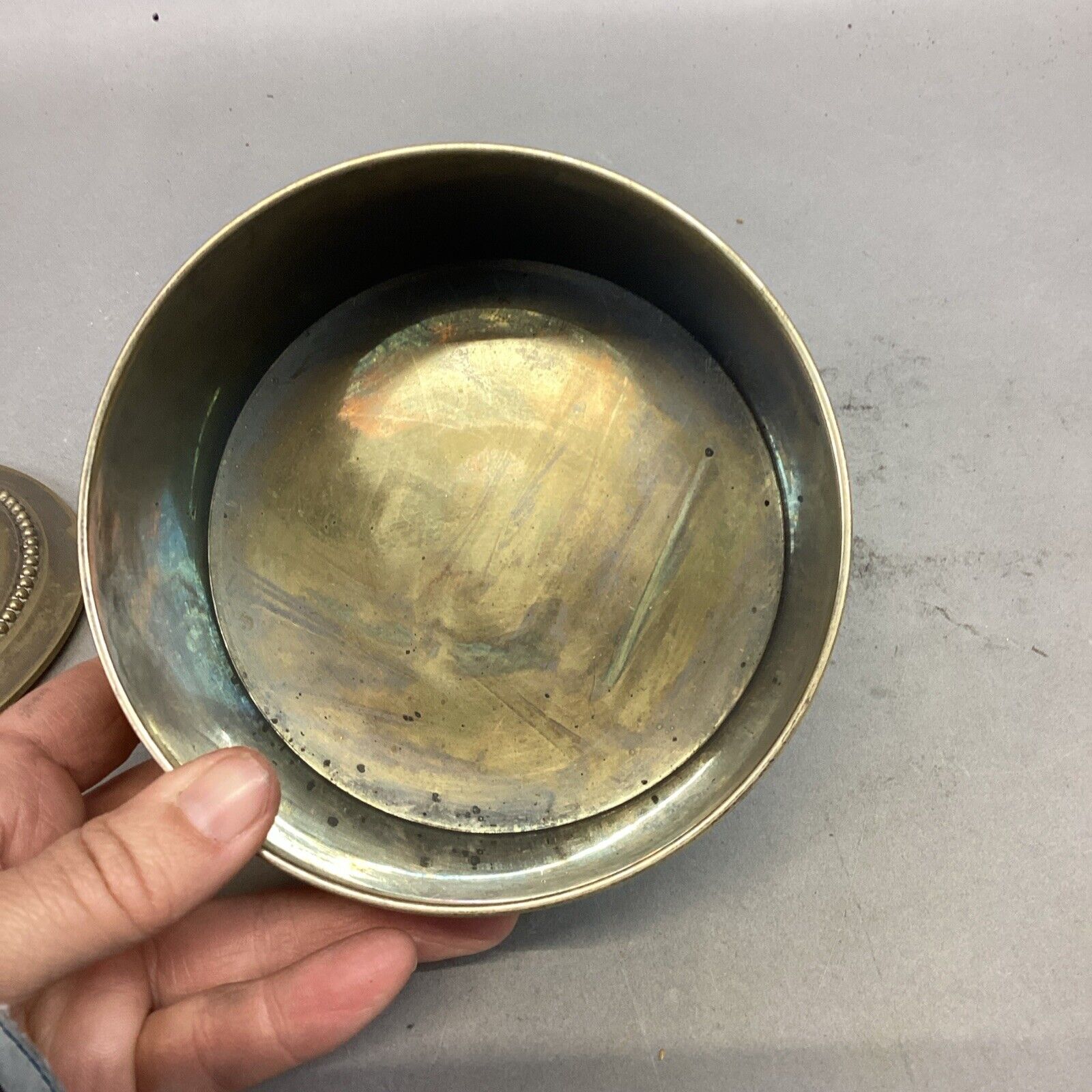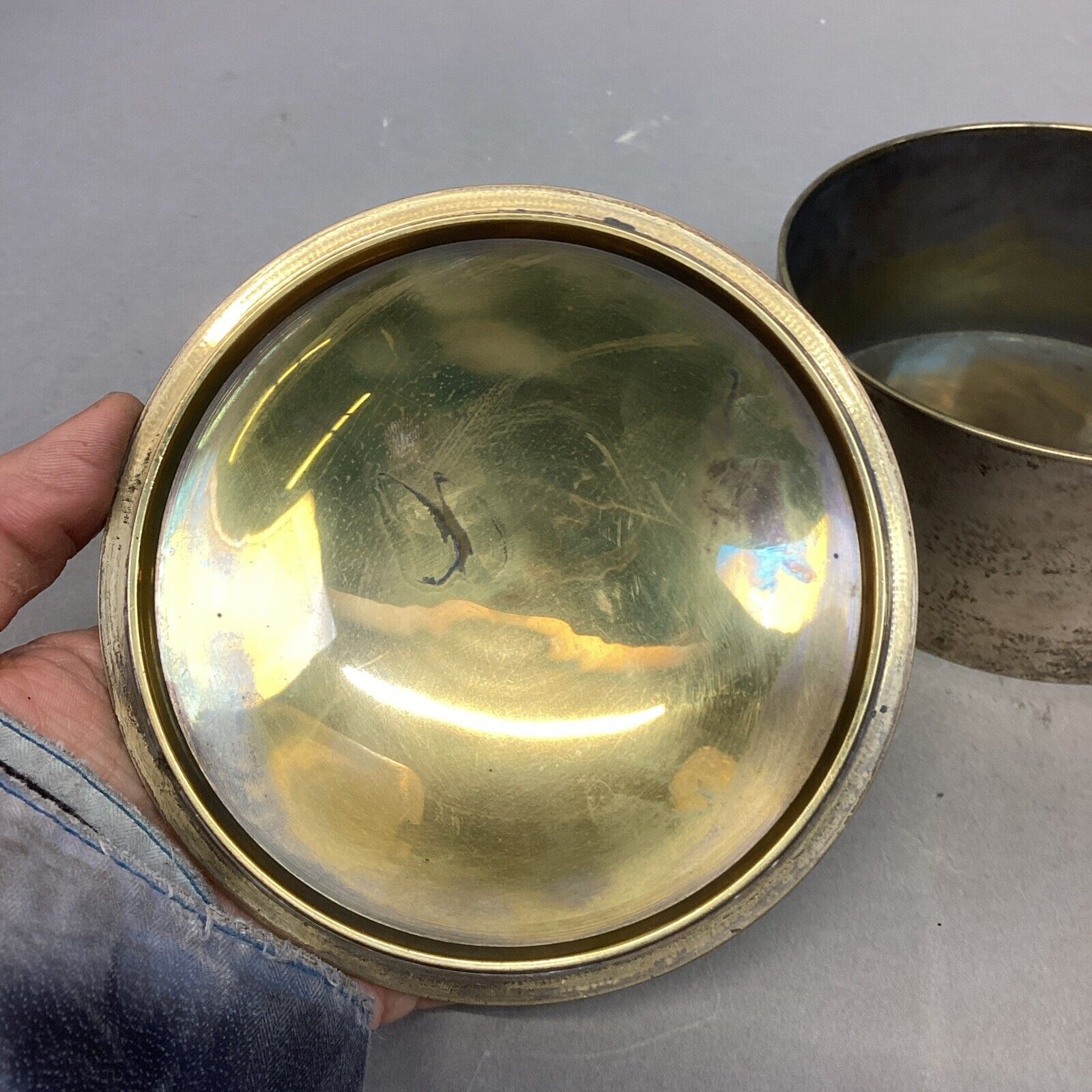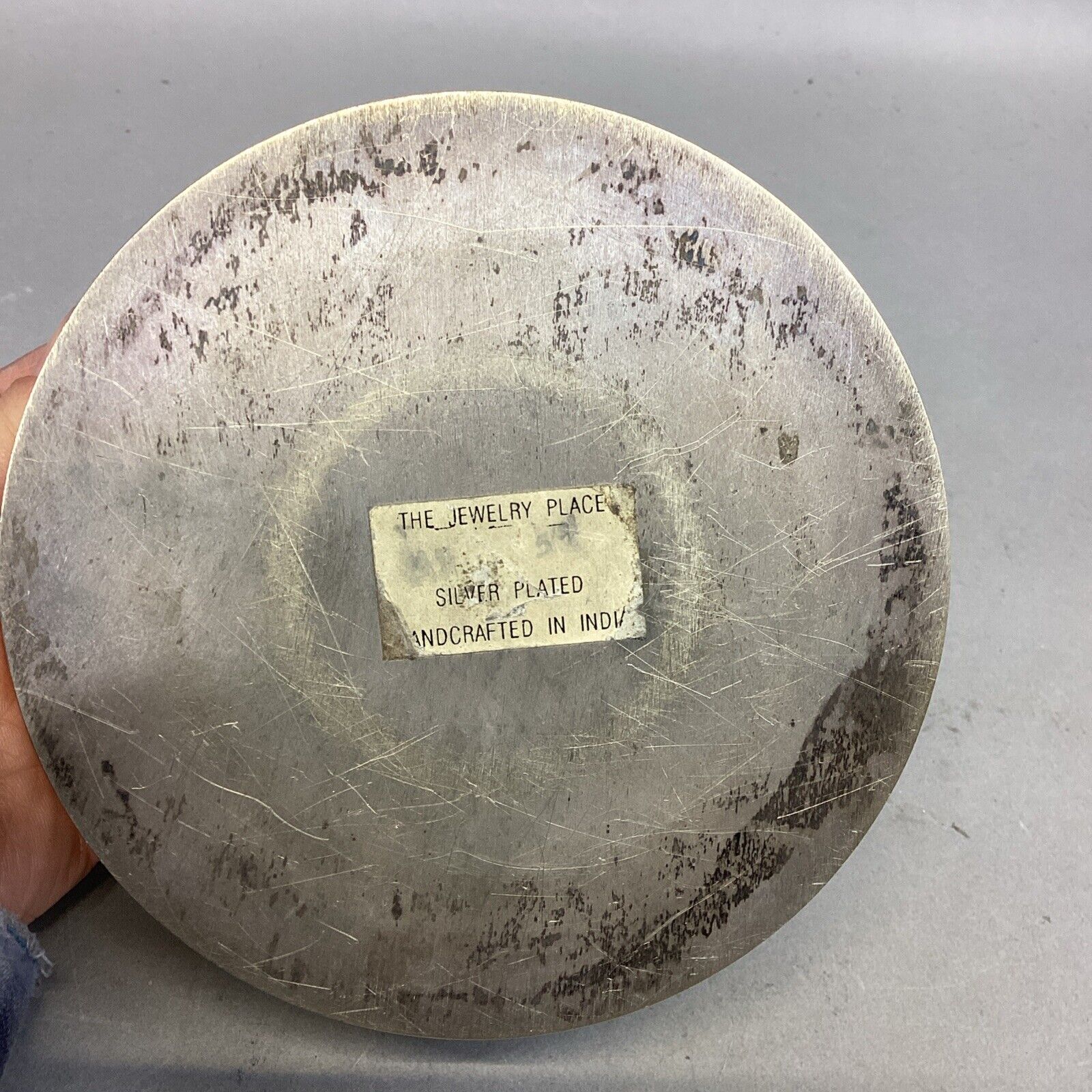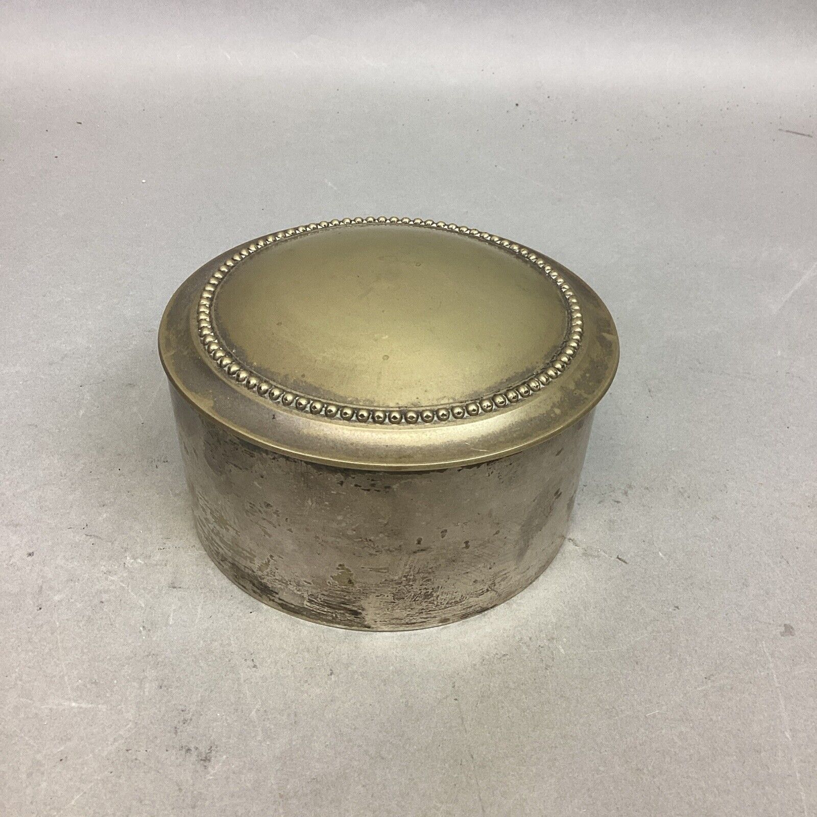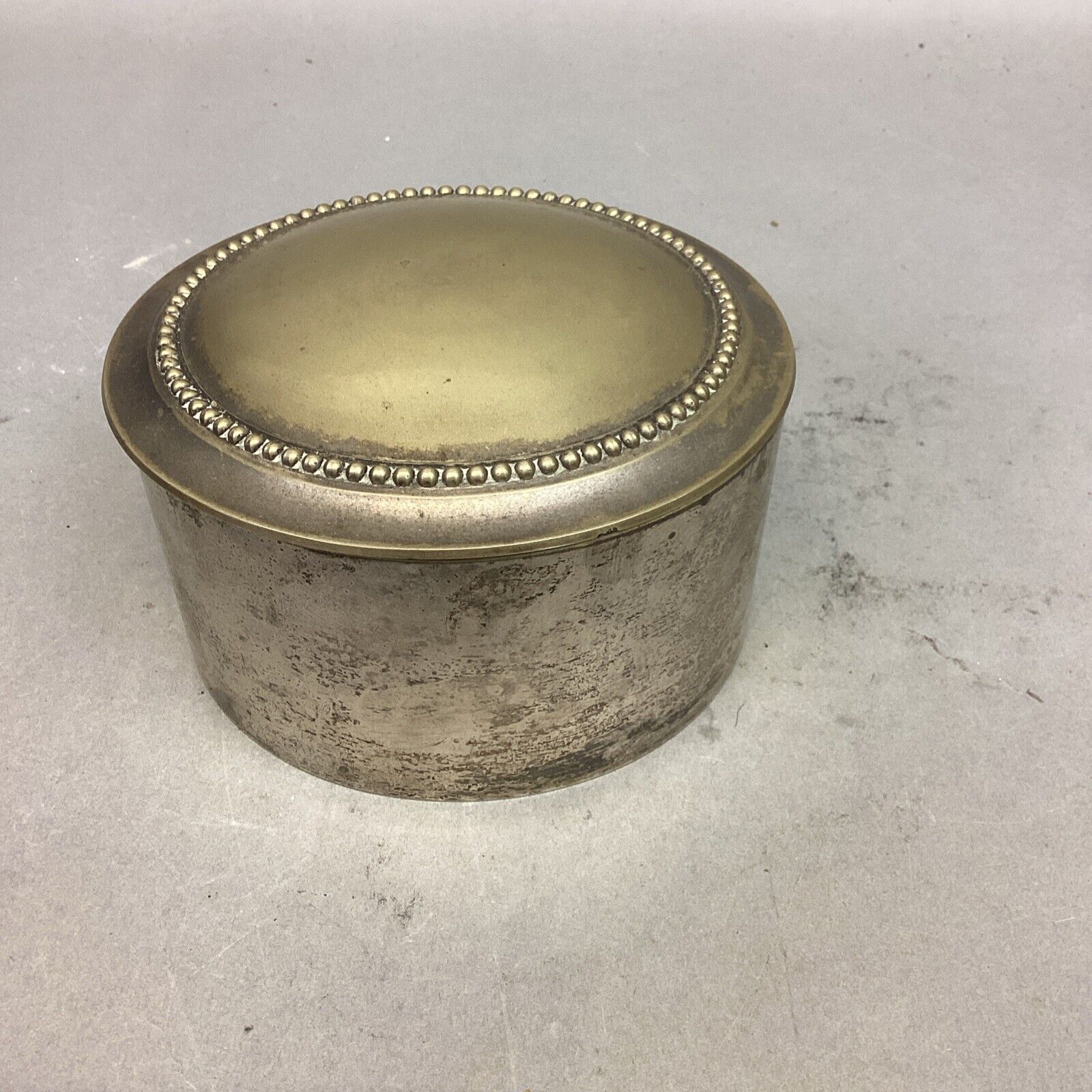 Vintage Silver Plated Trinket Jewelry Box - 2.25”Hx4.75”D - Made In India. In fair condition. Could use a good cleaning/ polishing.