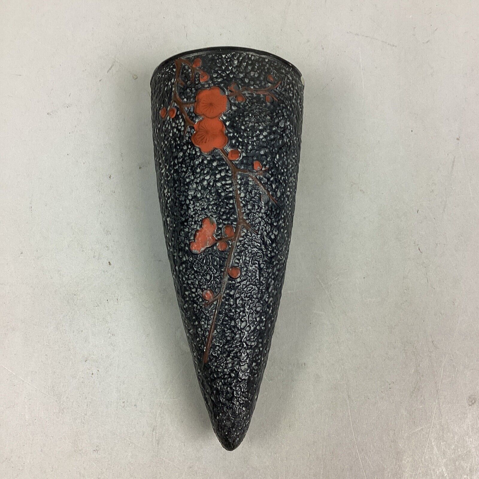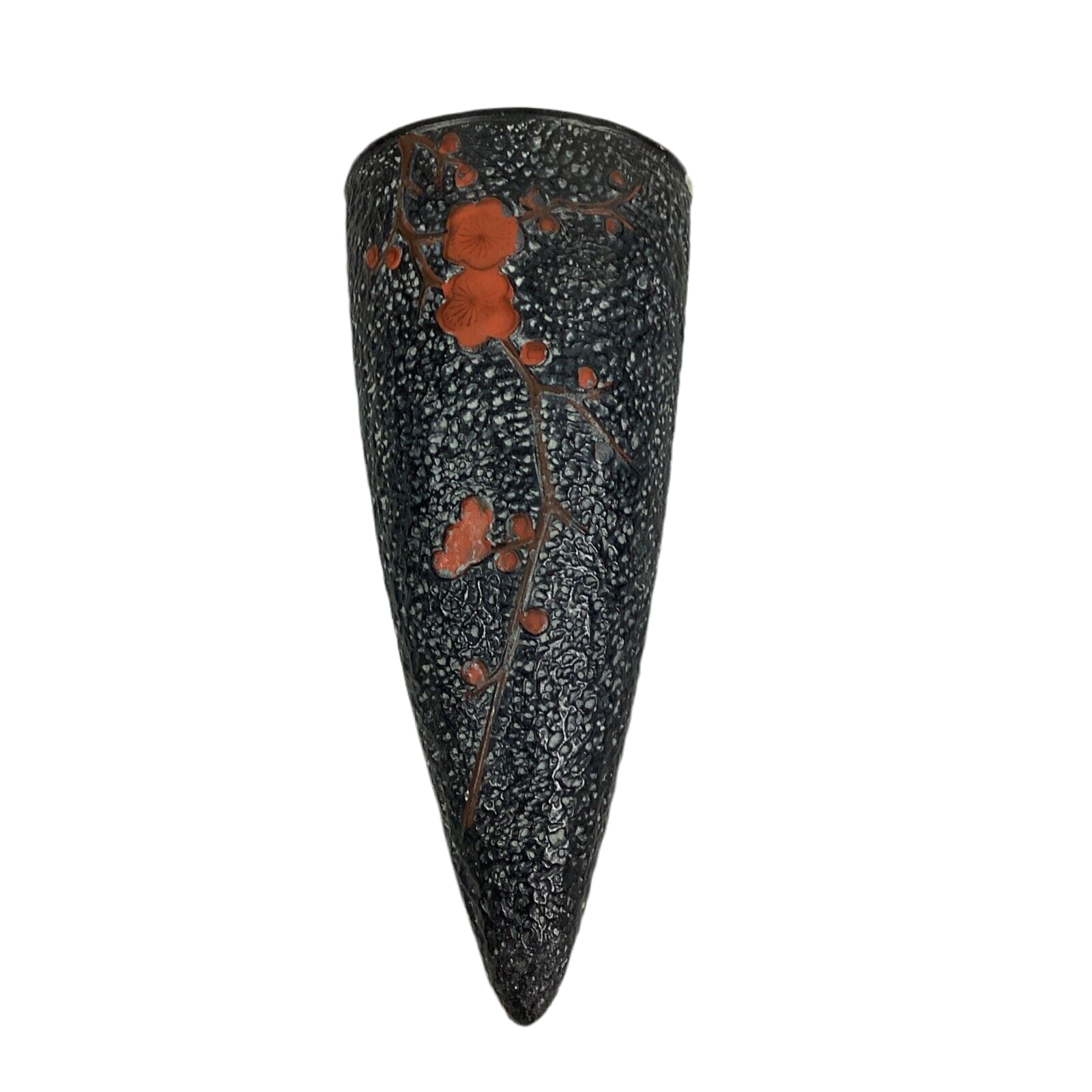 This is a vintage wall pocket vase. Made in Japan. Features red flowers on a tree branch.
