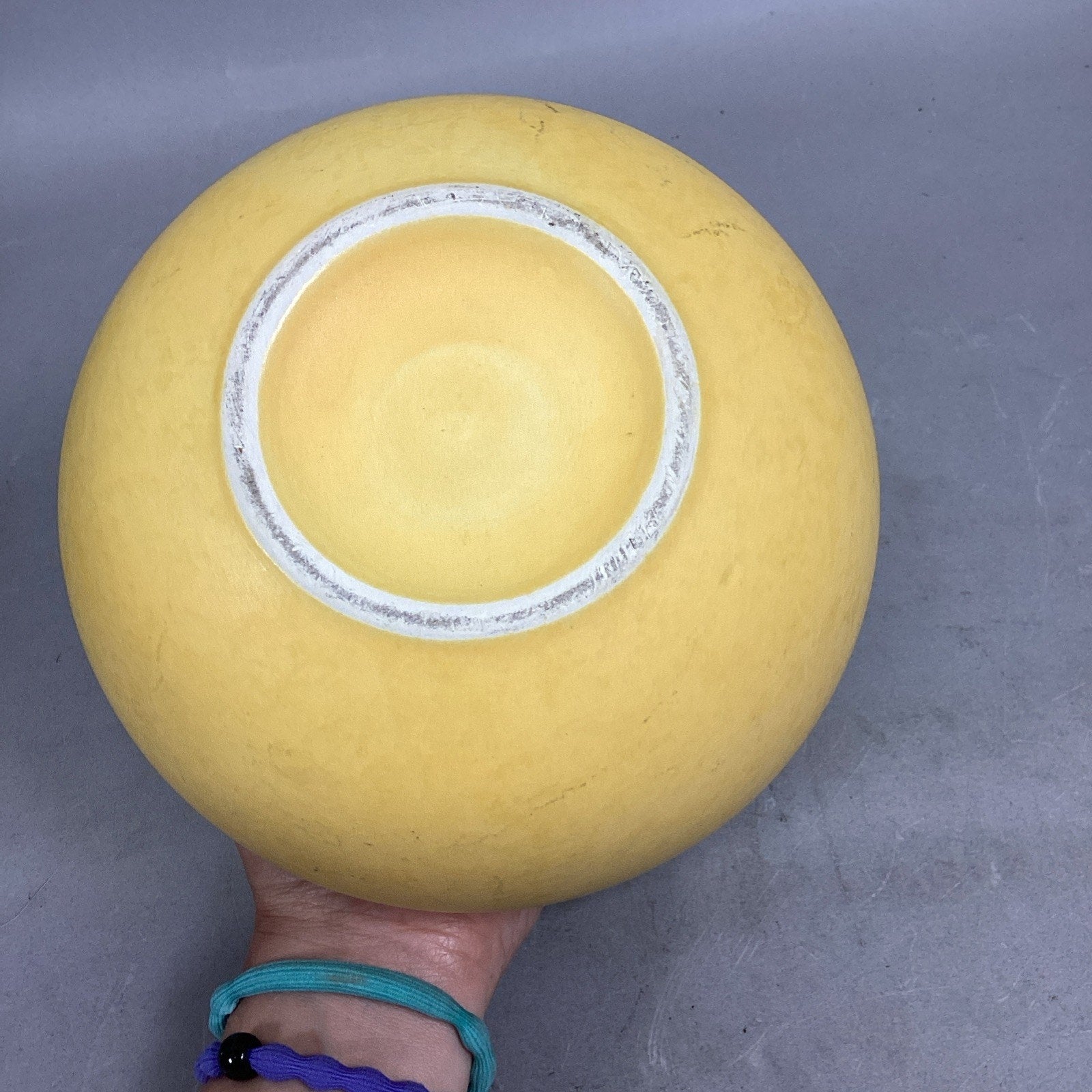 Vintage Yellow Ceramic Spherical Vase - 6”H. Has a slightly mottled effect. In good condition except for some stains.