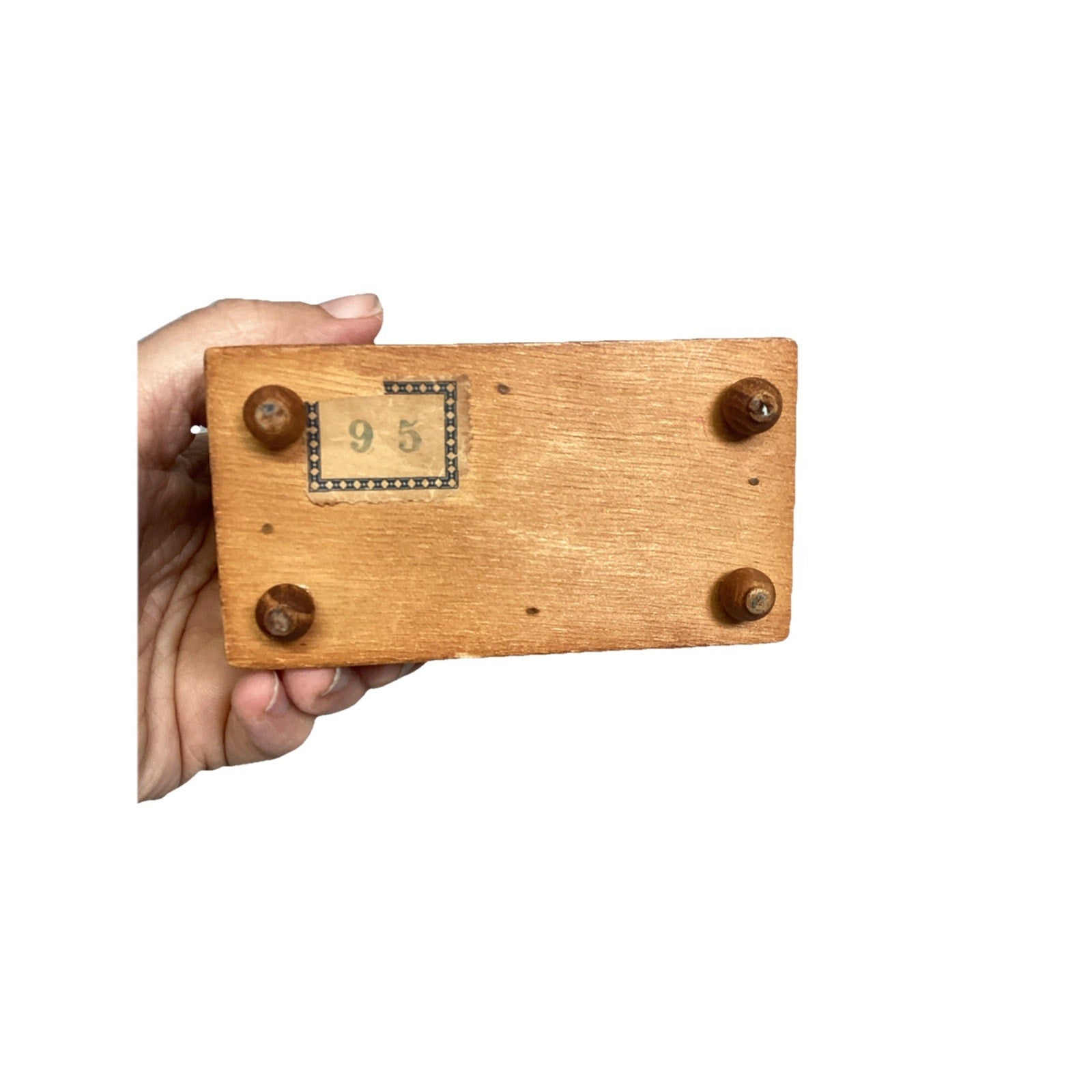 Wooden Inlay Geometric Design Jewelry Treasure Trinket Chest - 4x2.25x2.75” VTG. In very good condition.